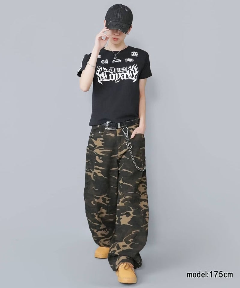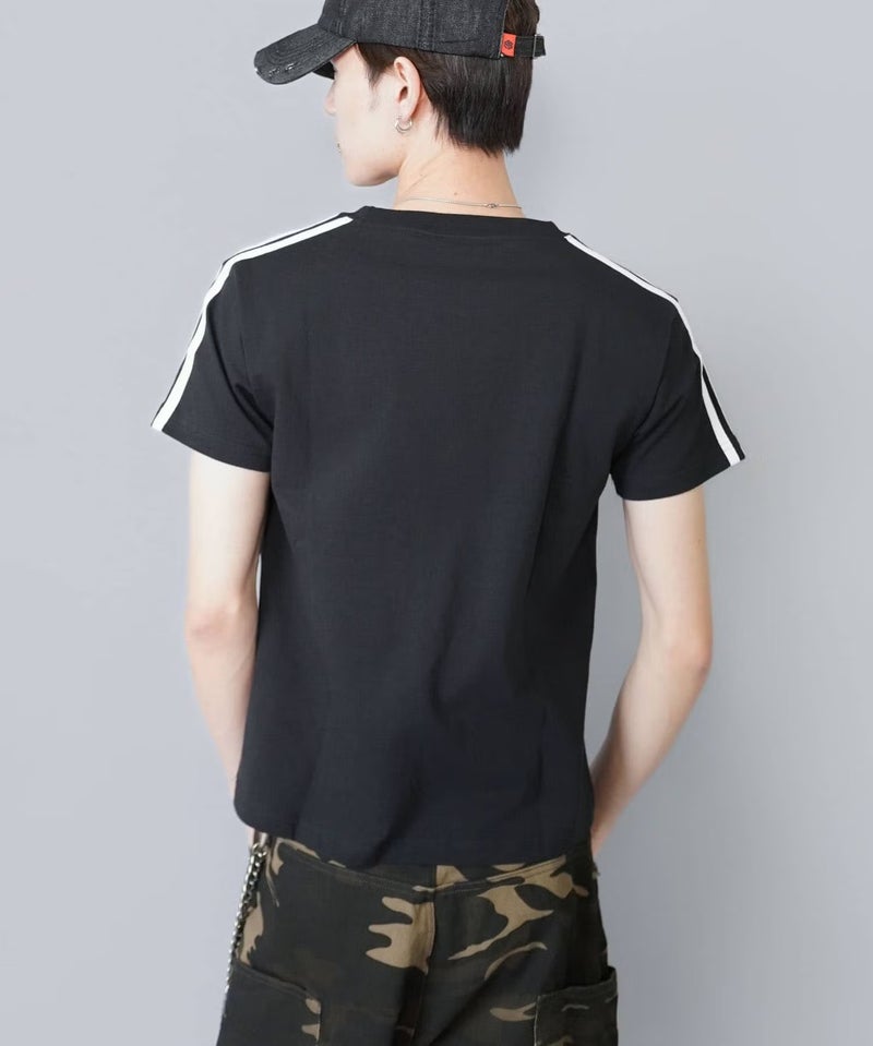 グラフィックが目を引く半袖Tシャツ。