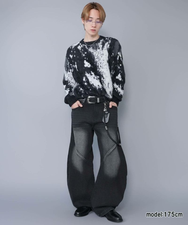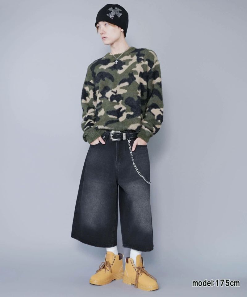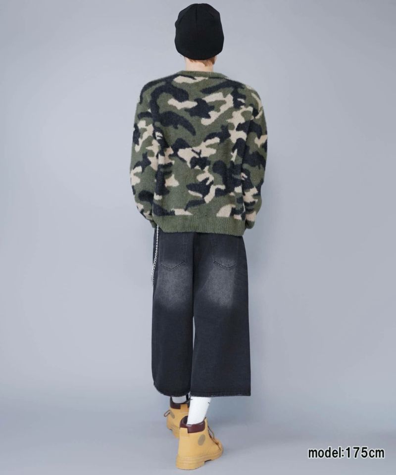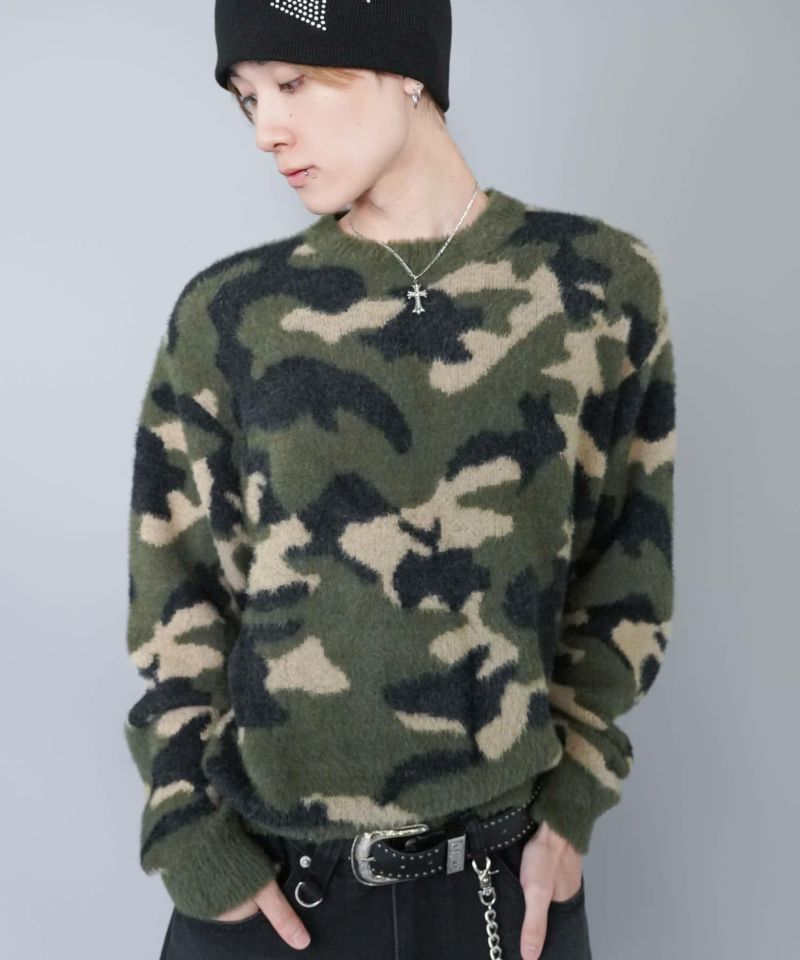 短丈シャギー柄ニット/アート・ヒョウ・カモフラ/チクチクしない