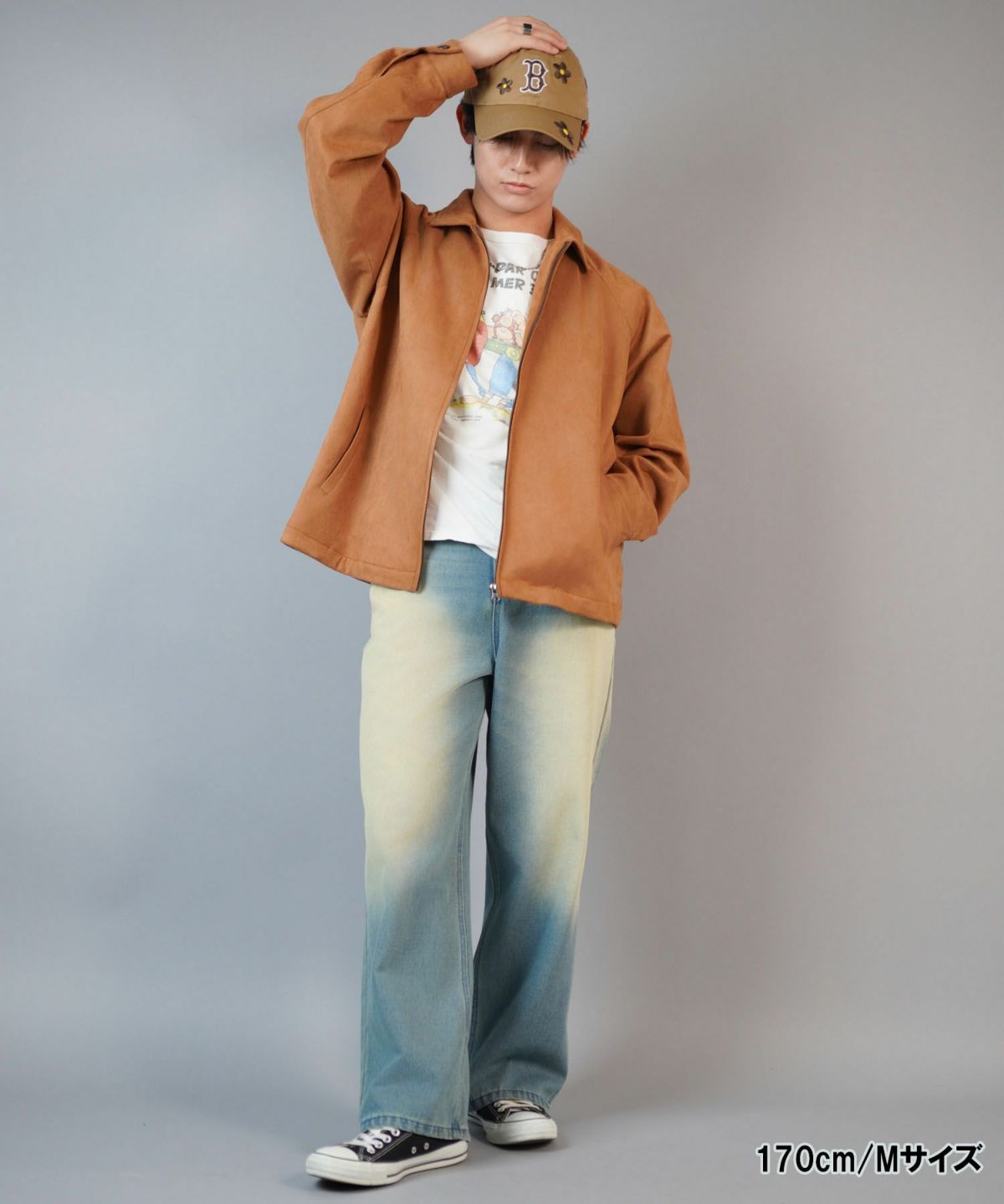 古着風のTシャツ、デニムなどをラフに組み合わせて、