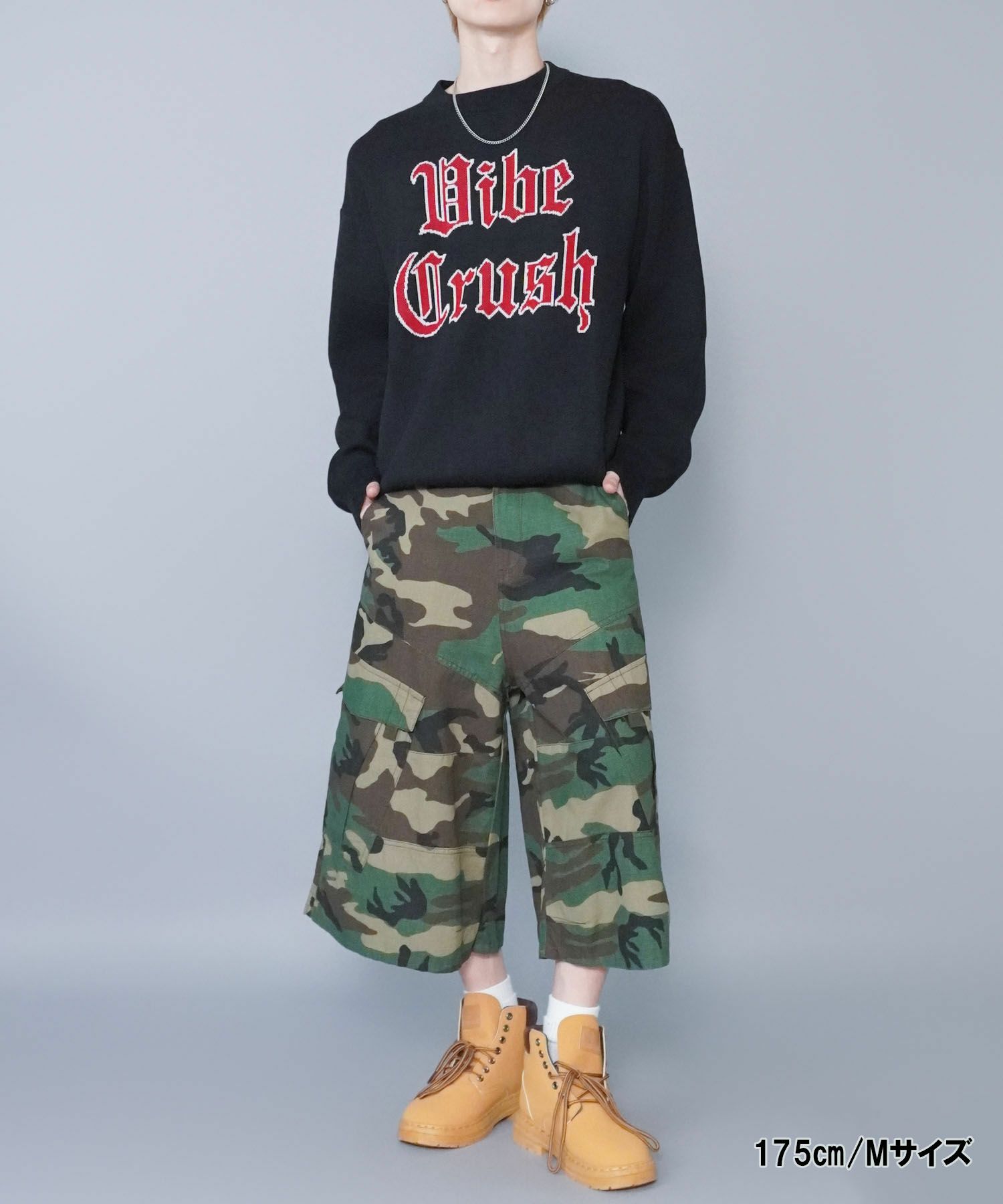 トレンドのミリタリーテイストを感じさせるカモフラ柄が特徴で、