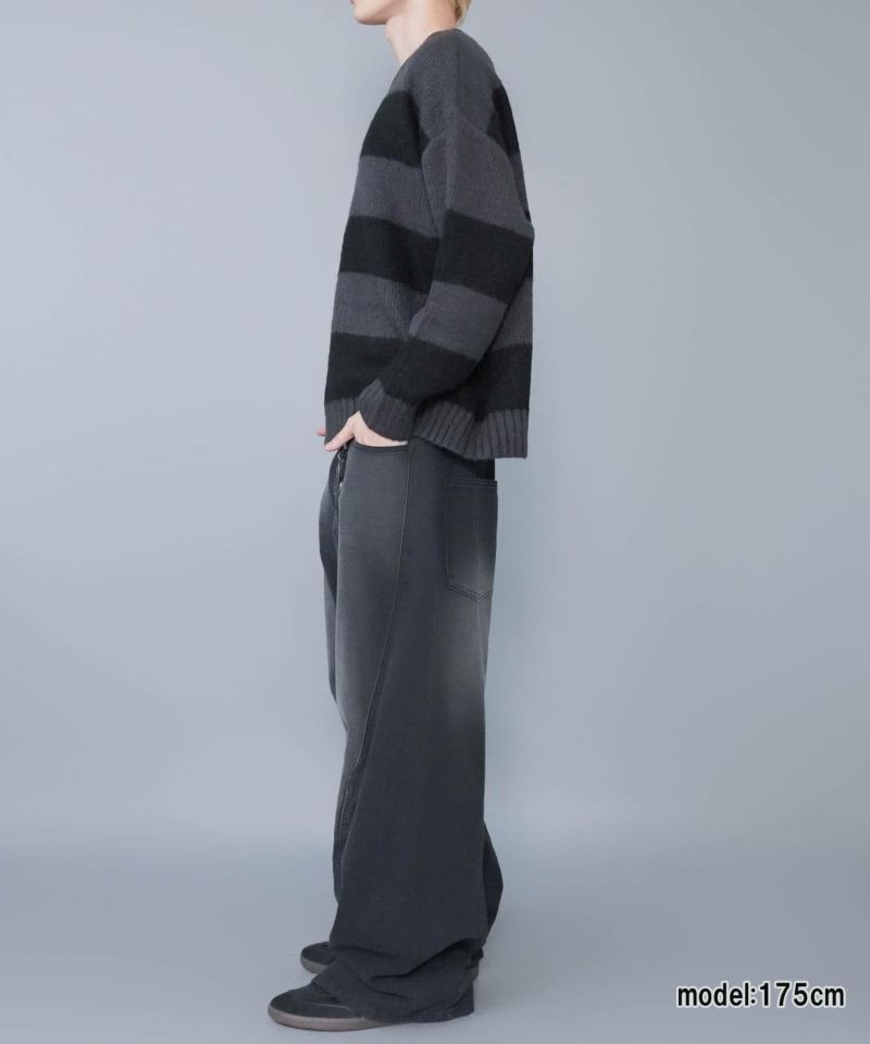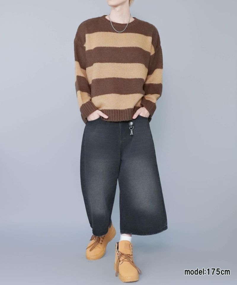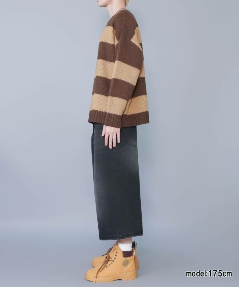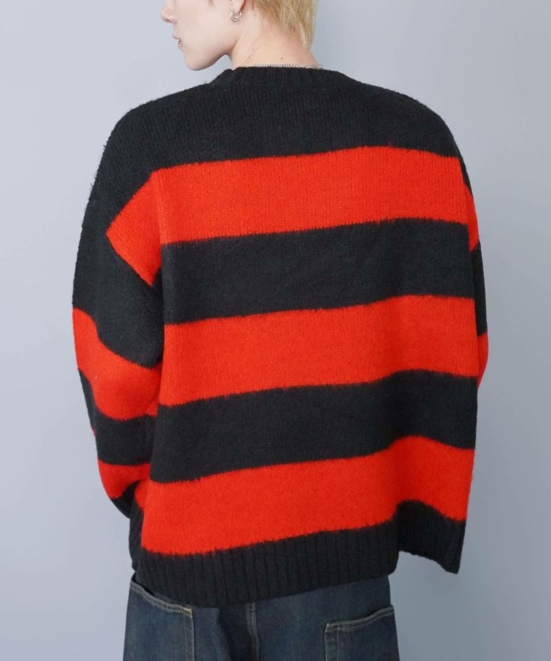 存在感抜群の太めボーダーが印象的なモヘアタッチニット。