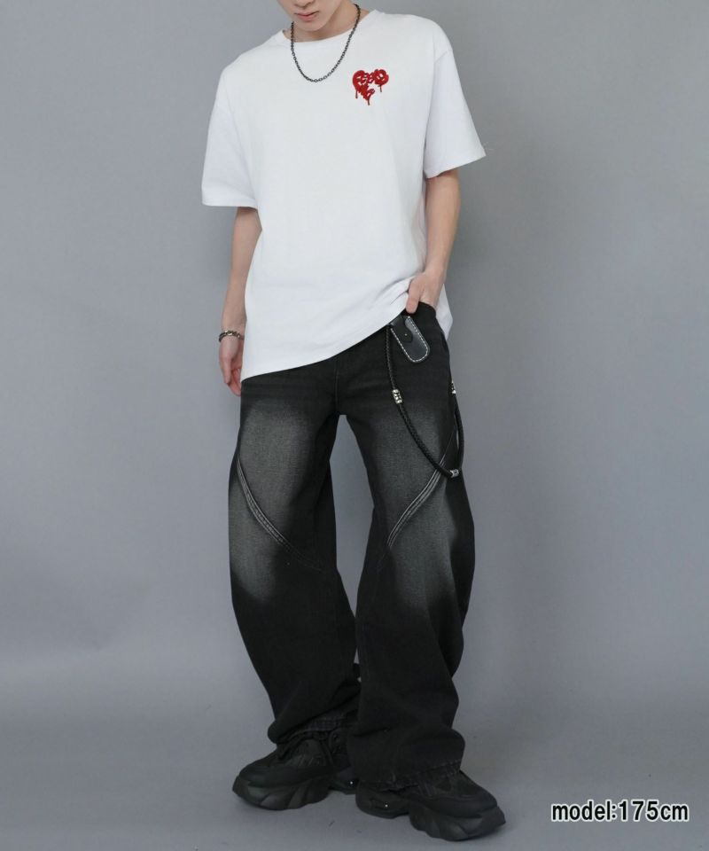 フロントにはさりげない刺繍のワンポイントハートロゴ、