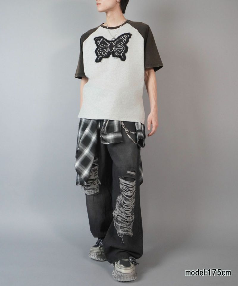 【90%OFF】グランジラグランTシャツ/バタフライ