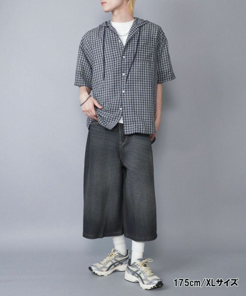 膝下丈デニムハーフパンツ。