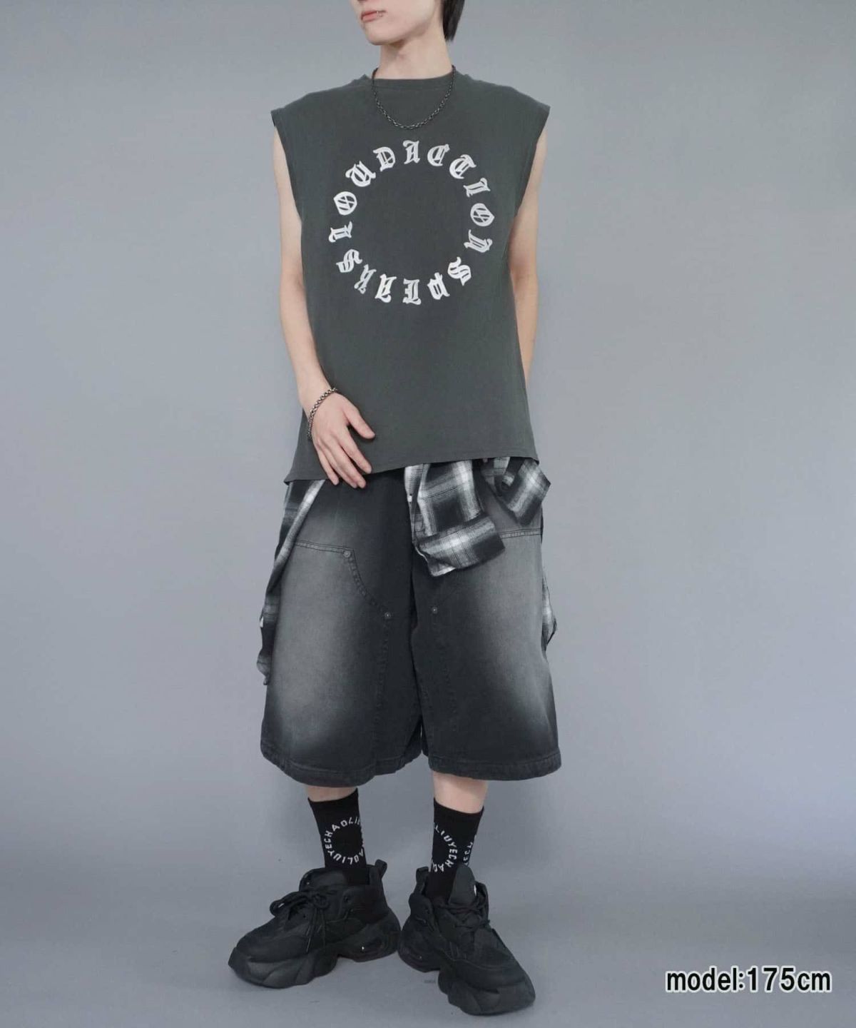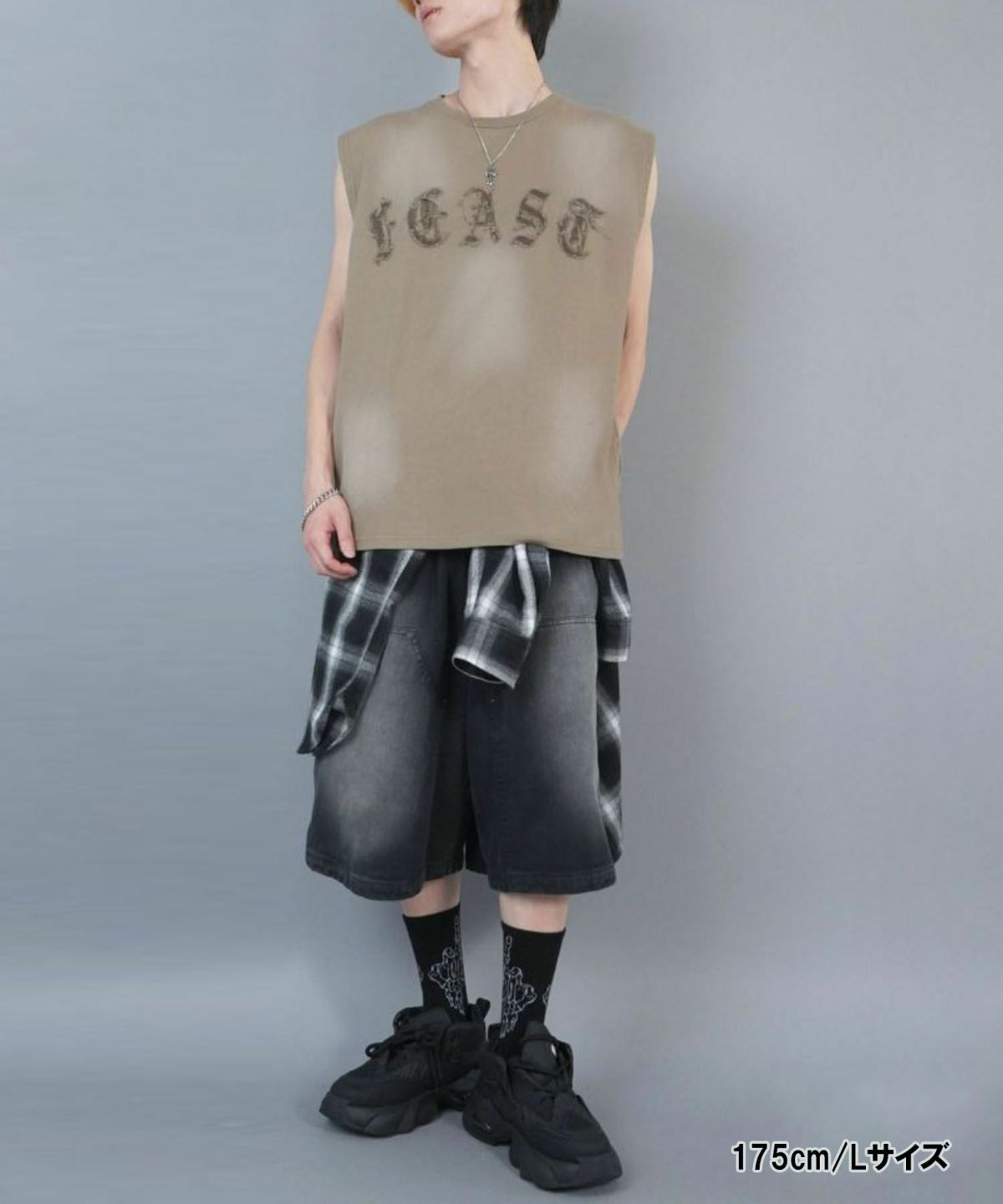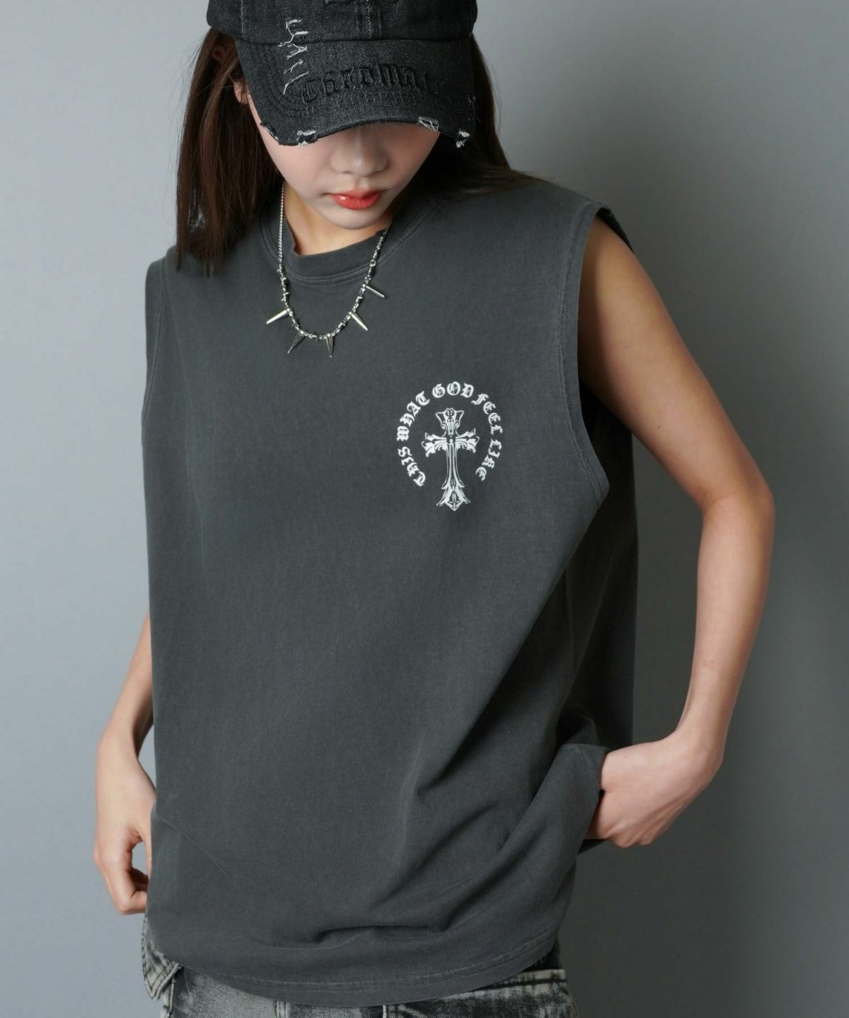 SOLD OUT 他の画像を見る 54%オフ🔥 【80%OFF】ピグメント加工バックプリントノースリーブTシャツ/バンT風/古着風/短丈 ¥ 2,189 → ¥ 550 税込 SALE UNISEX カートに入れる お気に入りに追加
