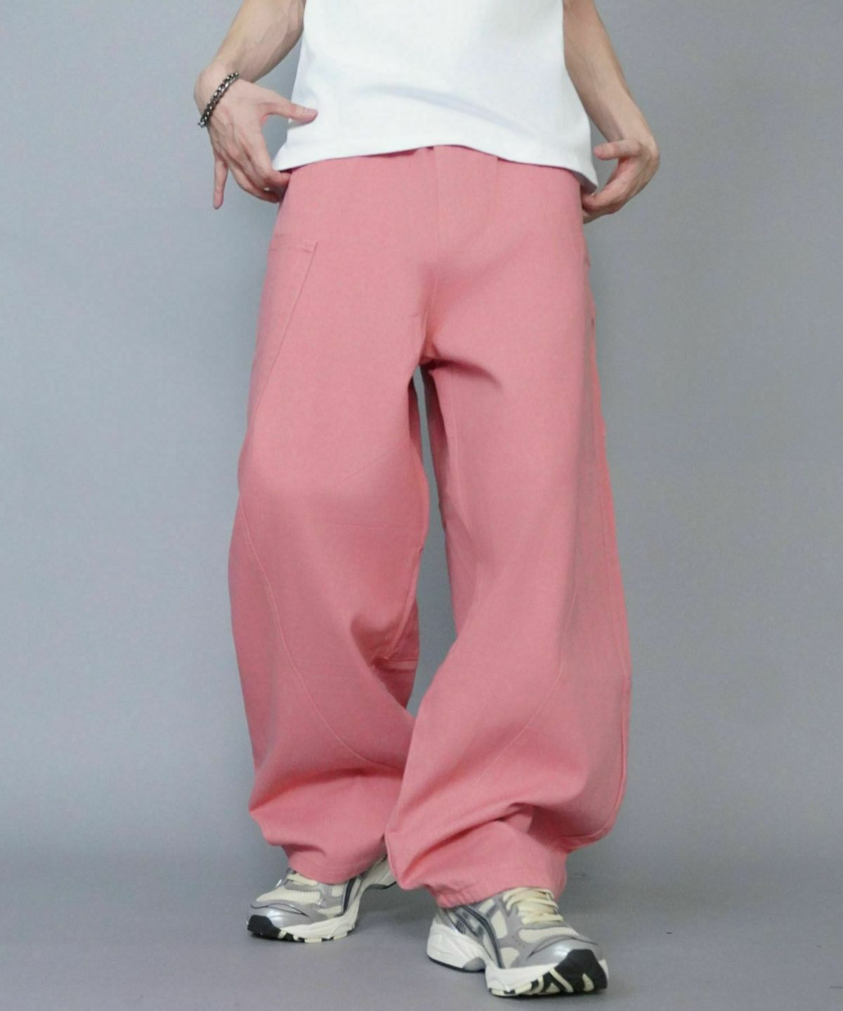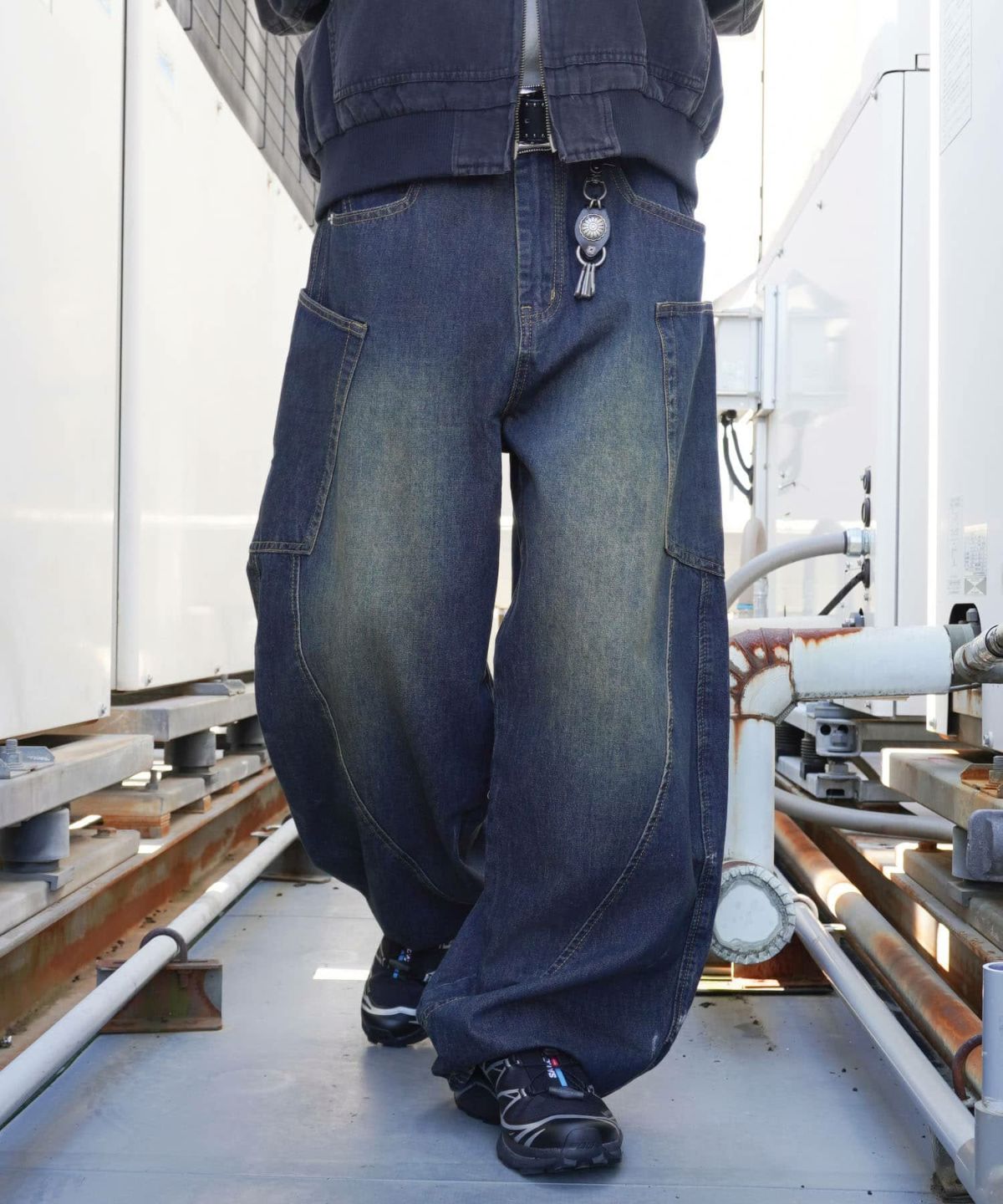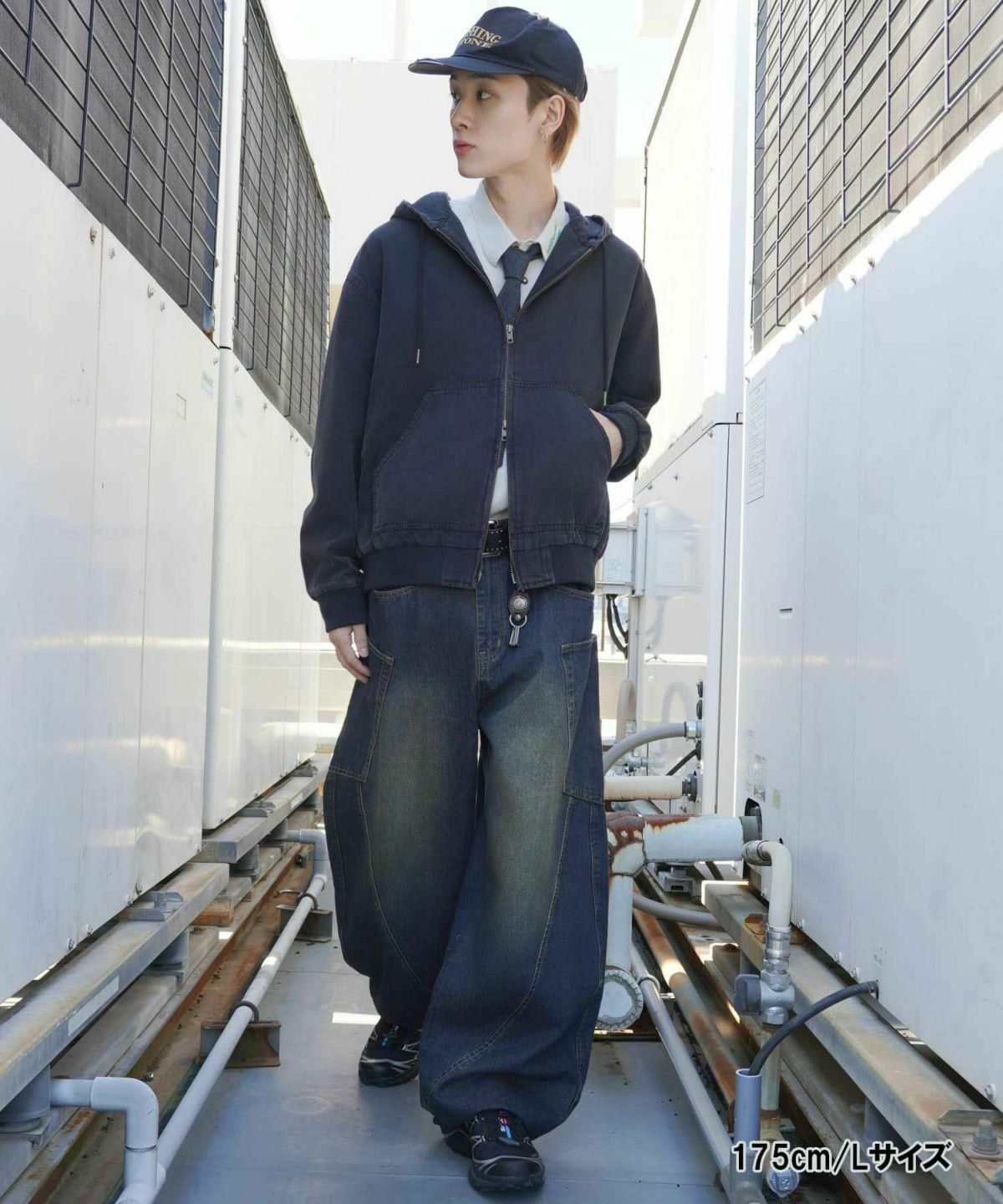 ワイドパンツやスニーカーを合わせれば、