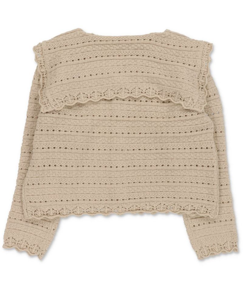 3:いろんな編地でビック襟がポイント