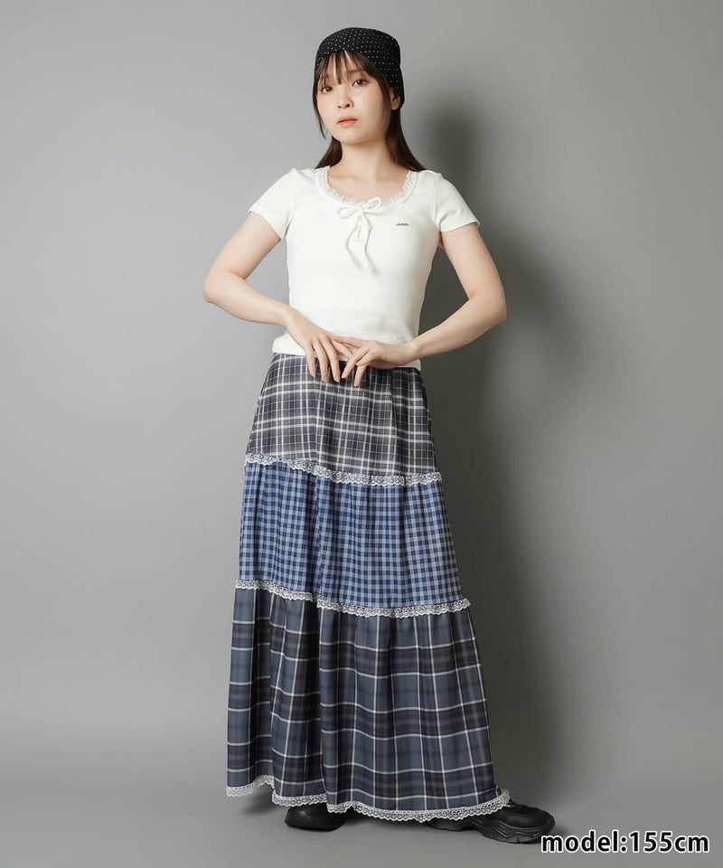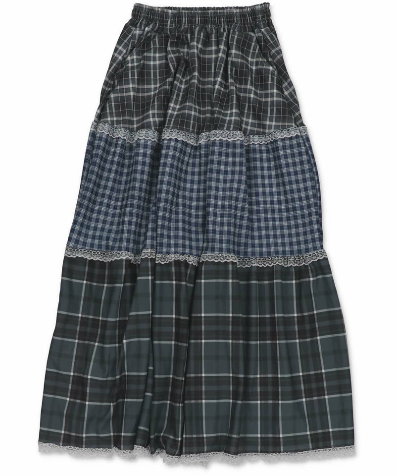 【レトロな雰囲気が可愛い!ツギハギチェックロングスカート】