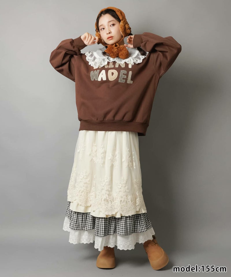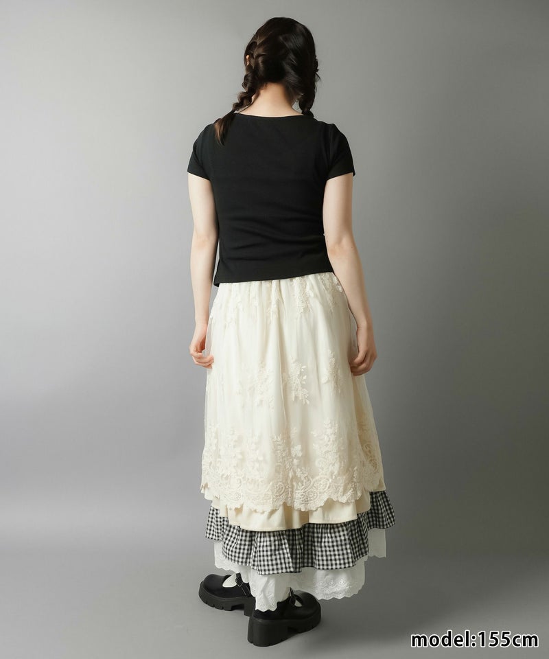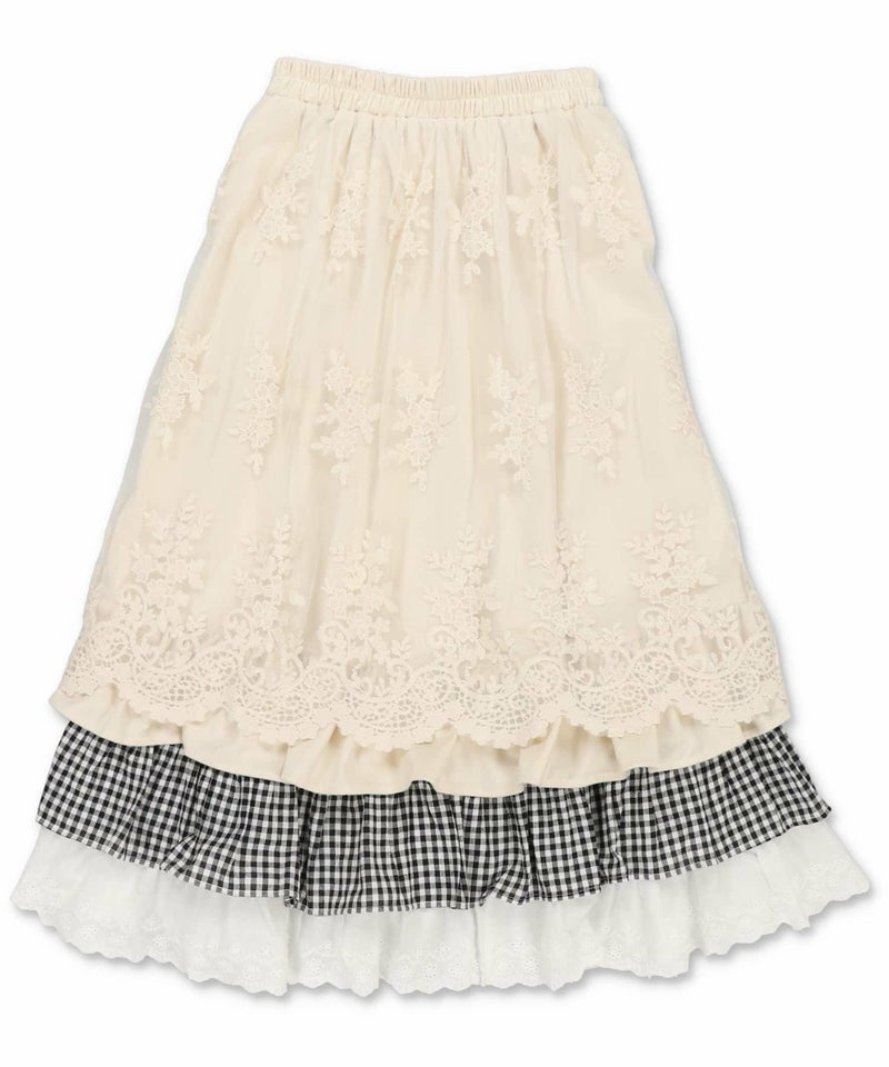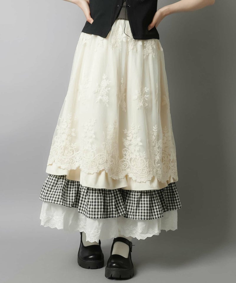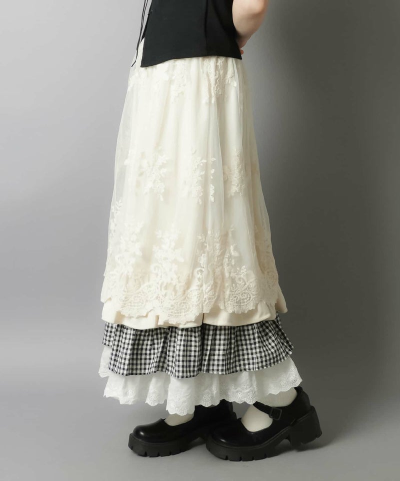 【レトロな雰囲気が可愛い♡異素材レイヤードロングスカート】