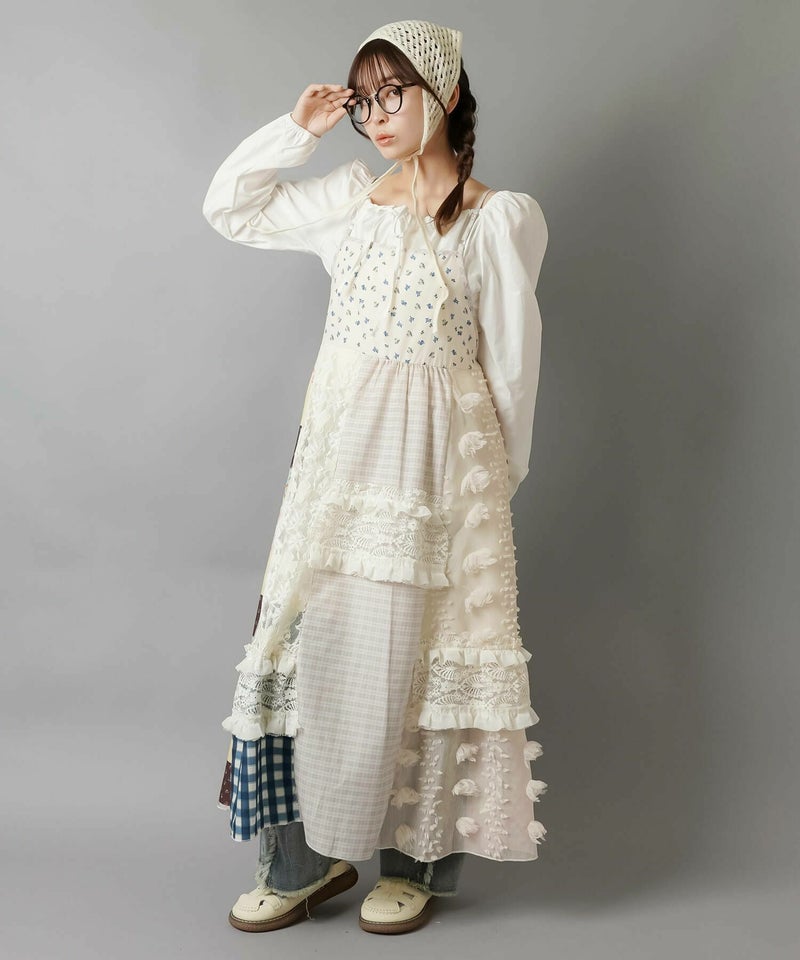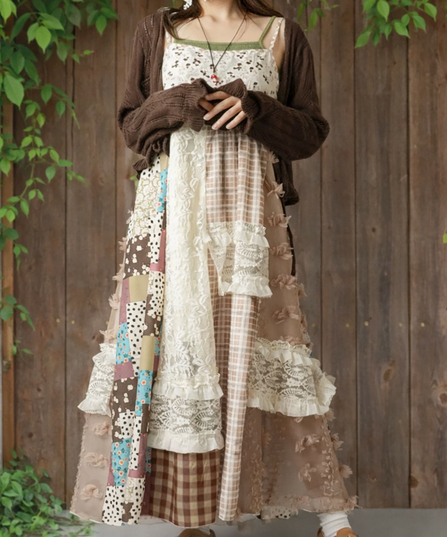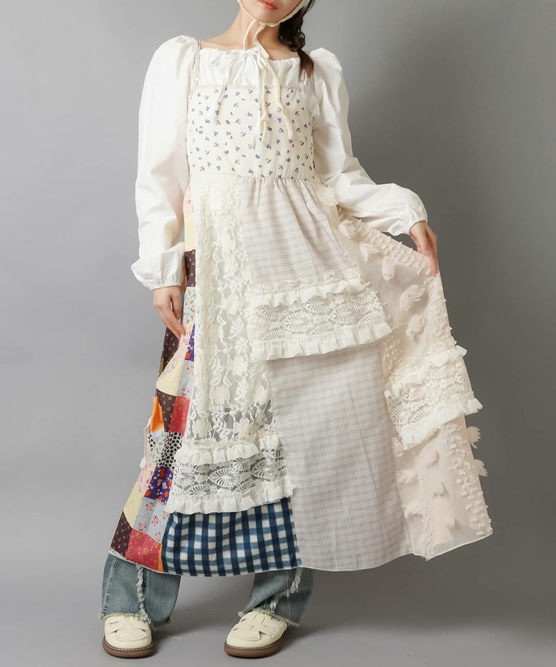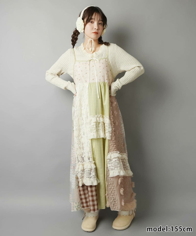 【レトロな雰囲気が可愛い!パッチワークロングキャミワンピ】