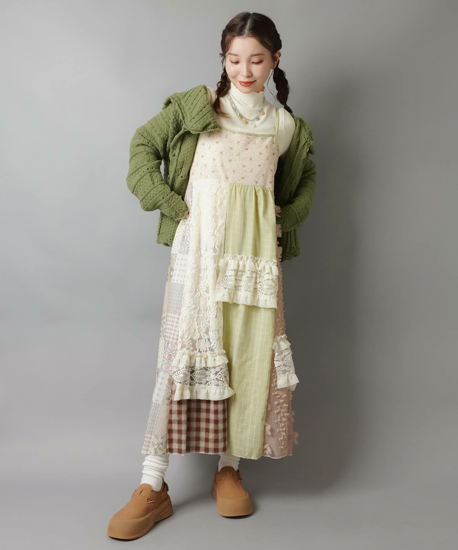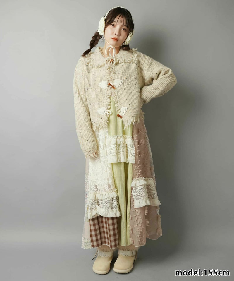 【レイヤード、アースカラー、ダスティカラー、カーディガン、ヘッドアクセ、ナチュラル、レース、ファー】