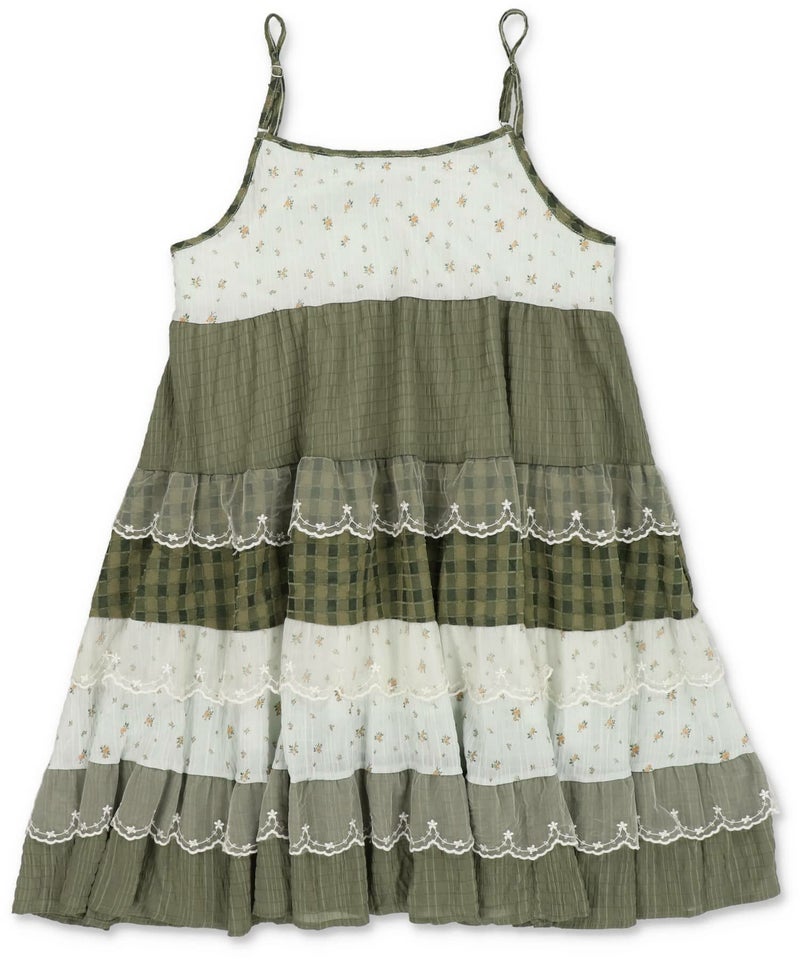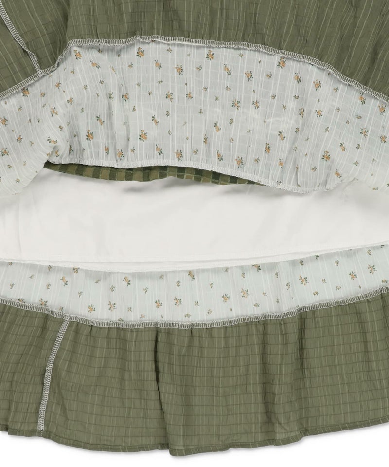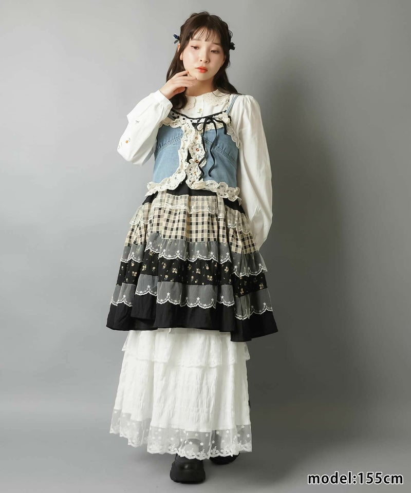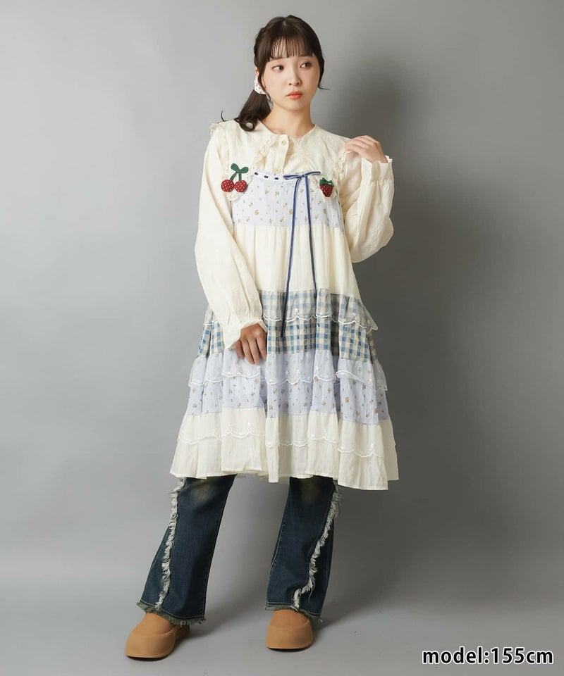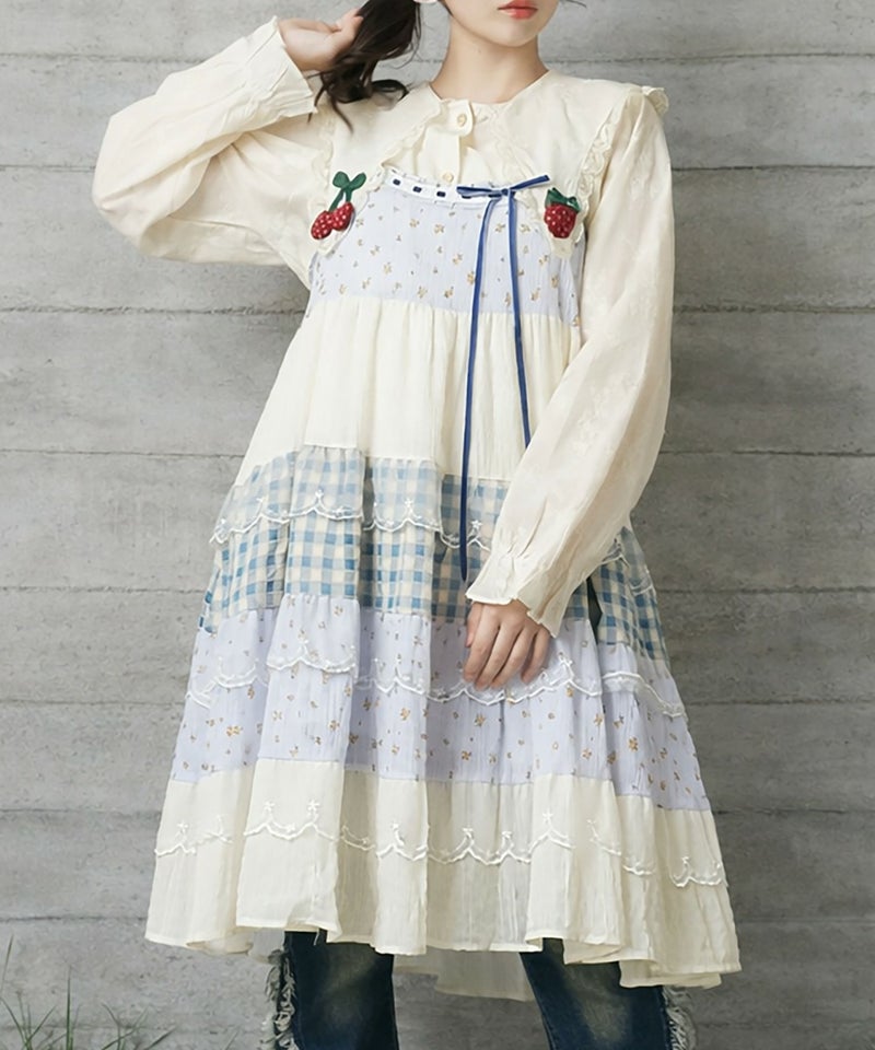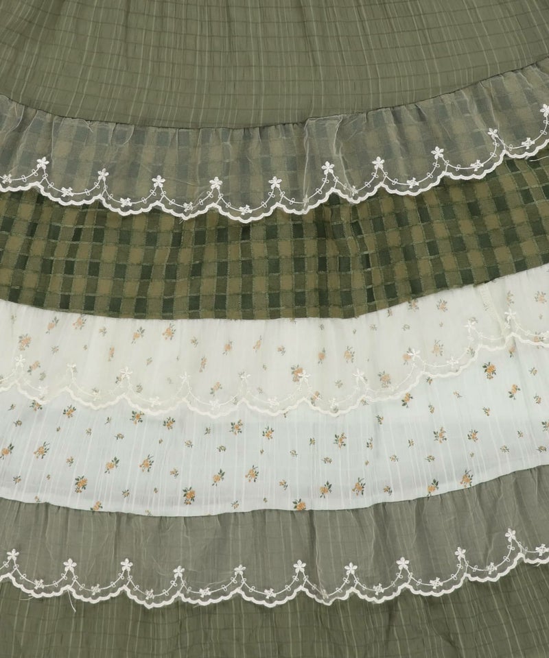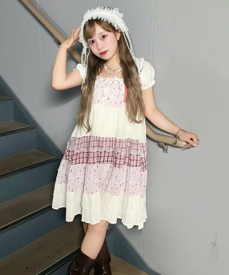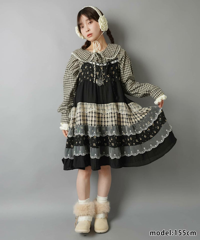 ヴィンテージ風ミニキャミワンピース/つぎはぎティアード/チェック/レース/全5色/#NEO森ガール