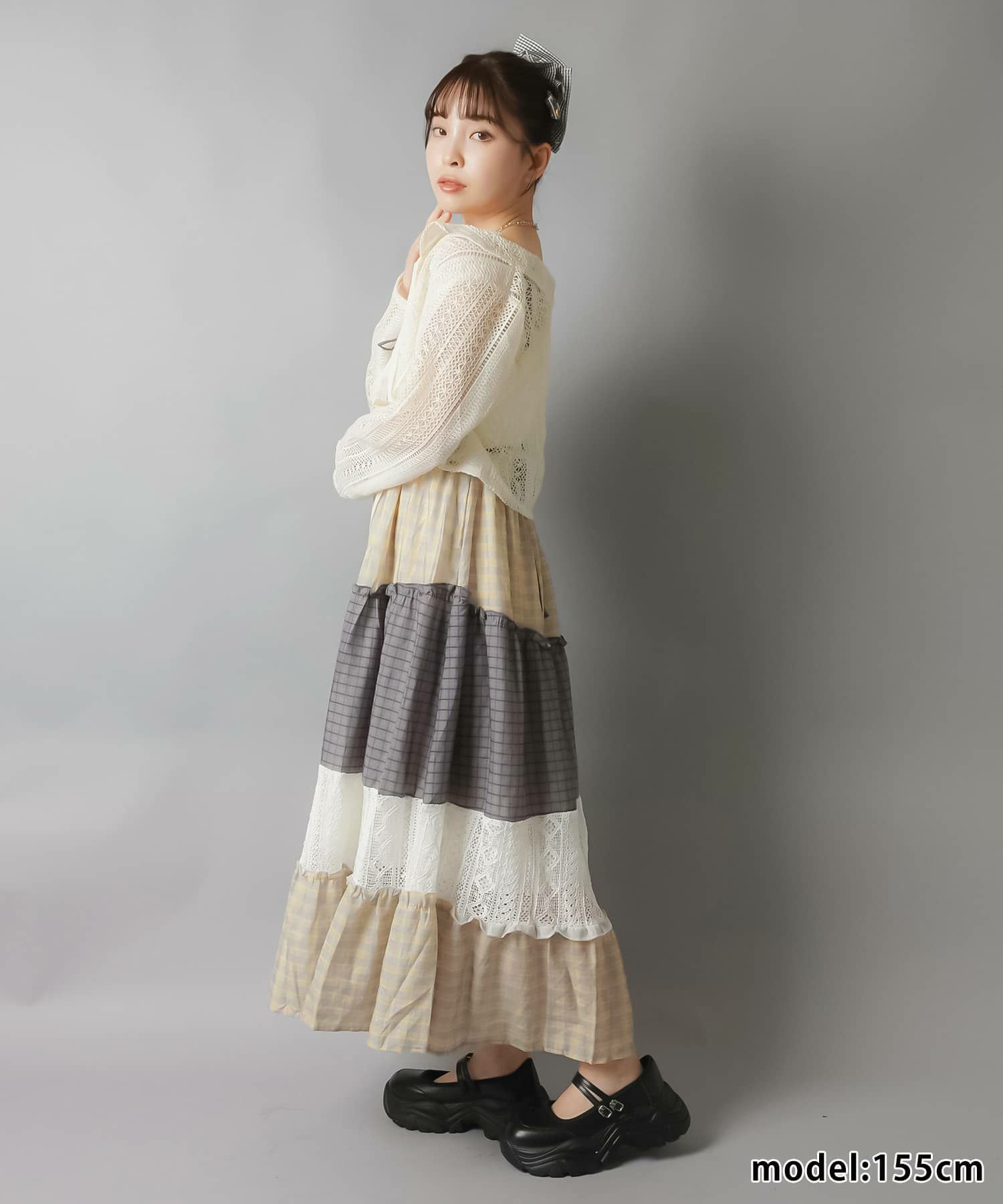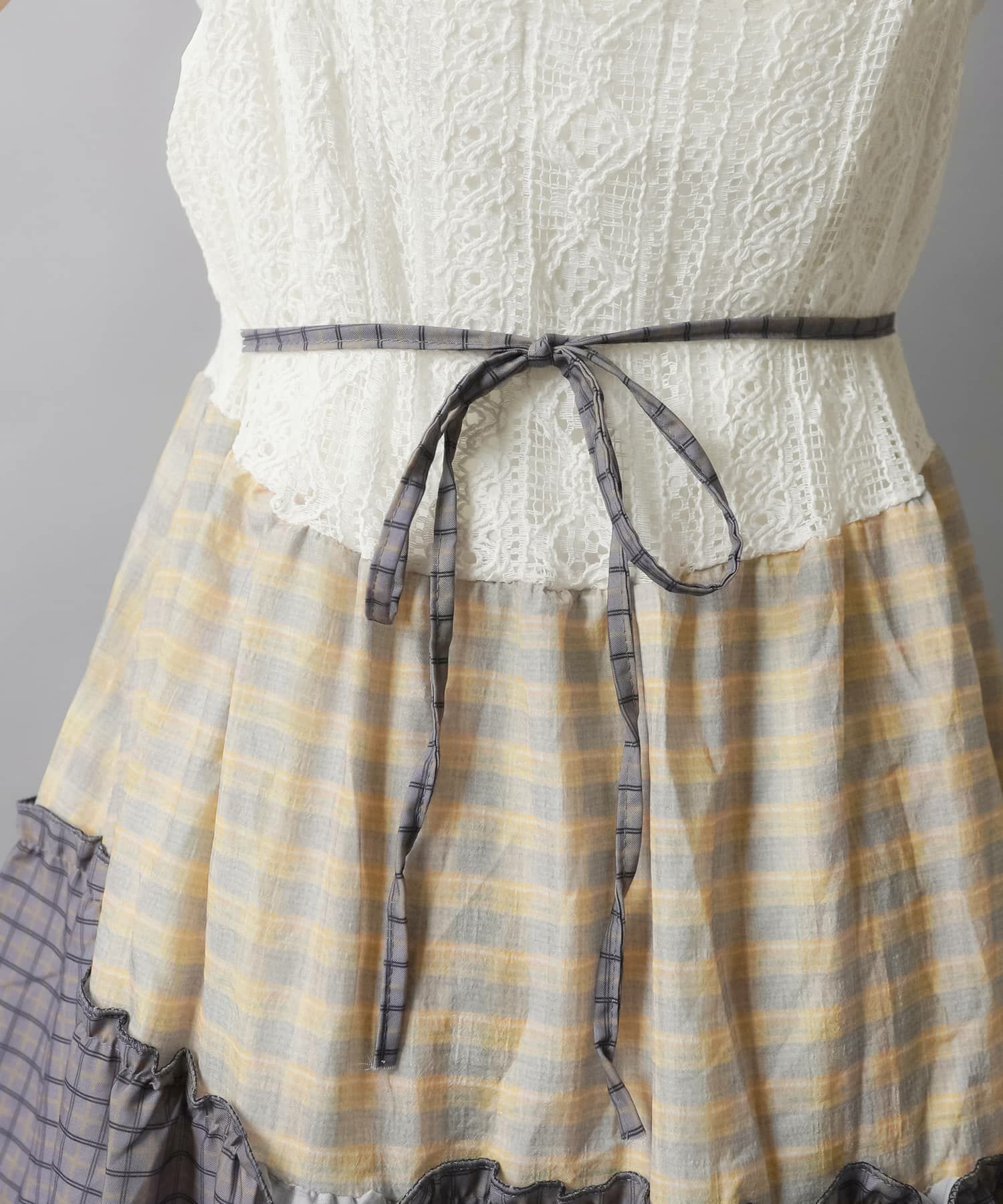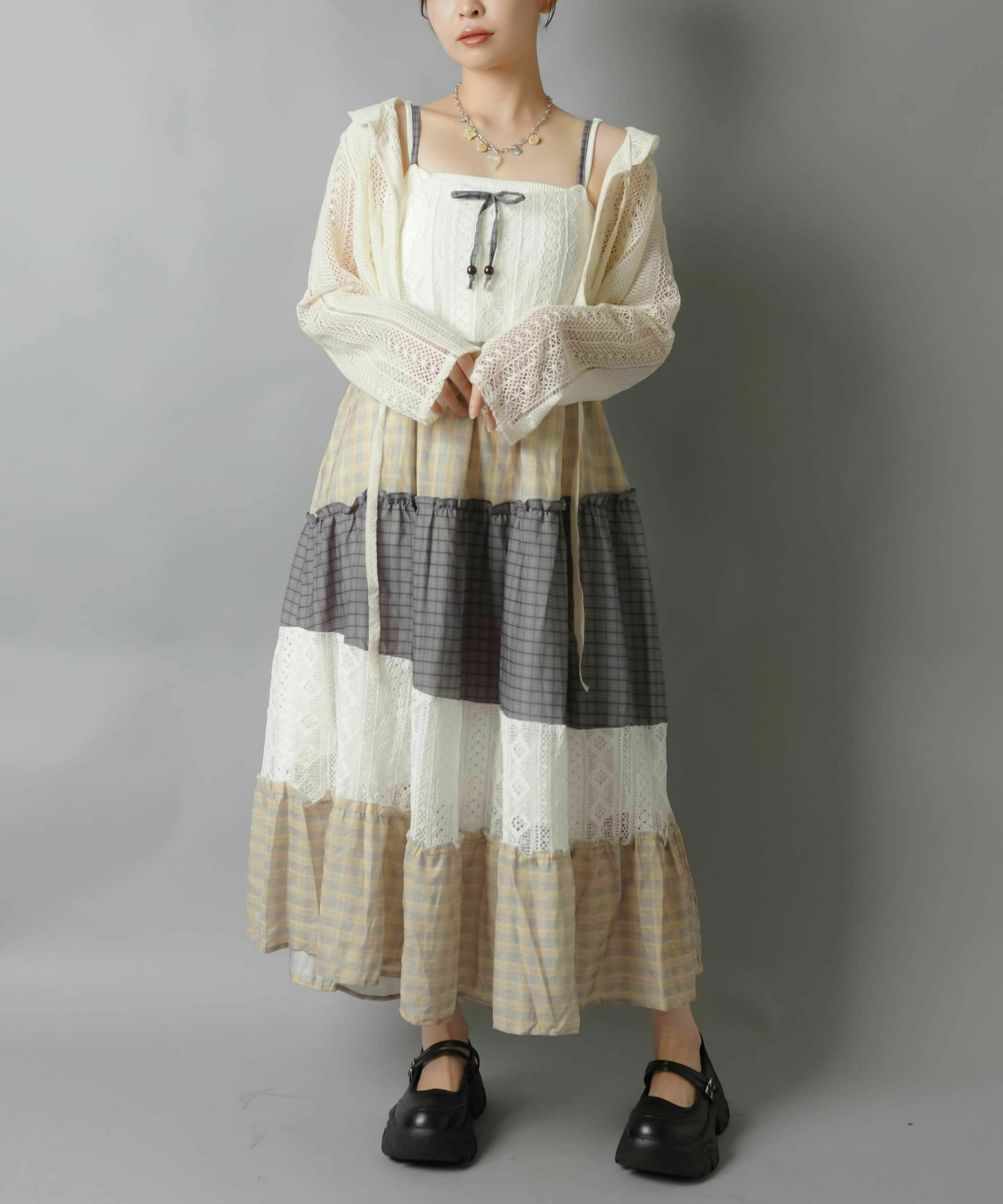 ロングキャミワンピース/チェックパッチワーク/#NEO森ガール