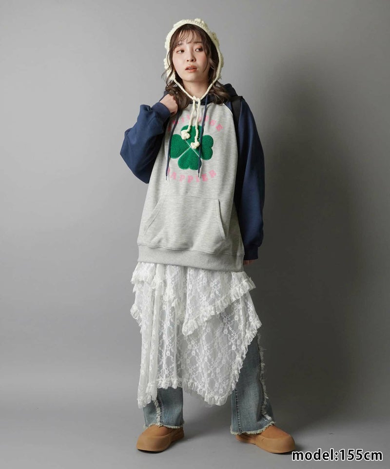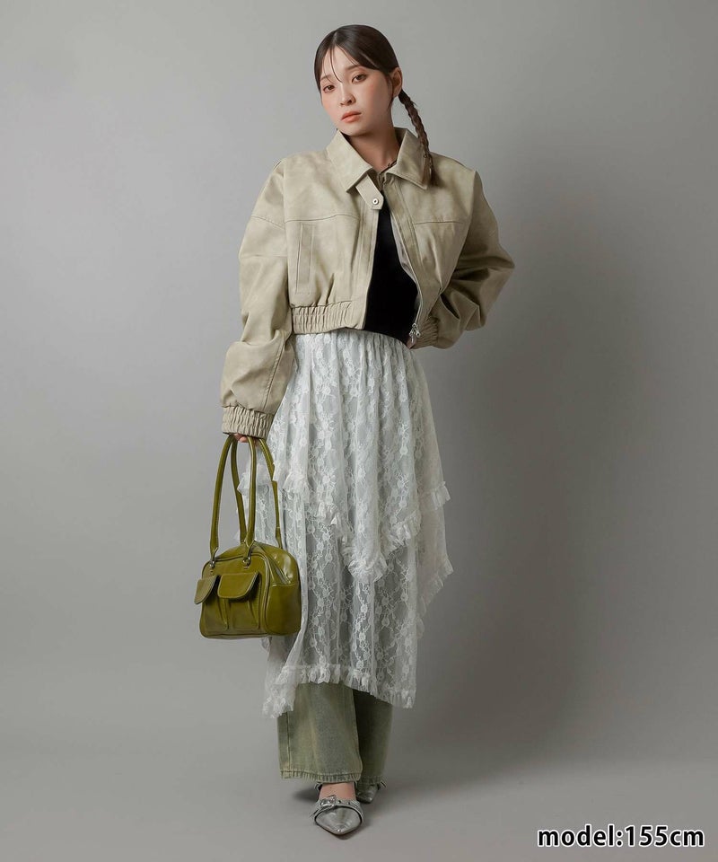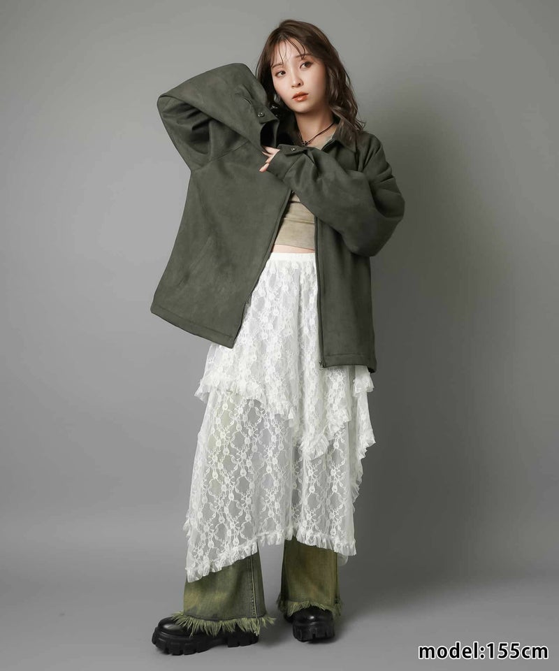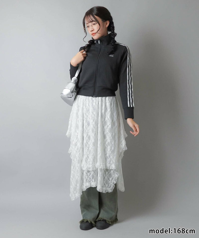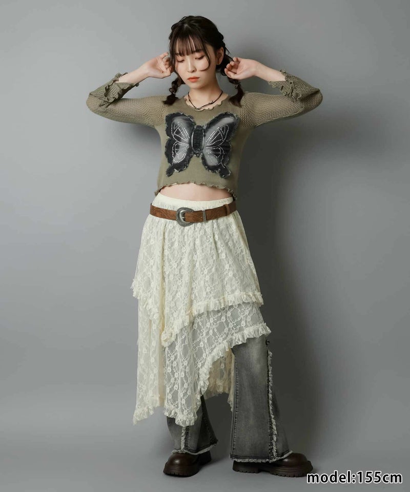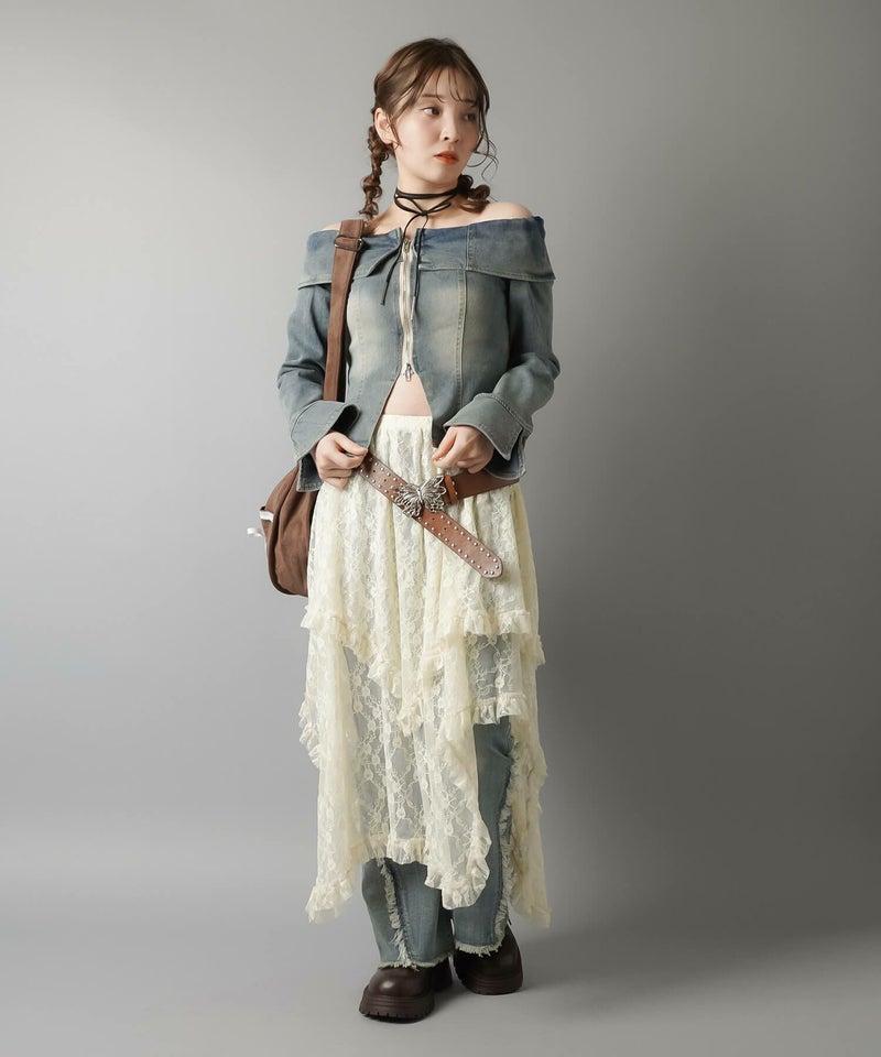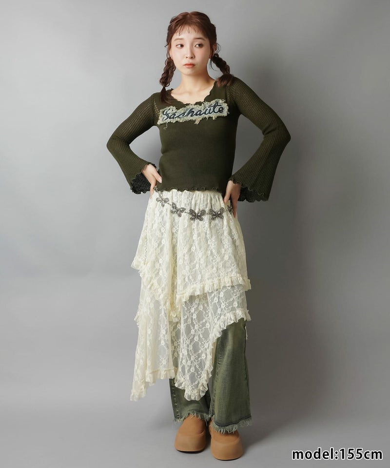 様々なスタイリングに映えるイレギュラーヘムラインレーススカートです。