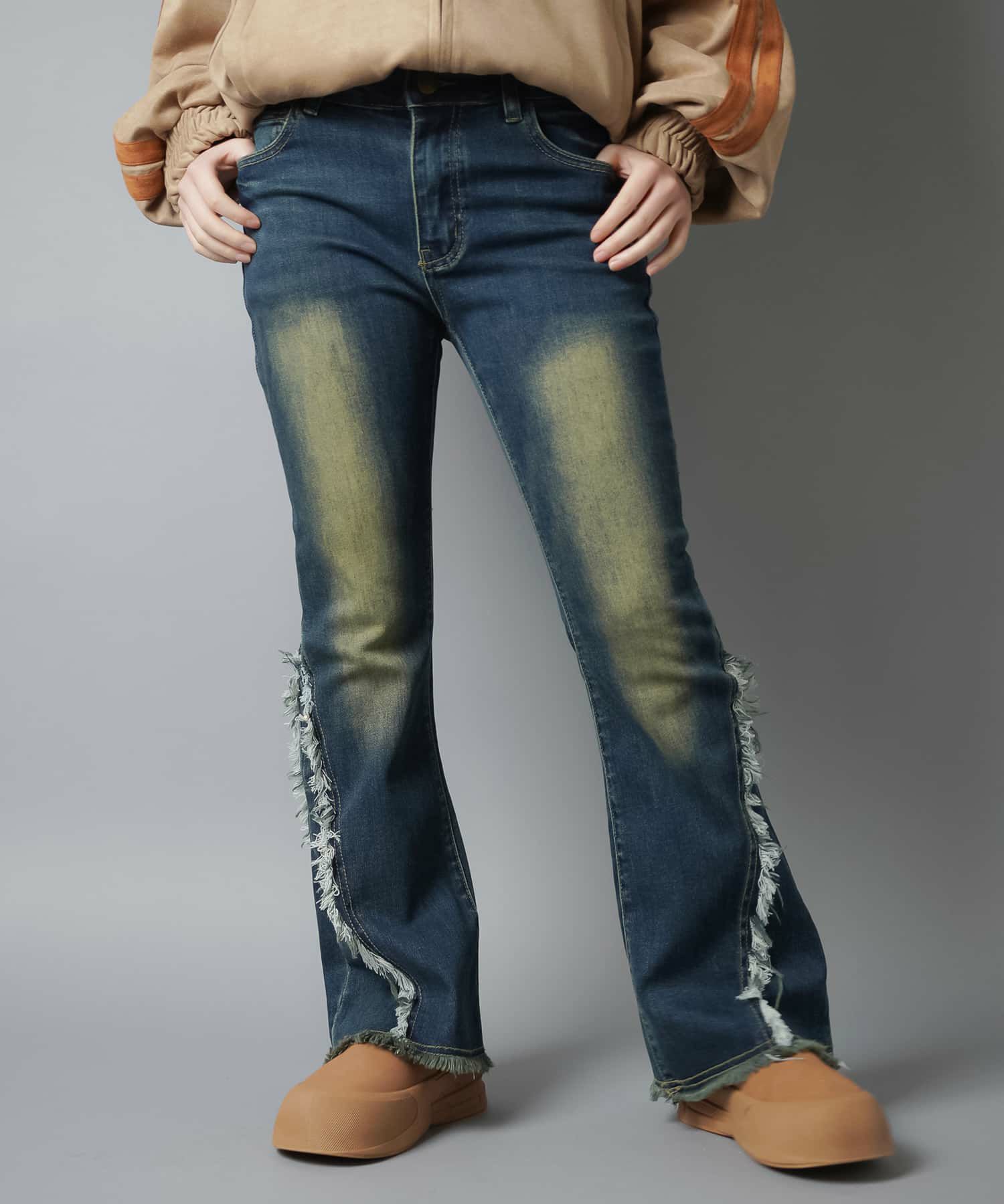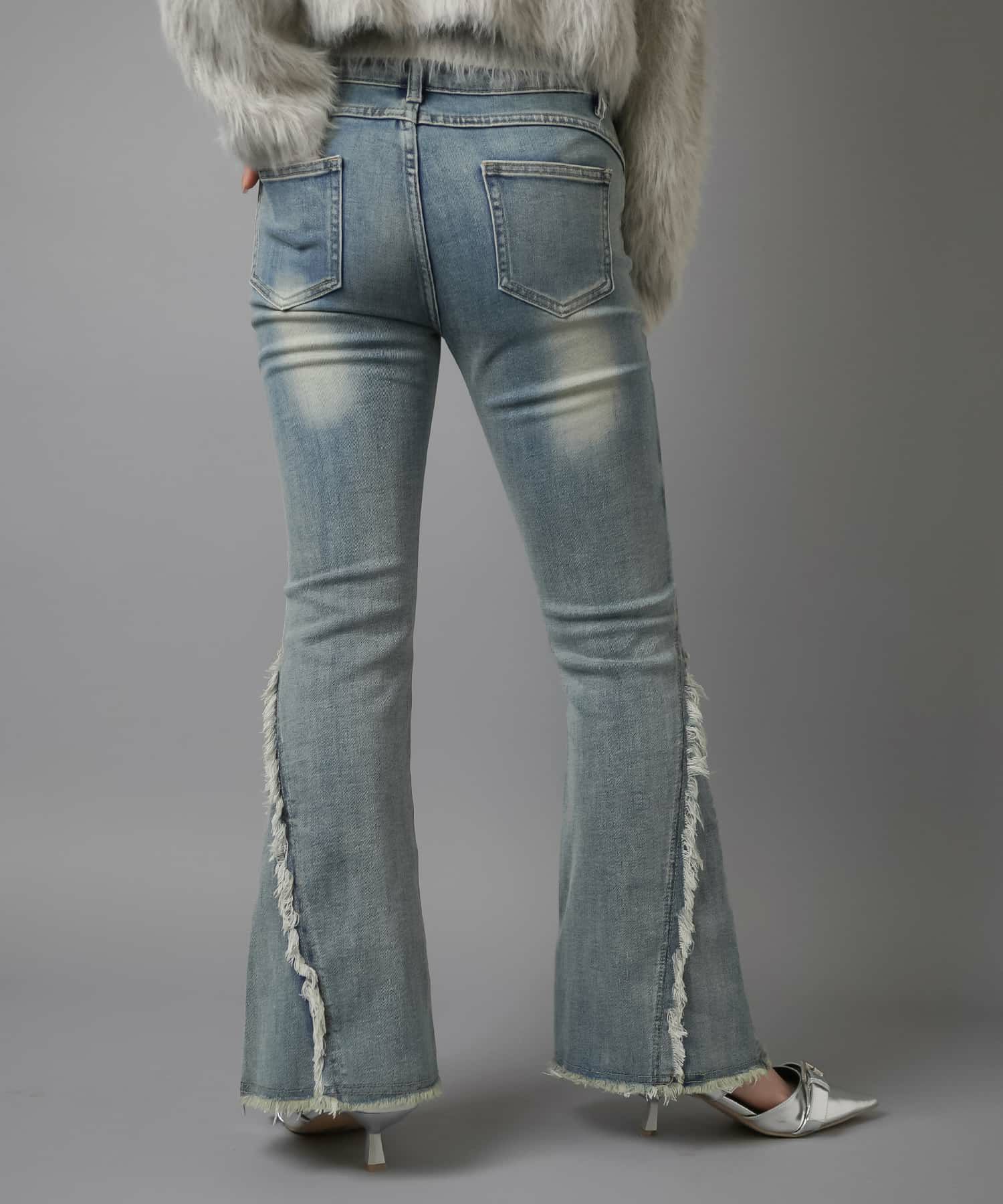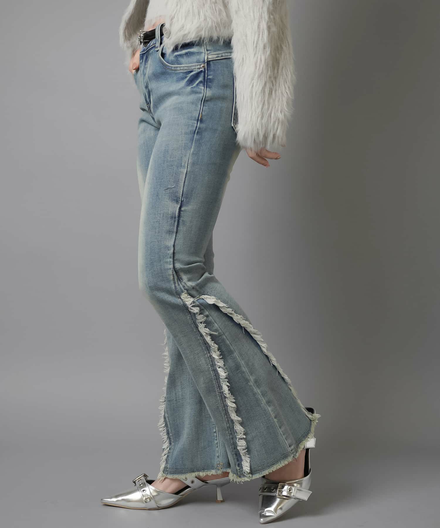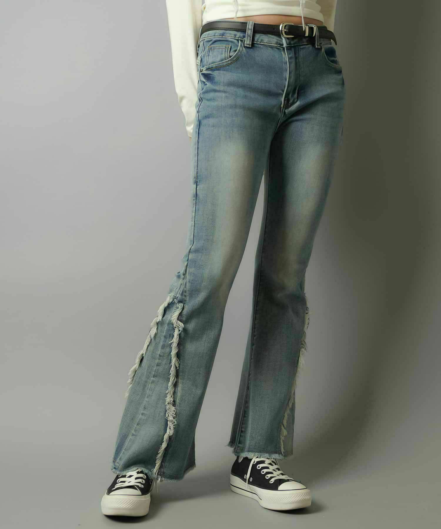 【履くだけで旬なコーデが完成!脚長効果◎トレンドのフリンジデニムパンツ】