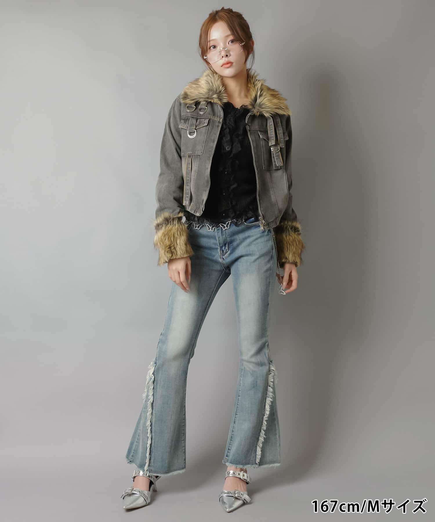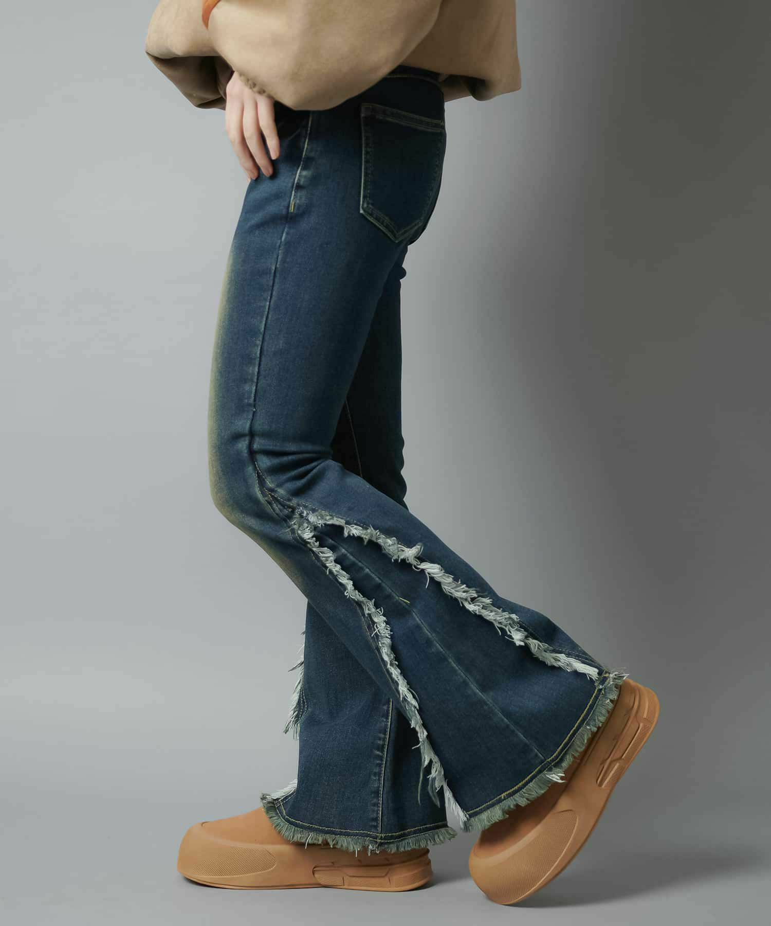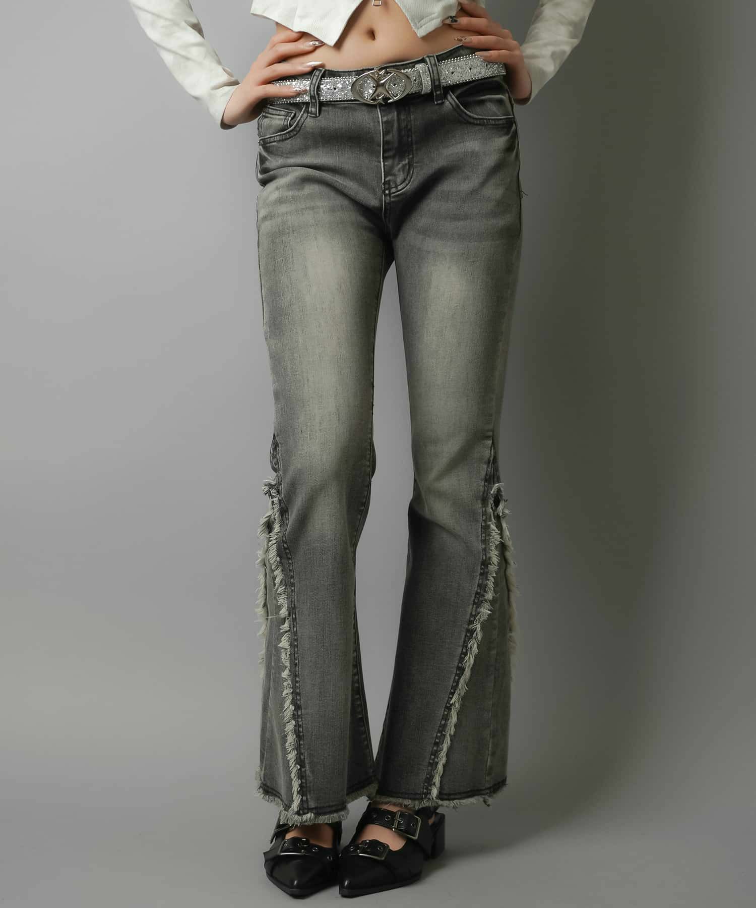 【履くだけで旬なコーデが完成!脚長効果◎トレンドのフリンジデニムパンツ】