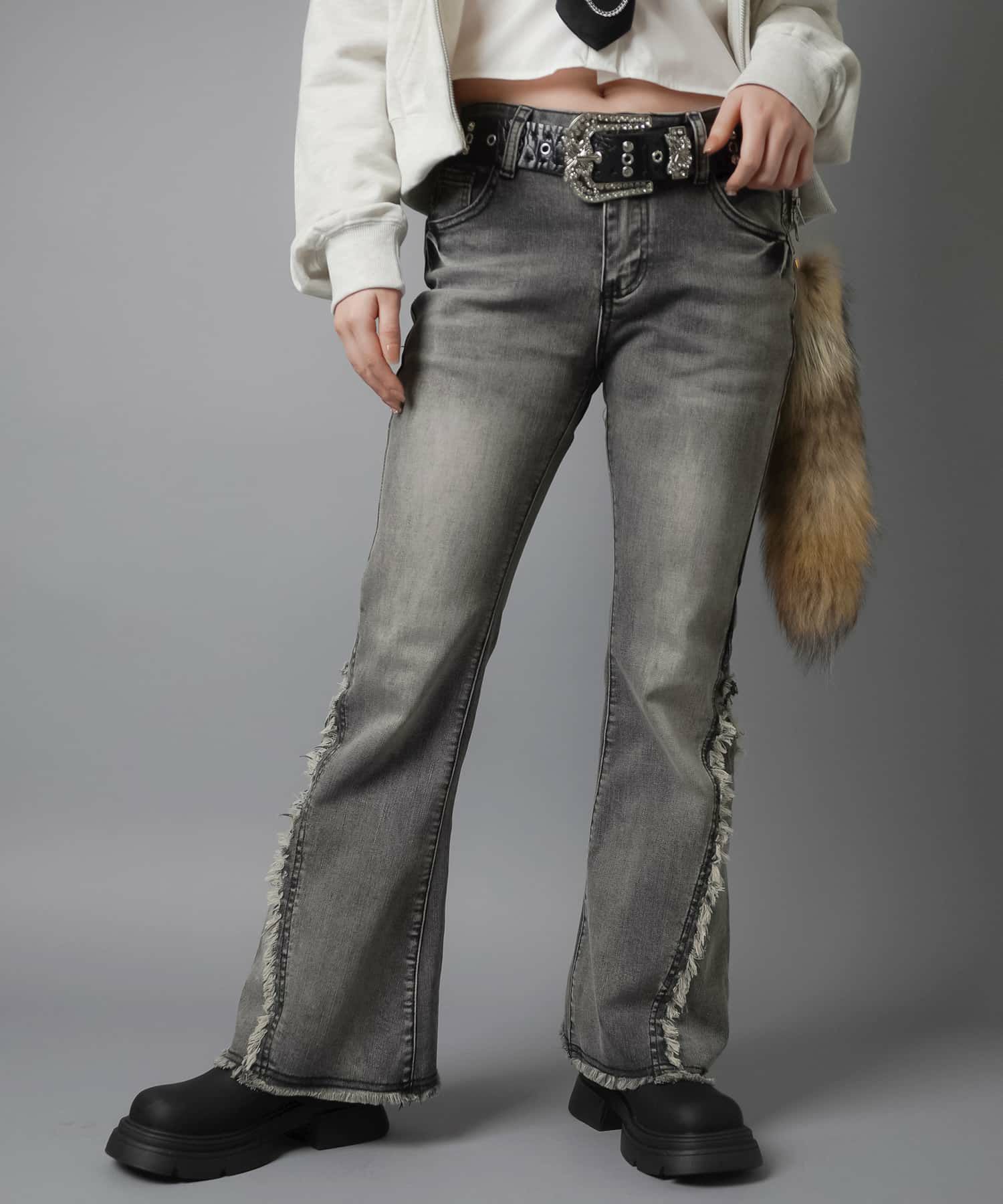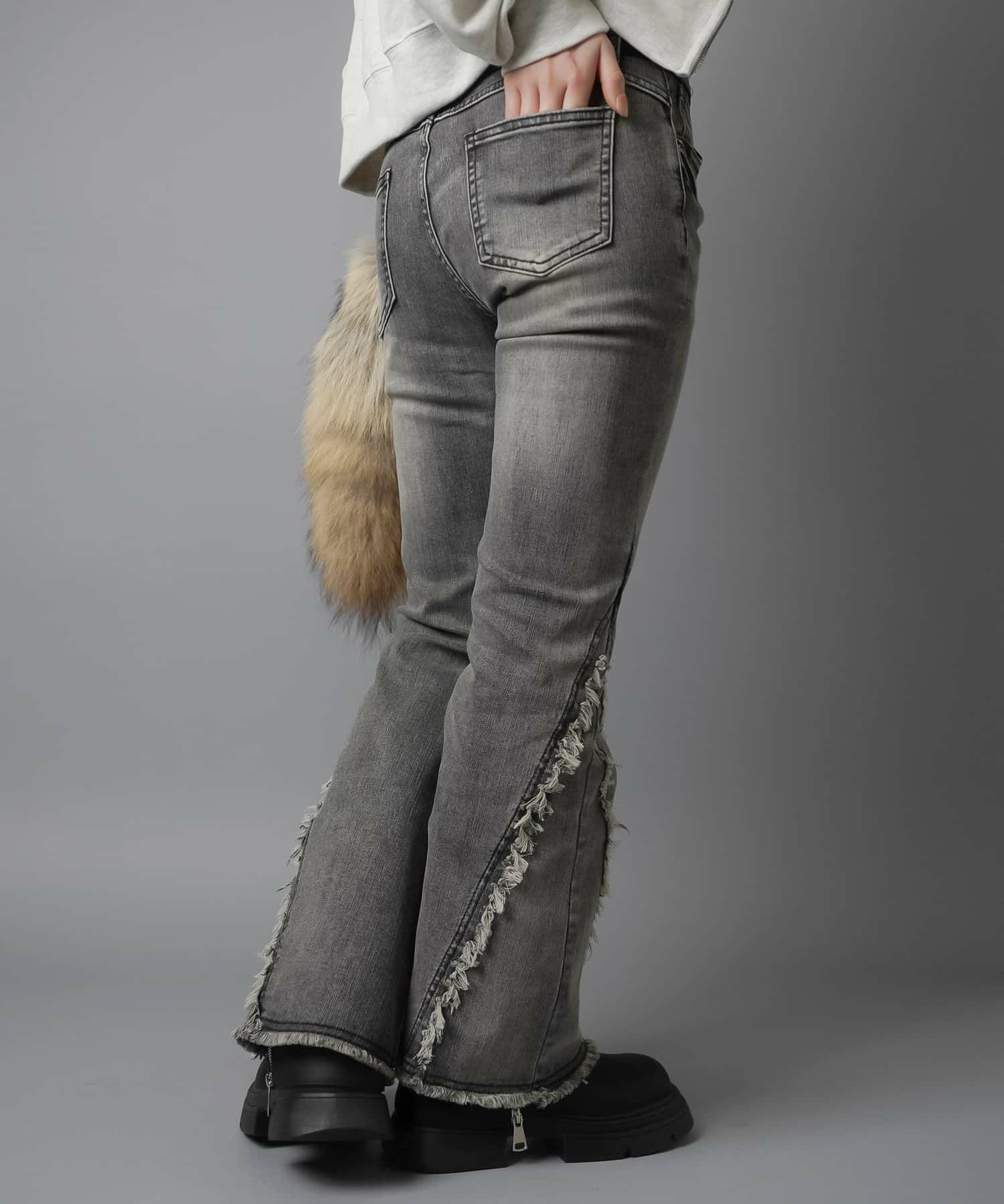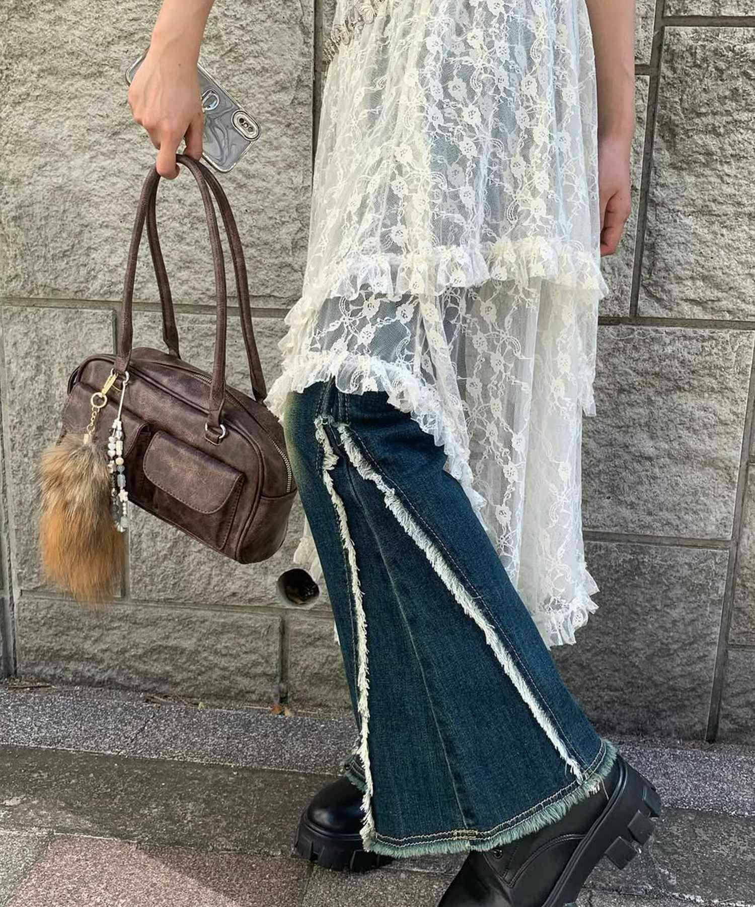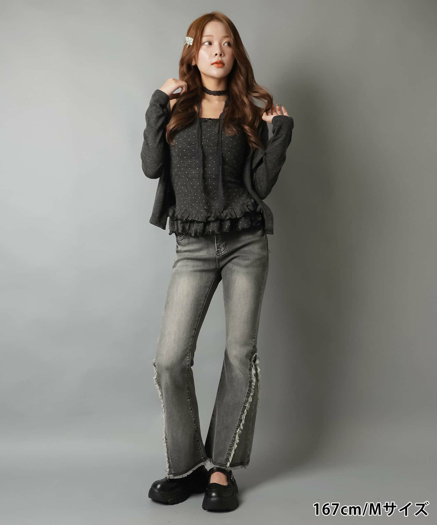 【履くだけで旬なコーデが完成!脚長効果◎トレンドのフリンジデニムパンツ】