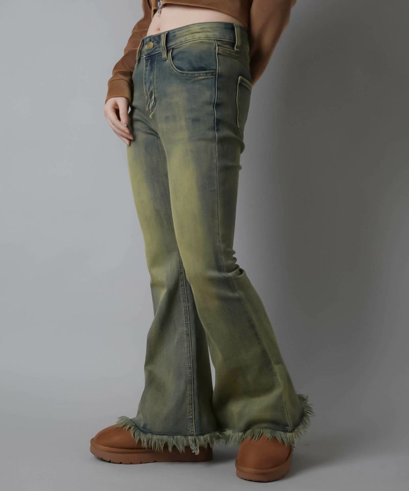 【履くだけで旬なコーデが完成!脚長効果◎フリンジフレアデニムパンツ】