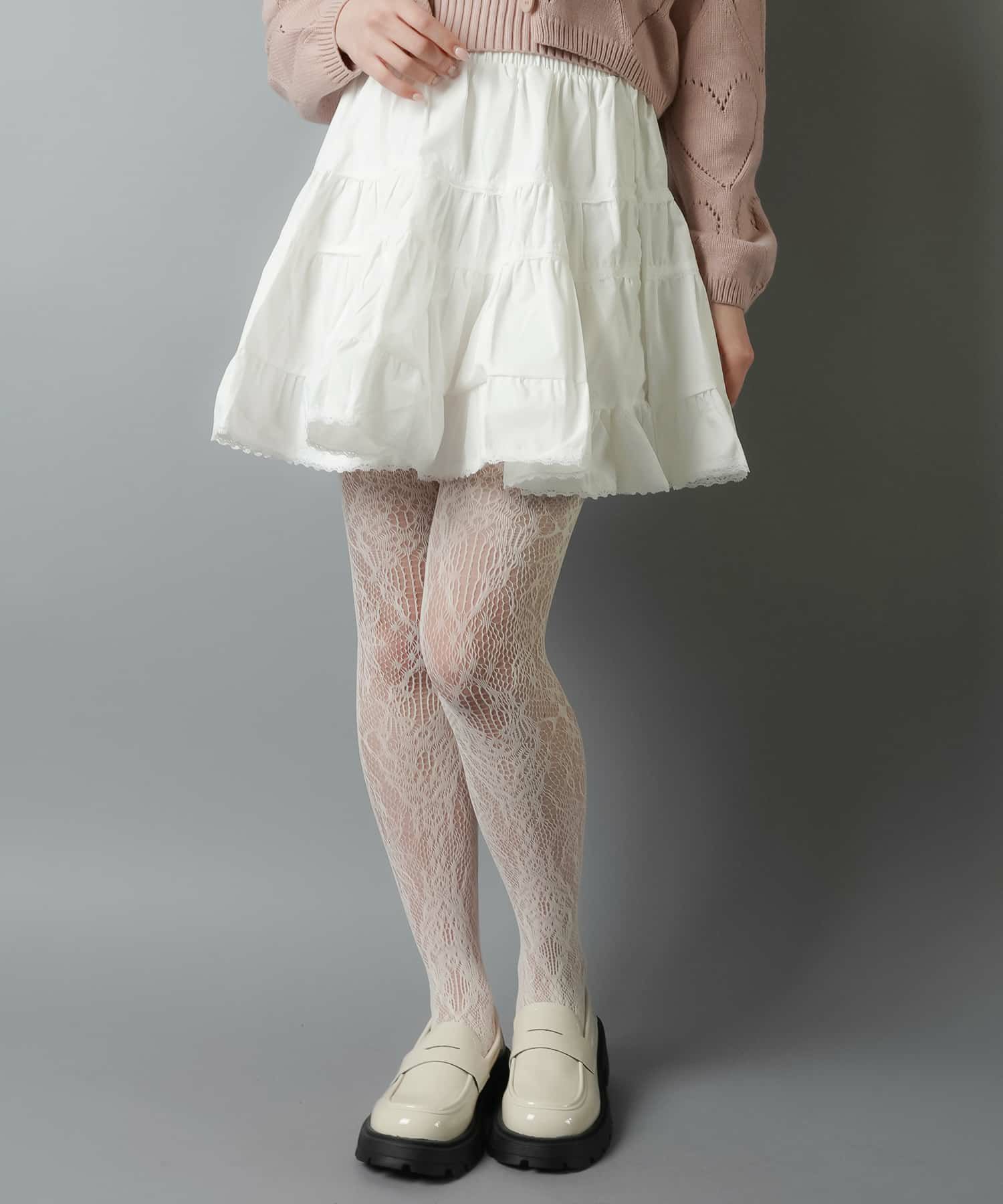 スカートにレギンスやタイツをレイヤードするのもポイント。