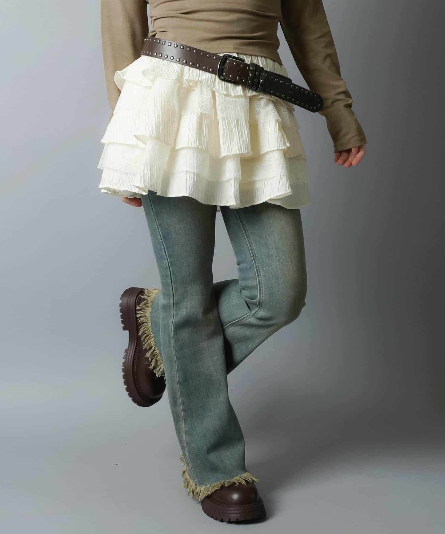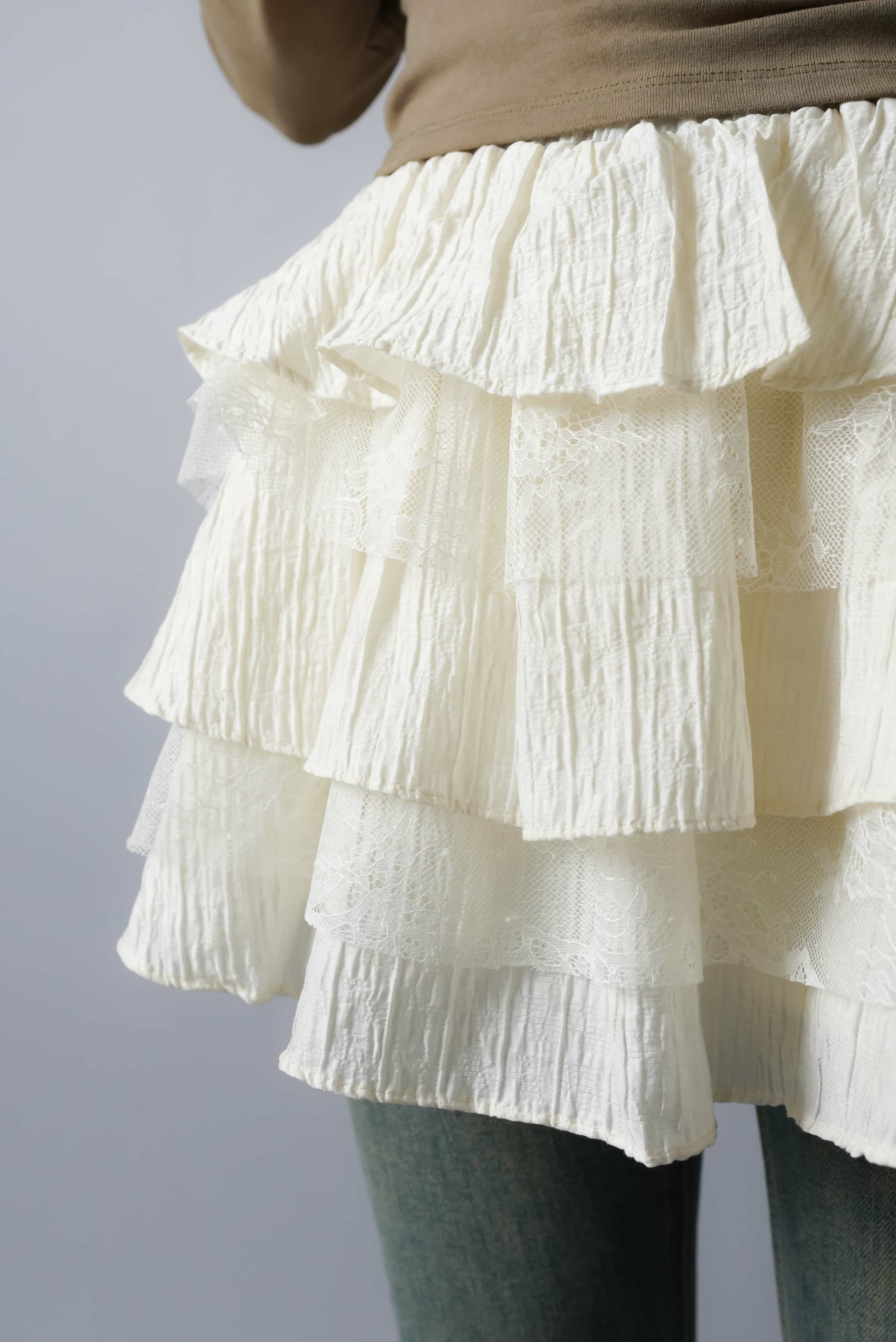 【88%OFF】ティアードミニスカート/しわレース/インナーパンツ付き