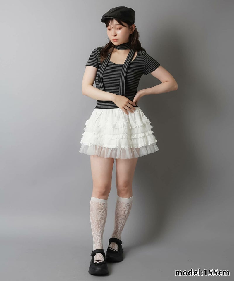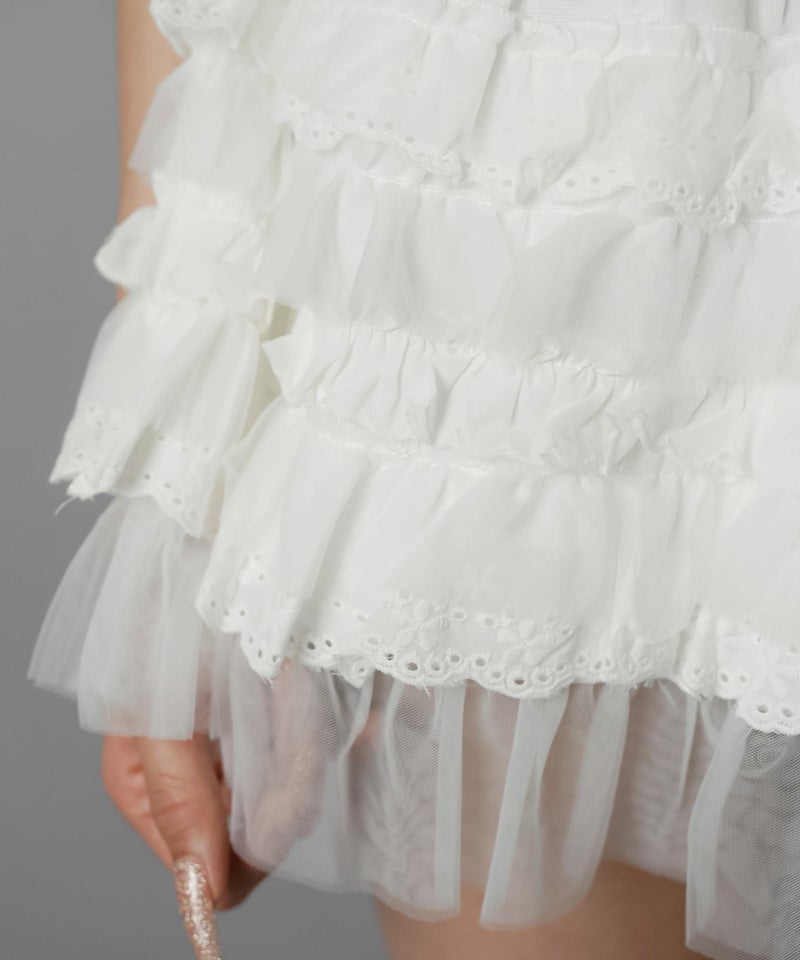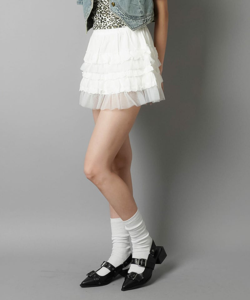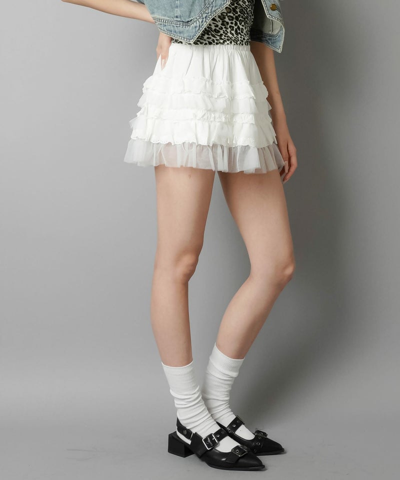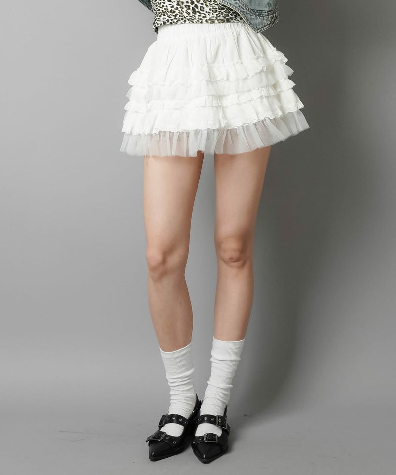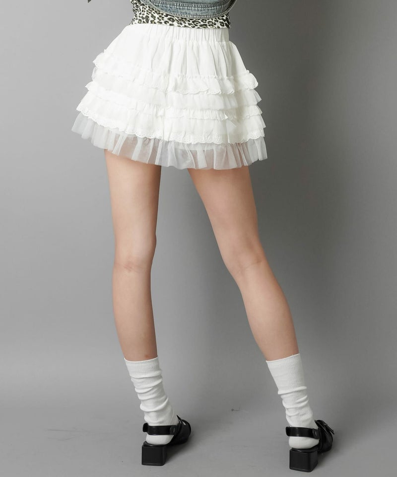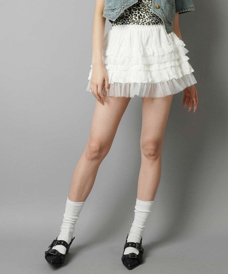1:コットンレースとチュール素材が組み合わさったティアードスカート
