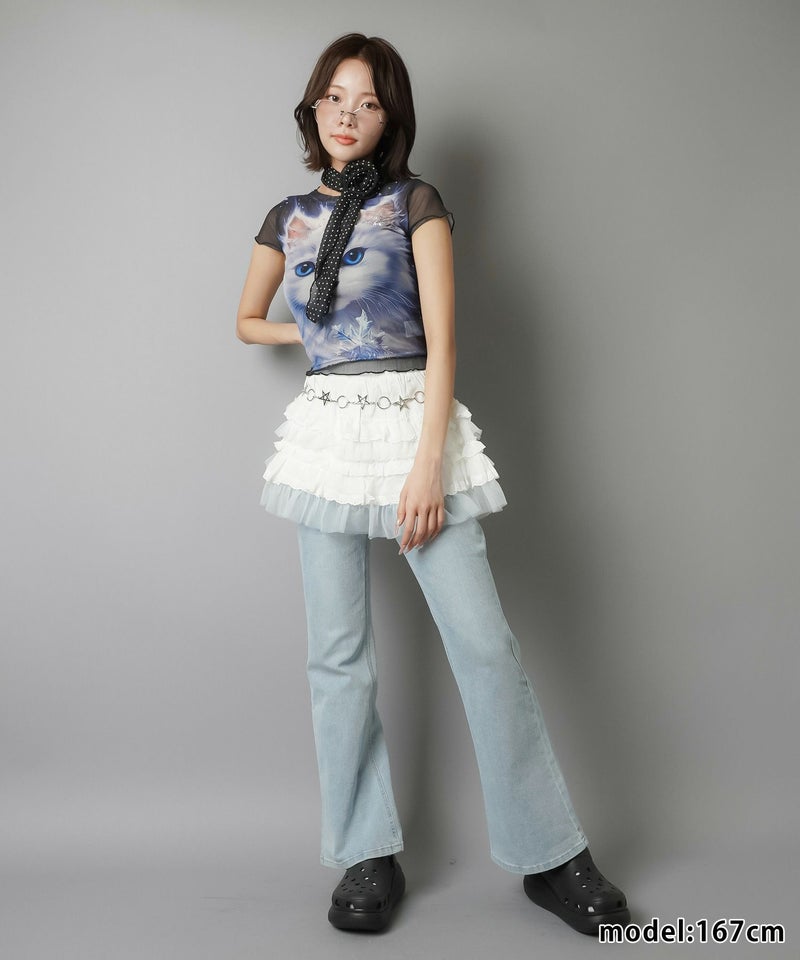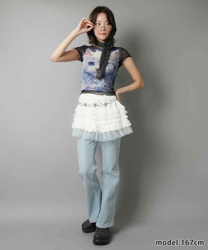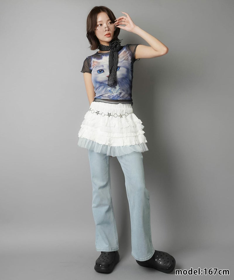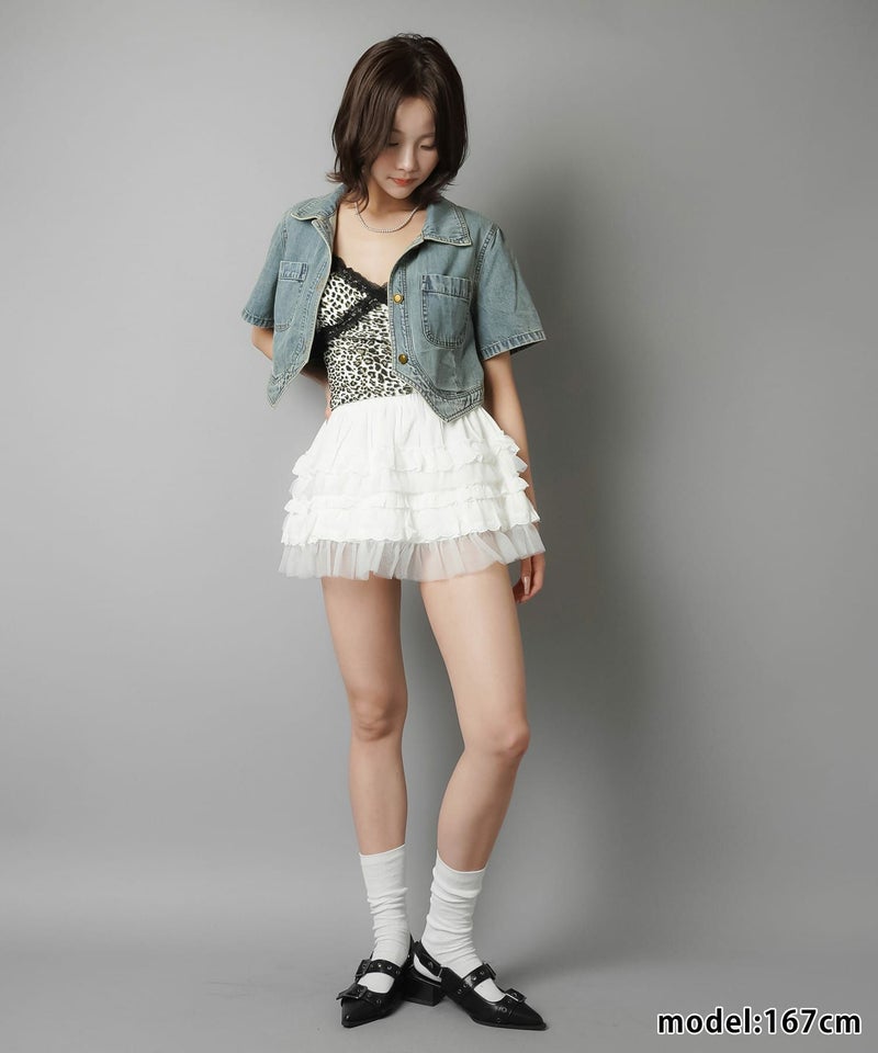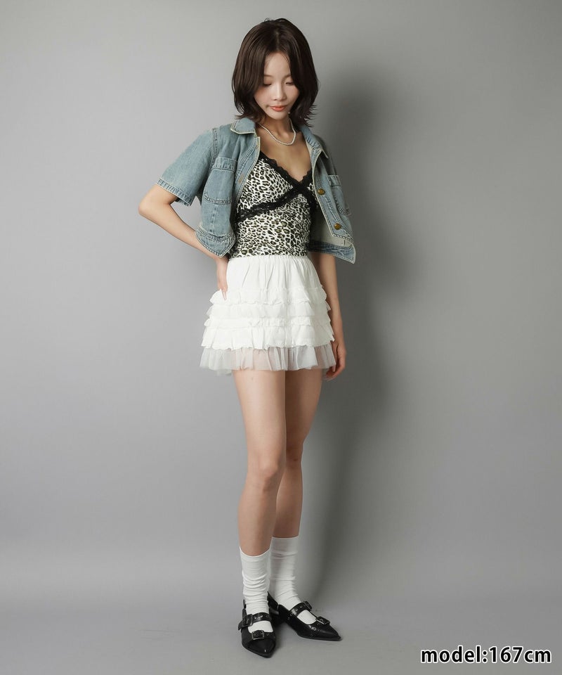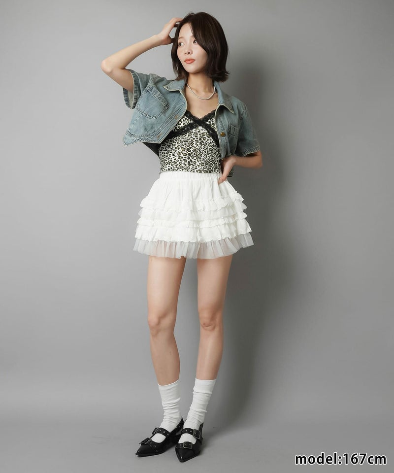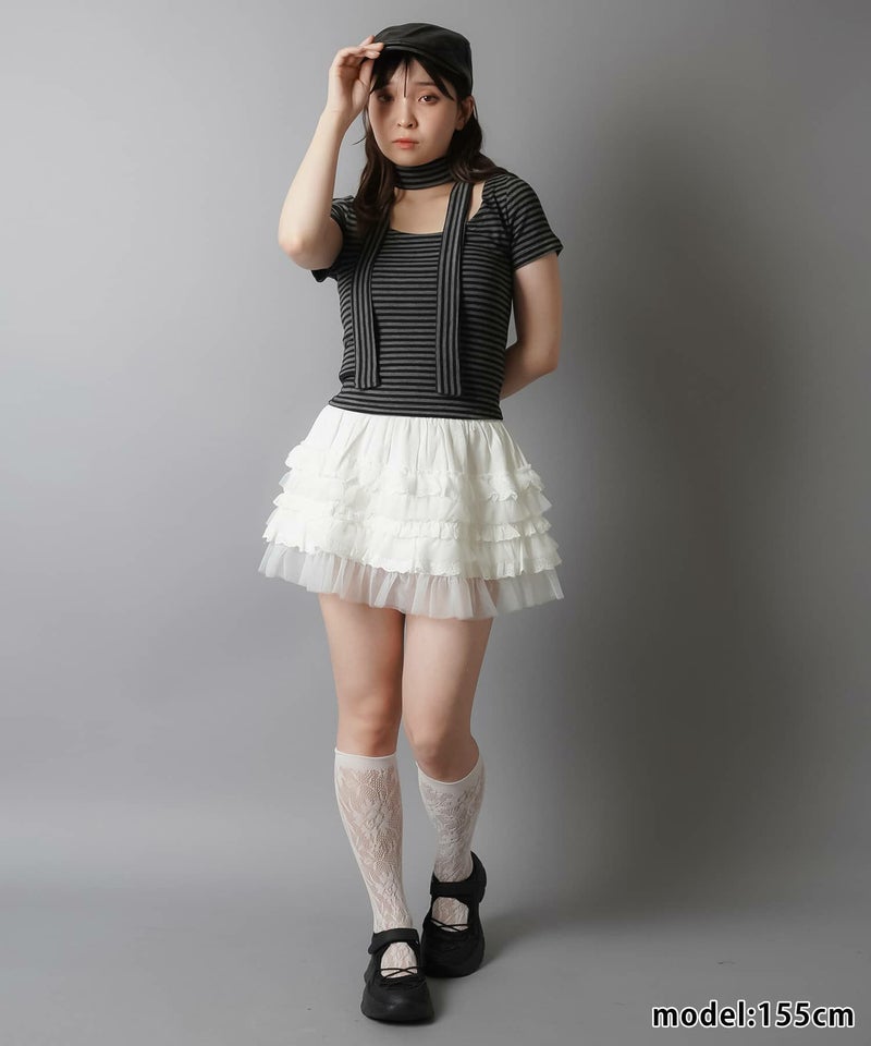 1:コットンレースとチュール素材が組み合わさったティアードスカート