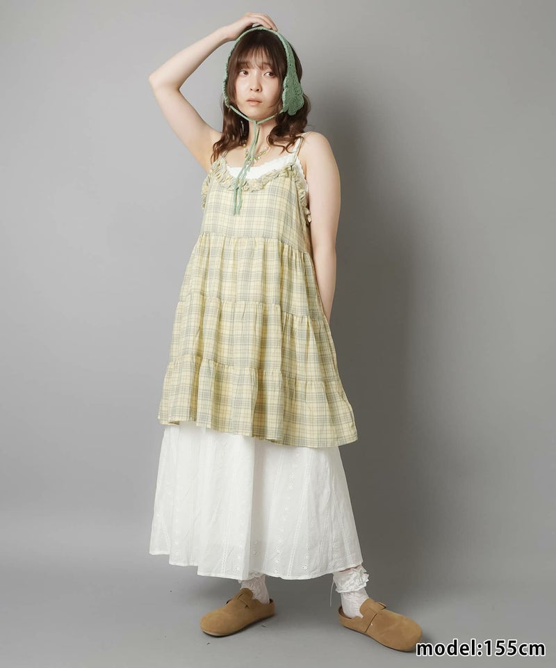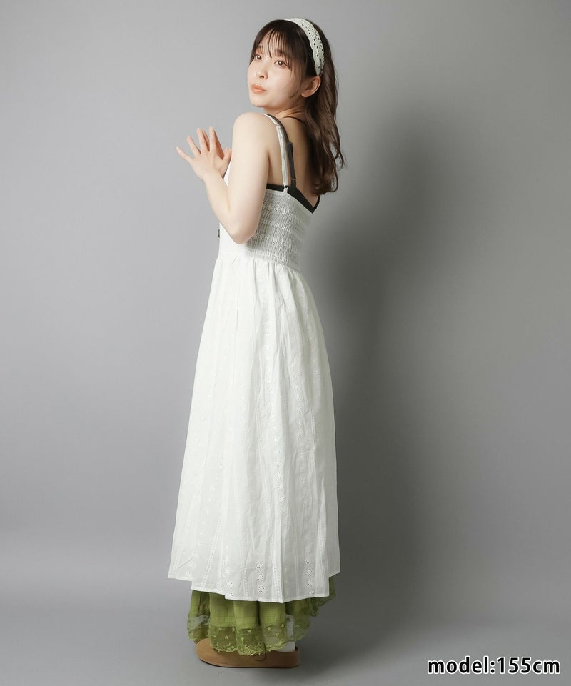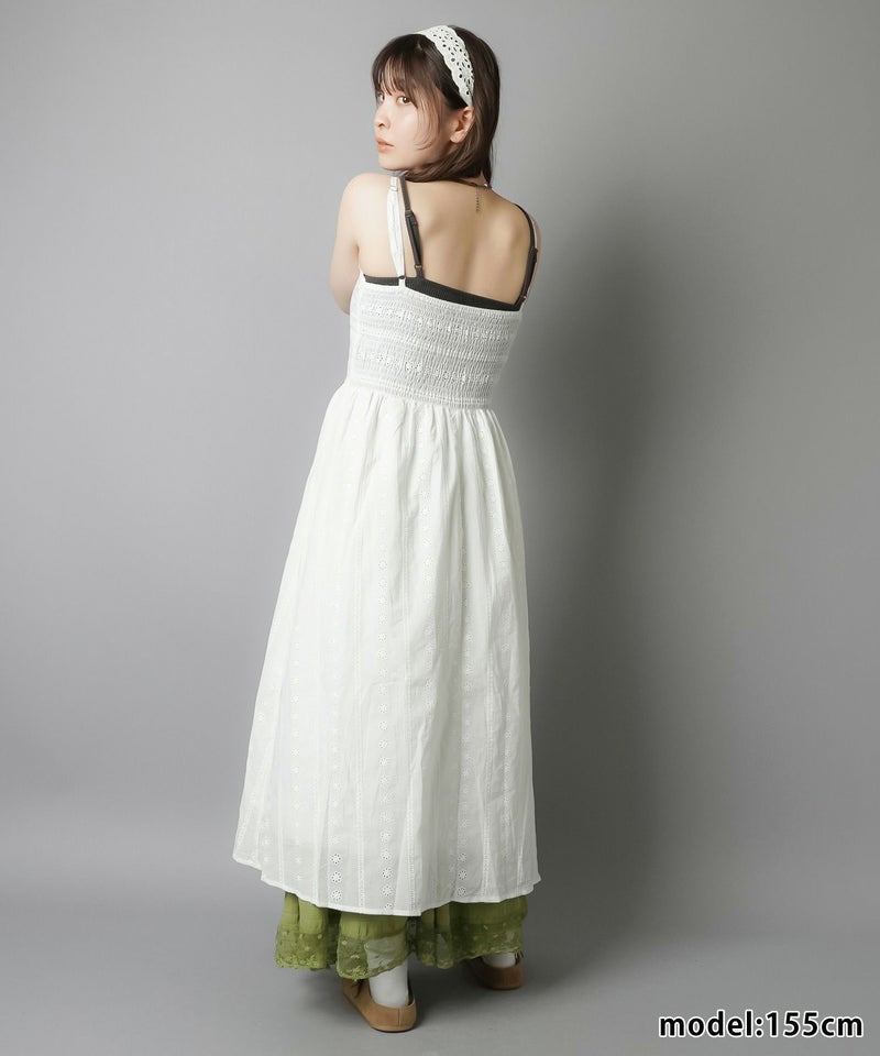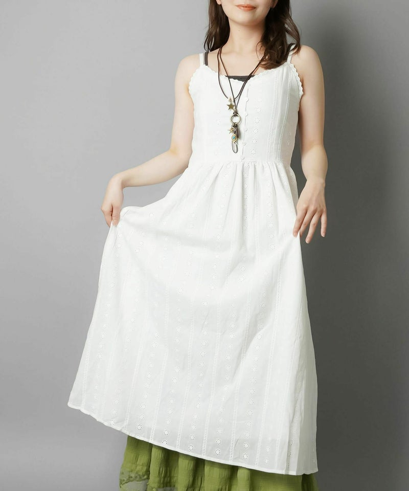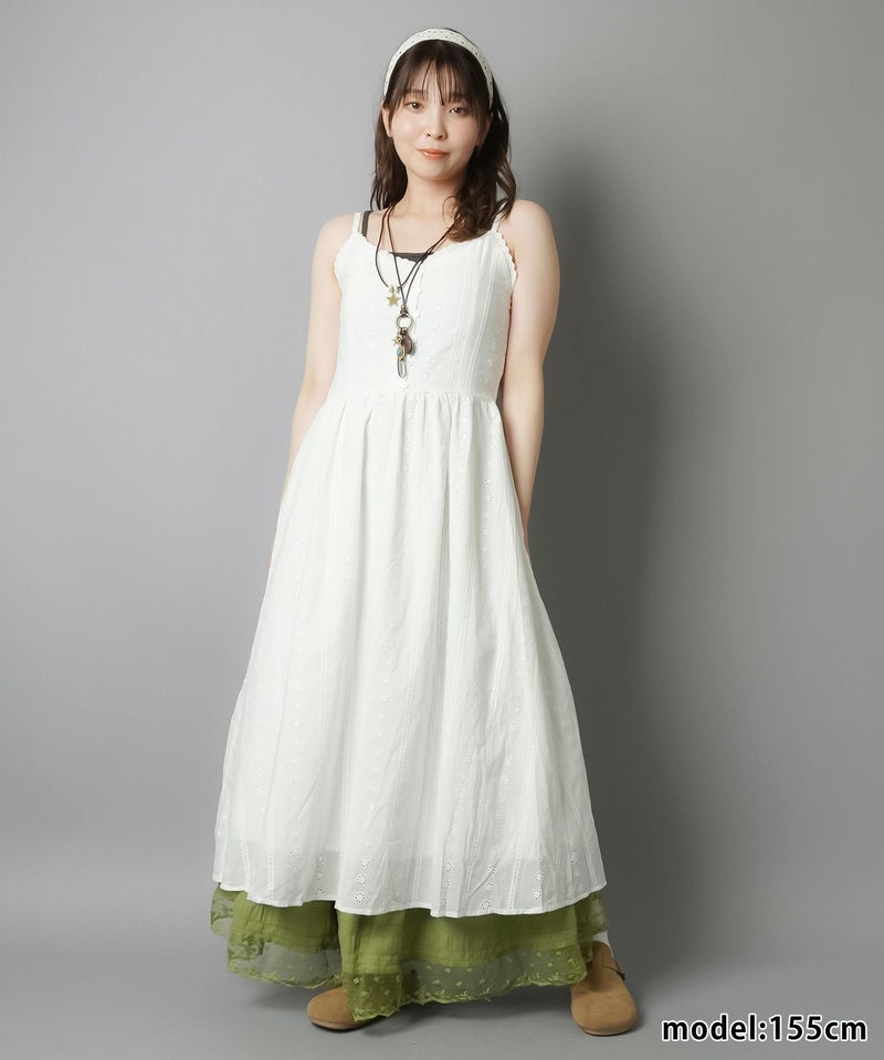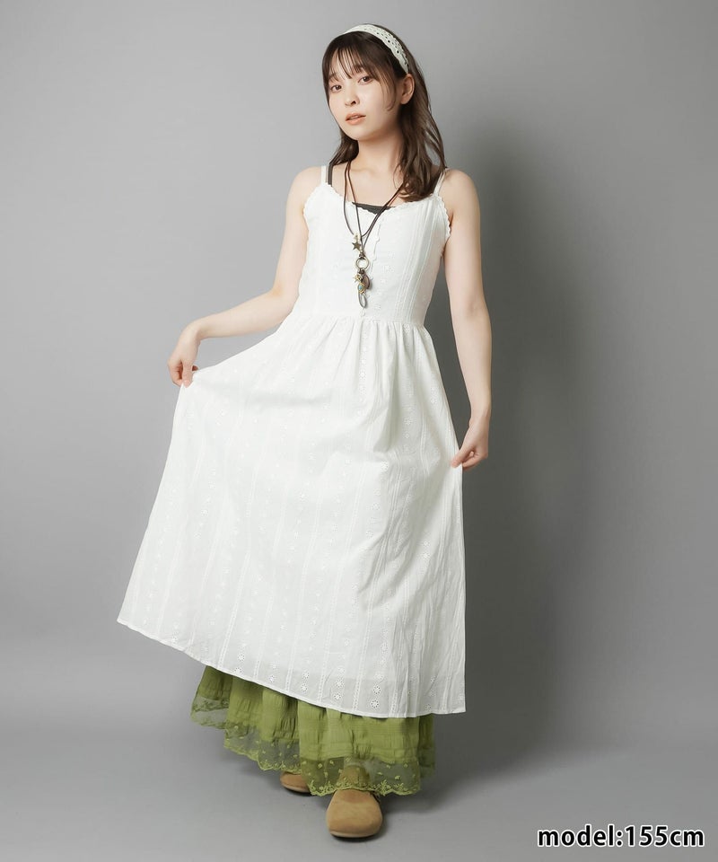 1:コットンレースのロングキャミワンピ