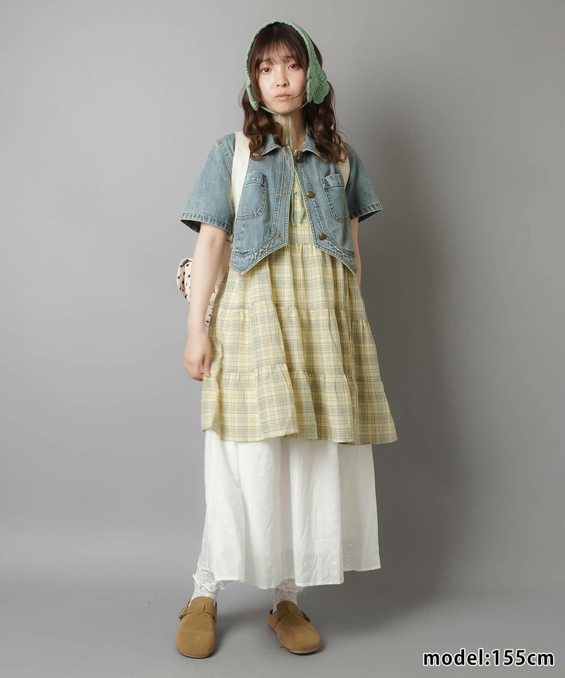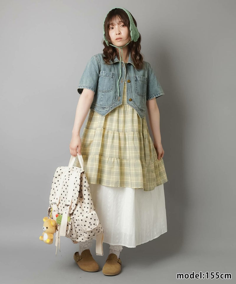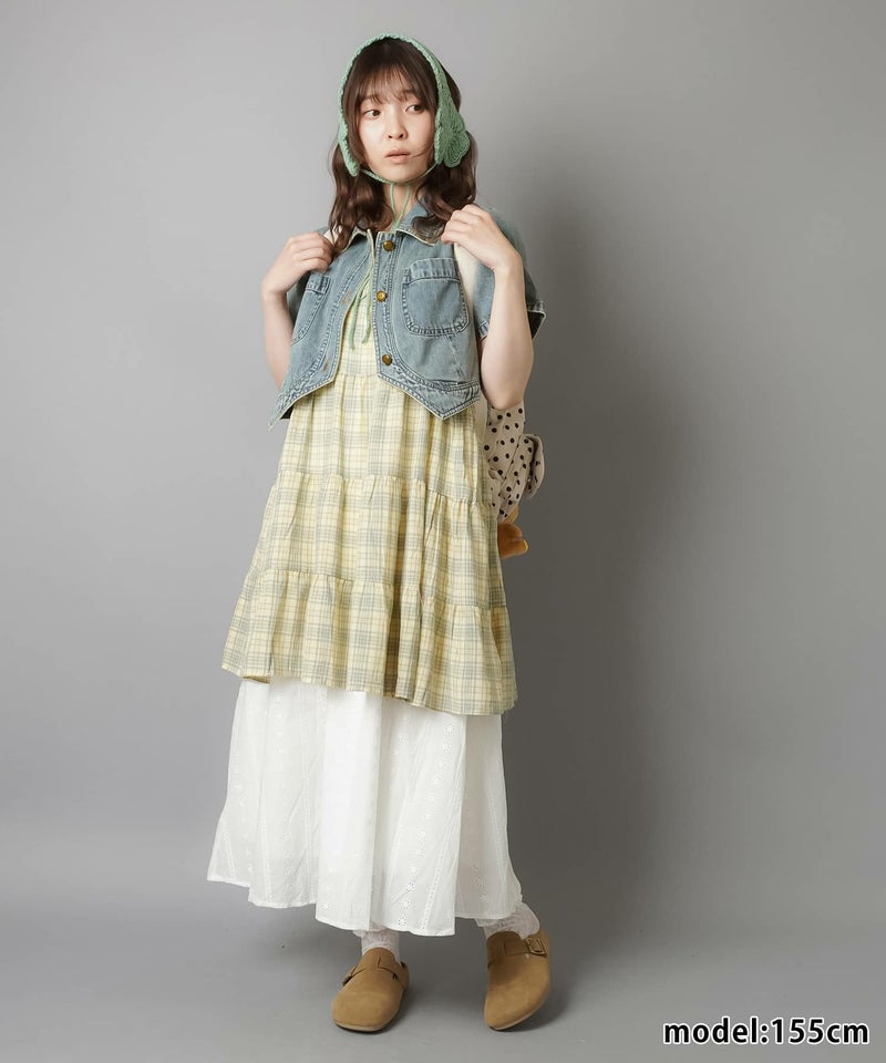 薄手のワンピースにニットベストを重ねたり、