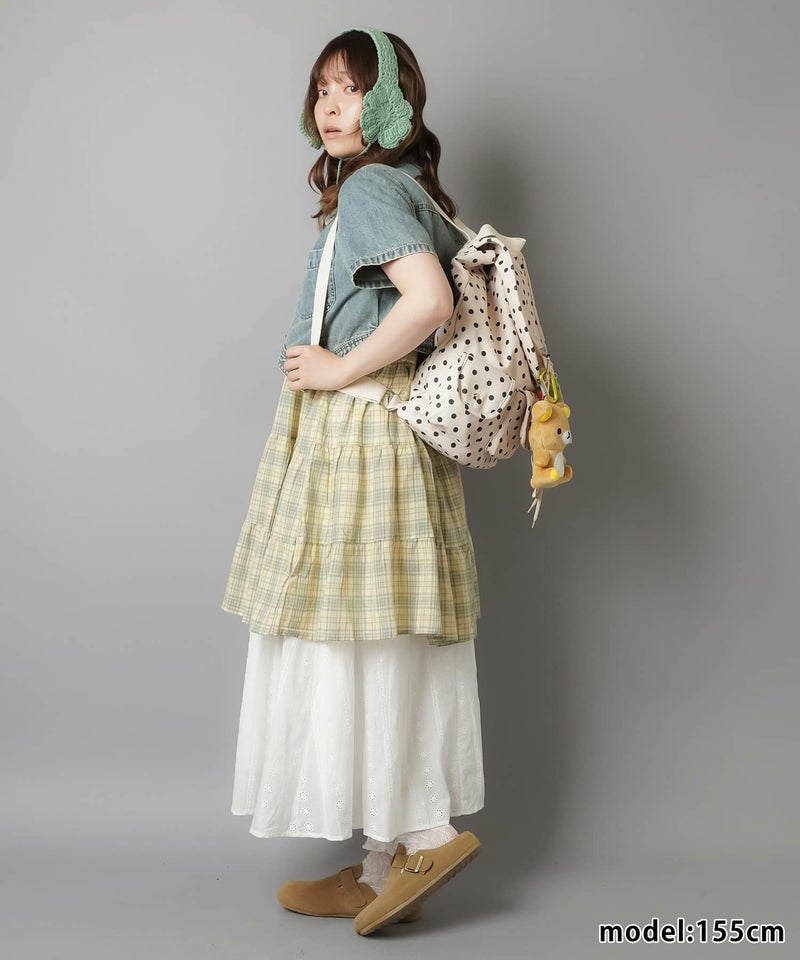 スカートにレギンスやタイツをレイヤードするのもポイント。