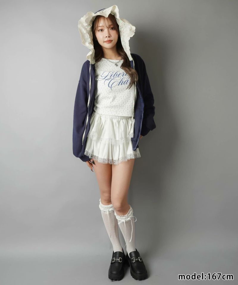 フード付きジップパーカー/花柄レース/#NEO森ガール