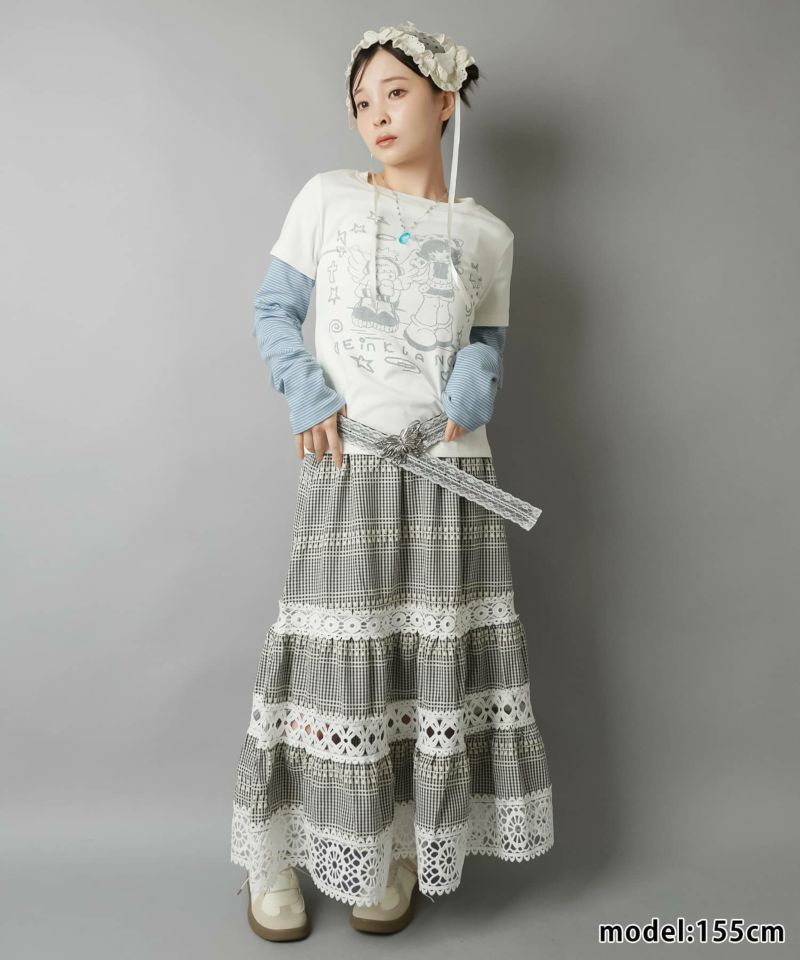 【レトロな雰囲気が可愛い♡レース×チェックの異素材ロングスカート】