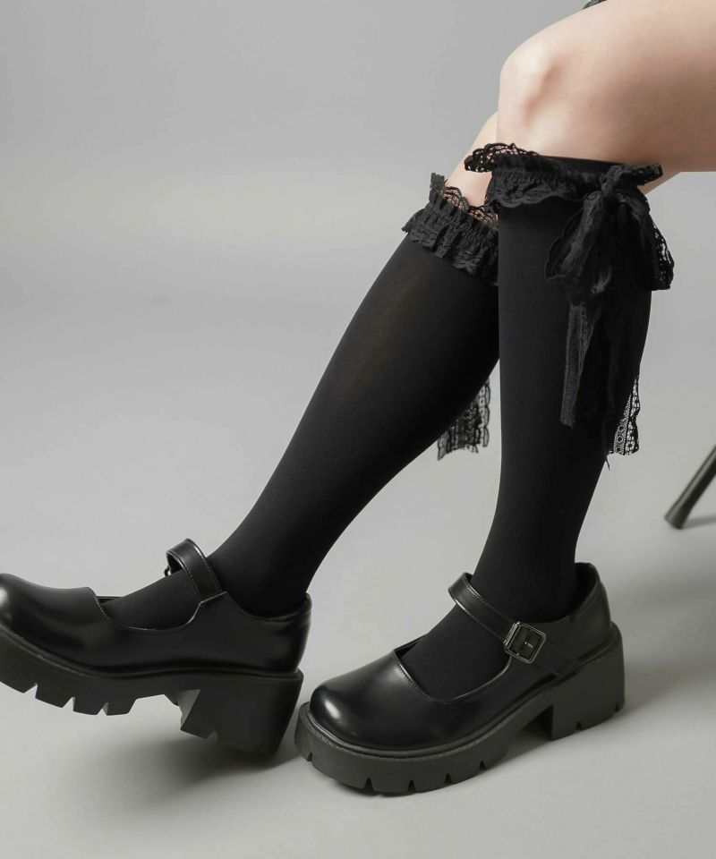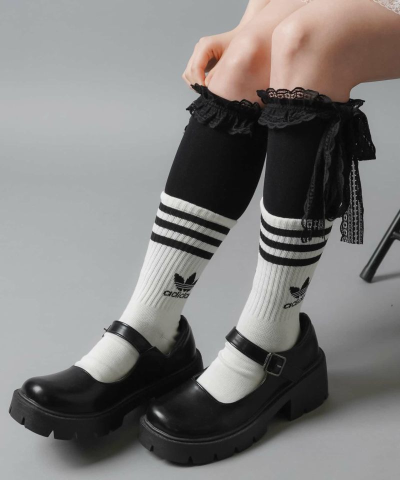 バレエコアやフレンチガーリーに🌼 シアーハイソックス/リボンレース/#バレエコア