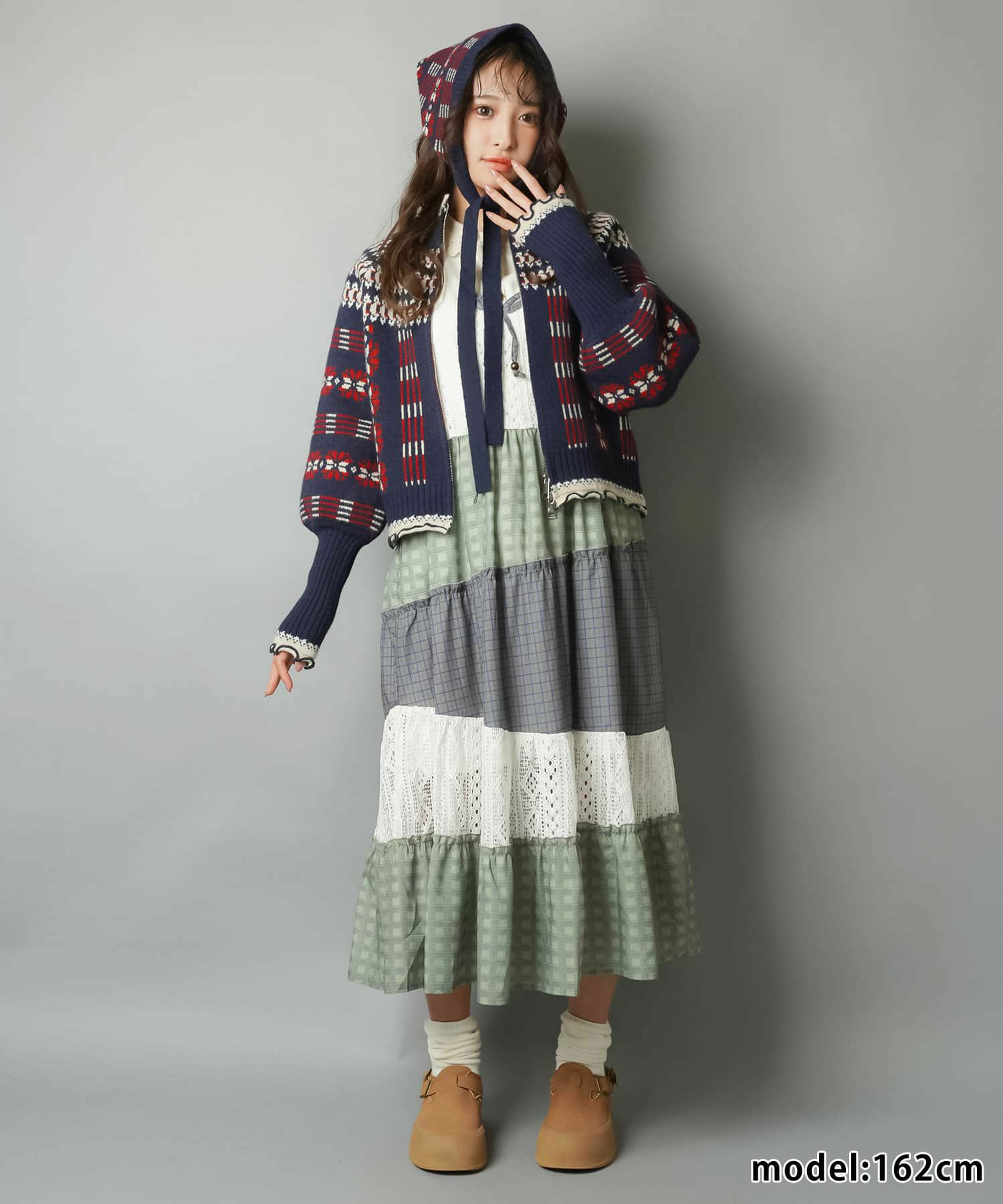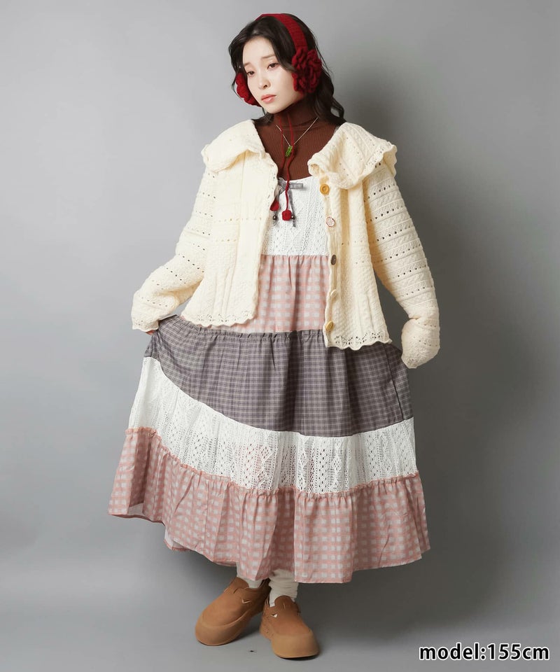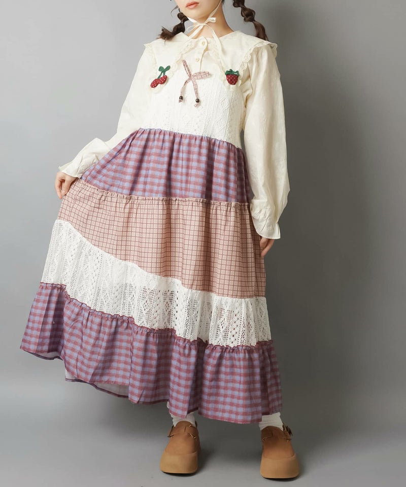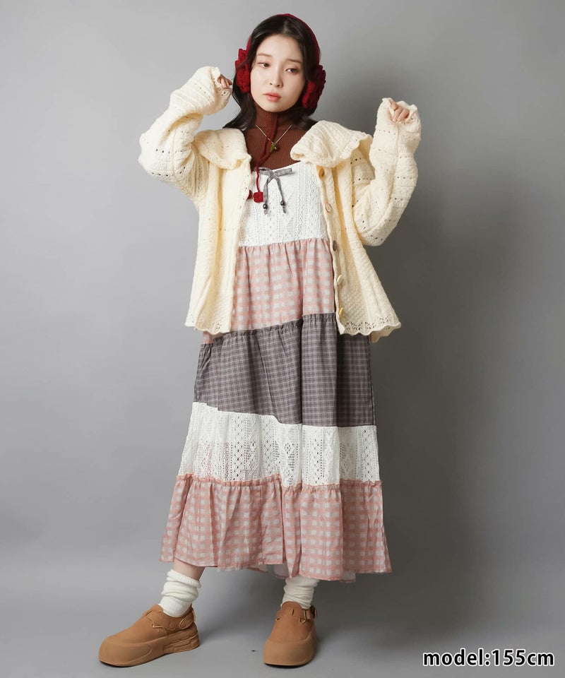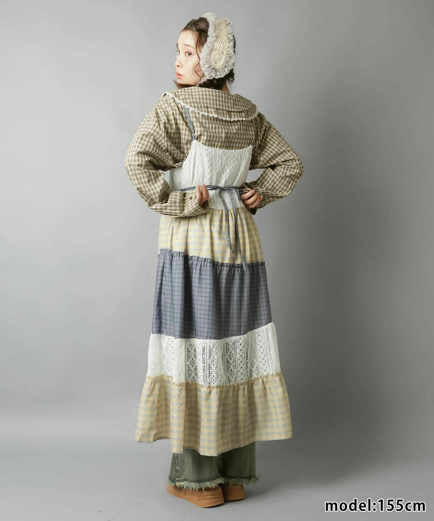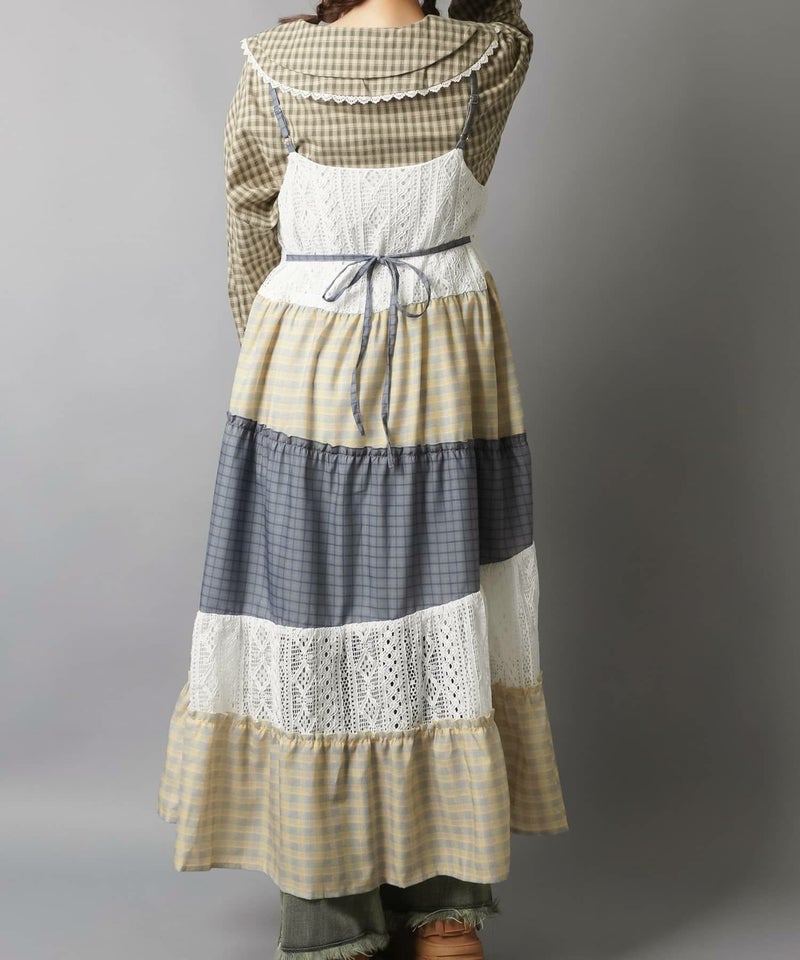 2:レースやチェックがアソートに組み合わさっていて一枚で主役級のキャミワンピ
