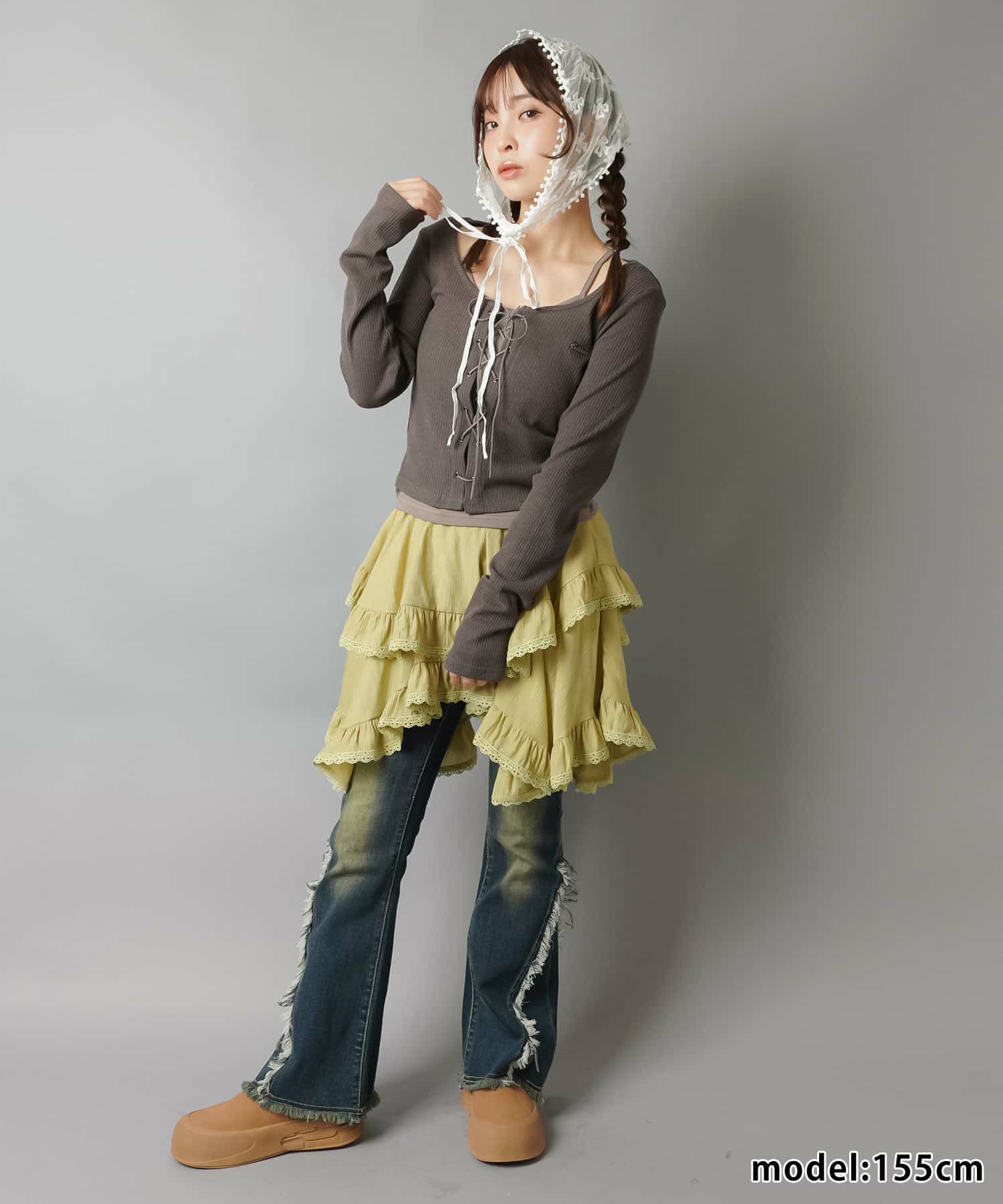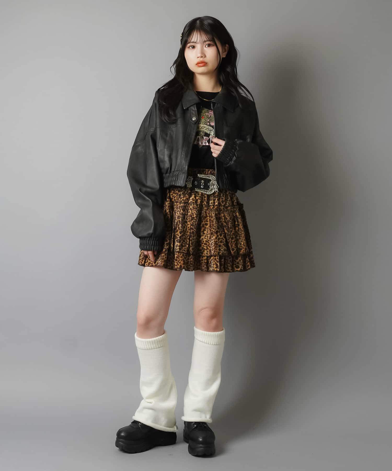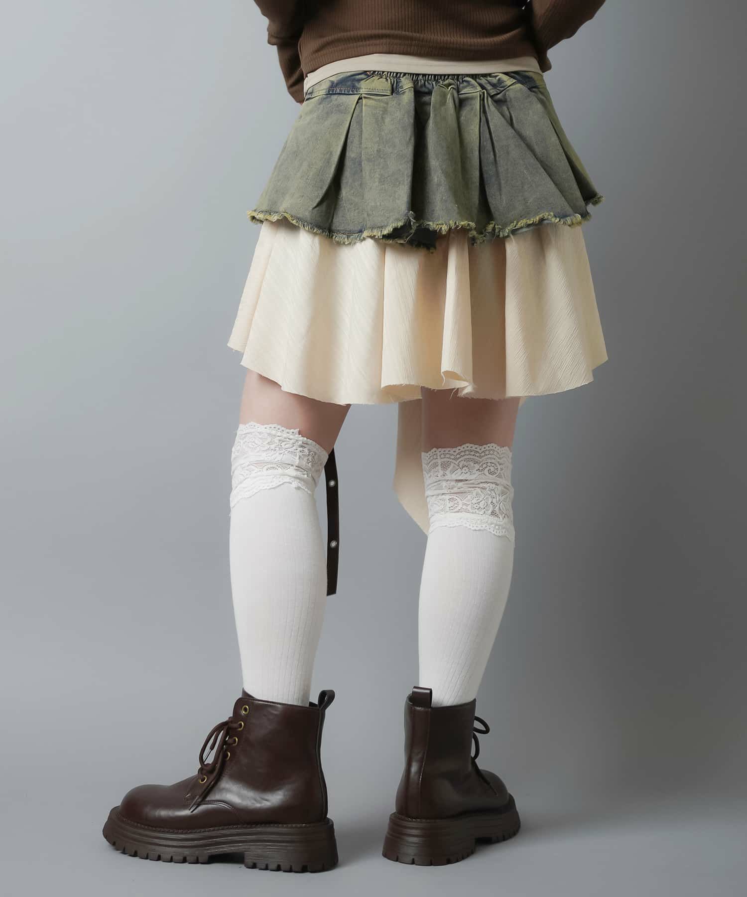 スカートにレギンスやタイツをレイヤードするのもポイント。