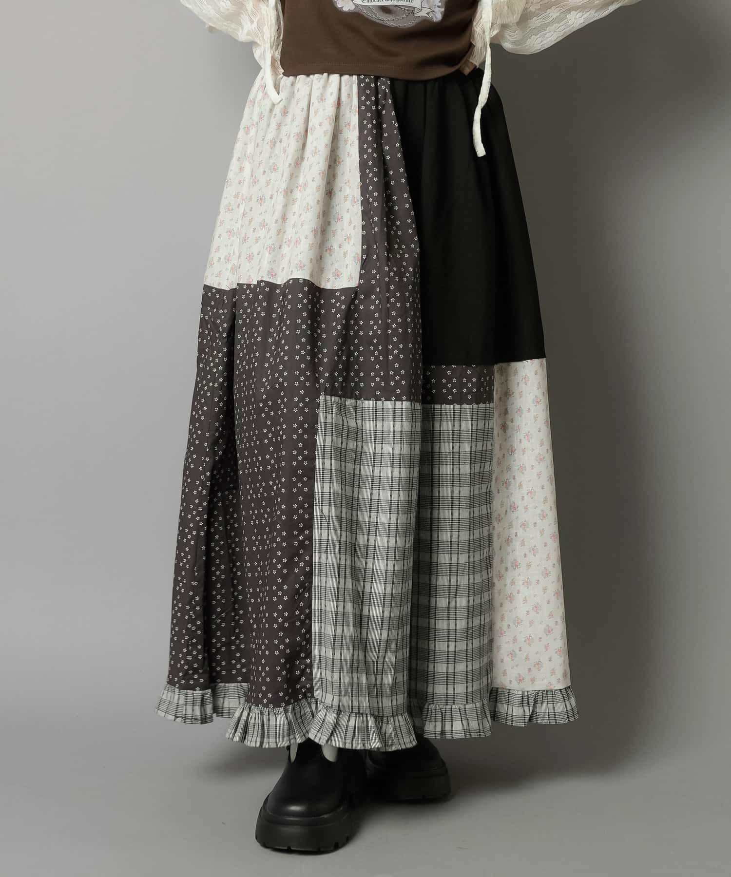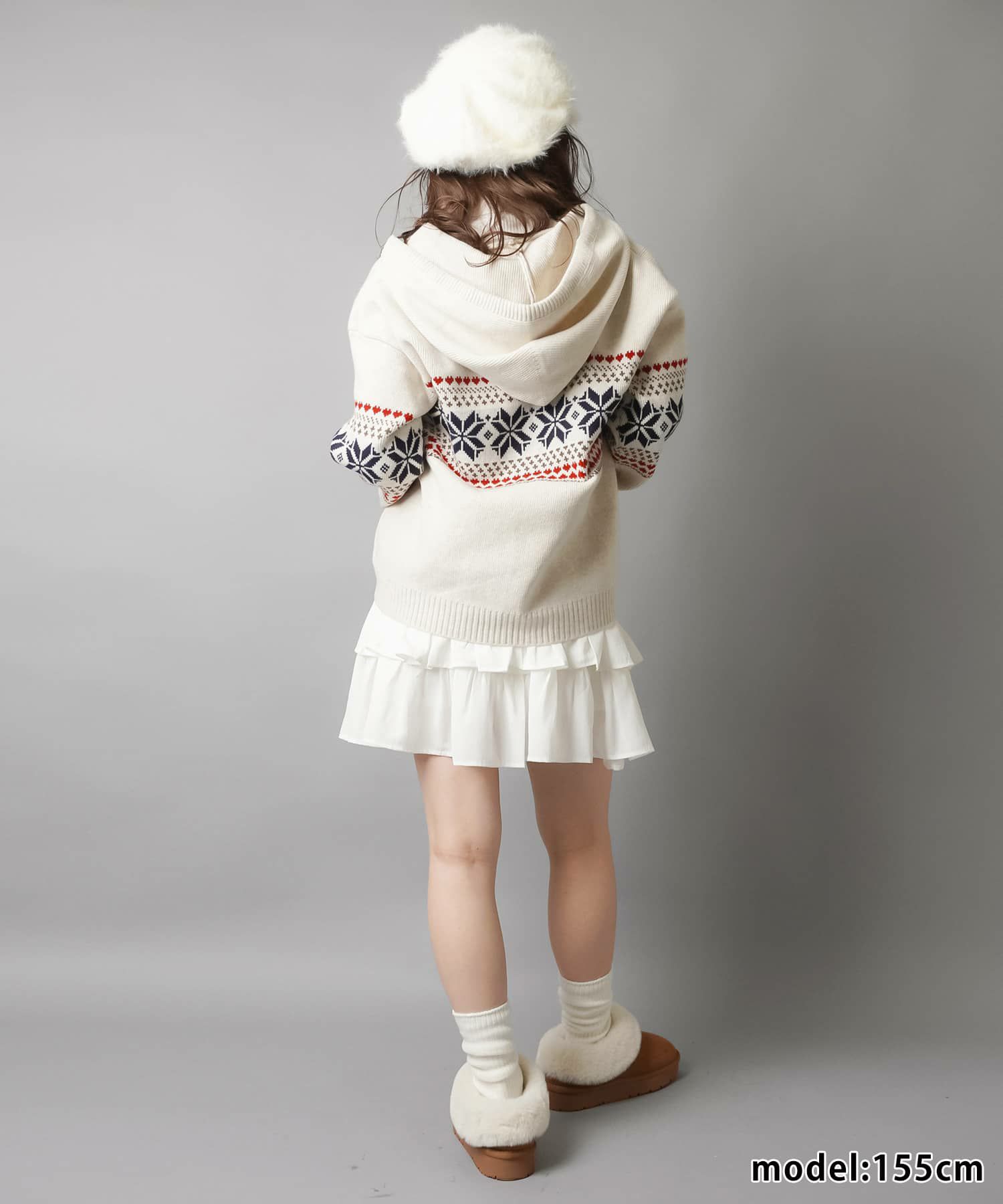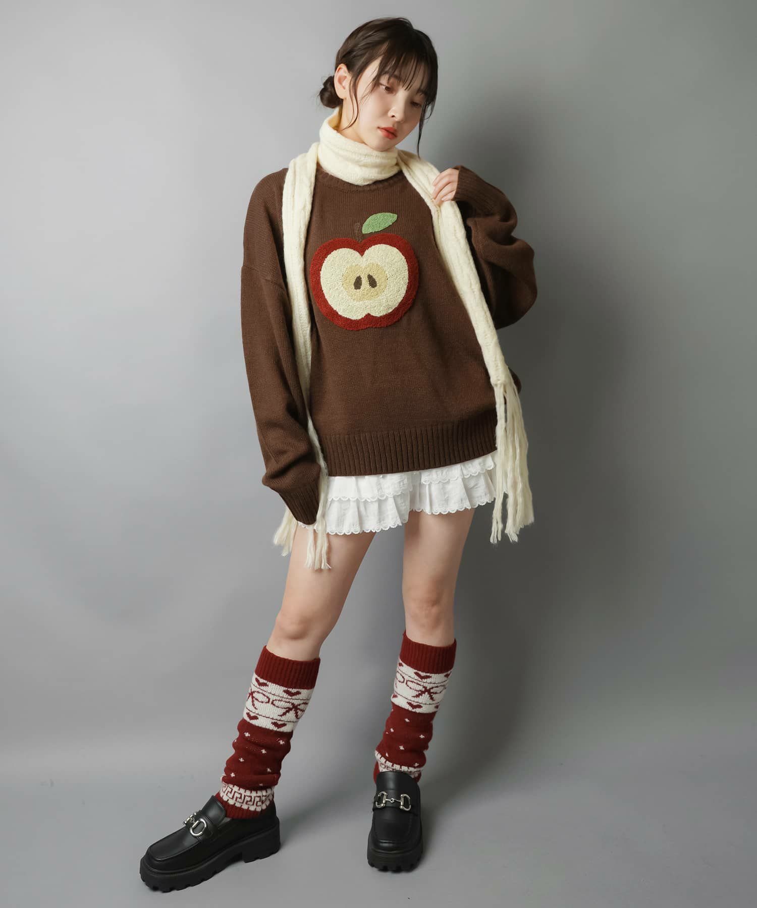 スカートにレギンスやタイツをレイヤードするのもポイント。