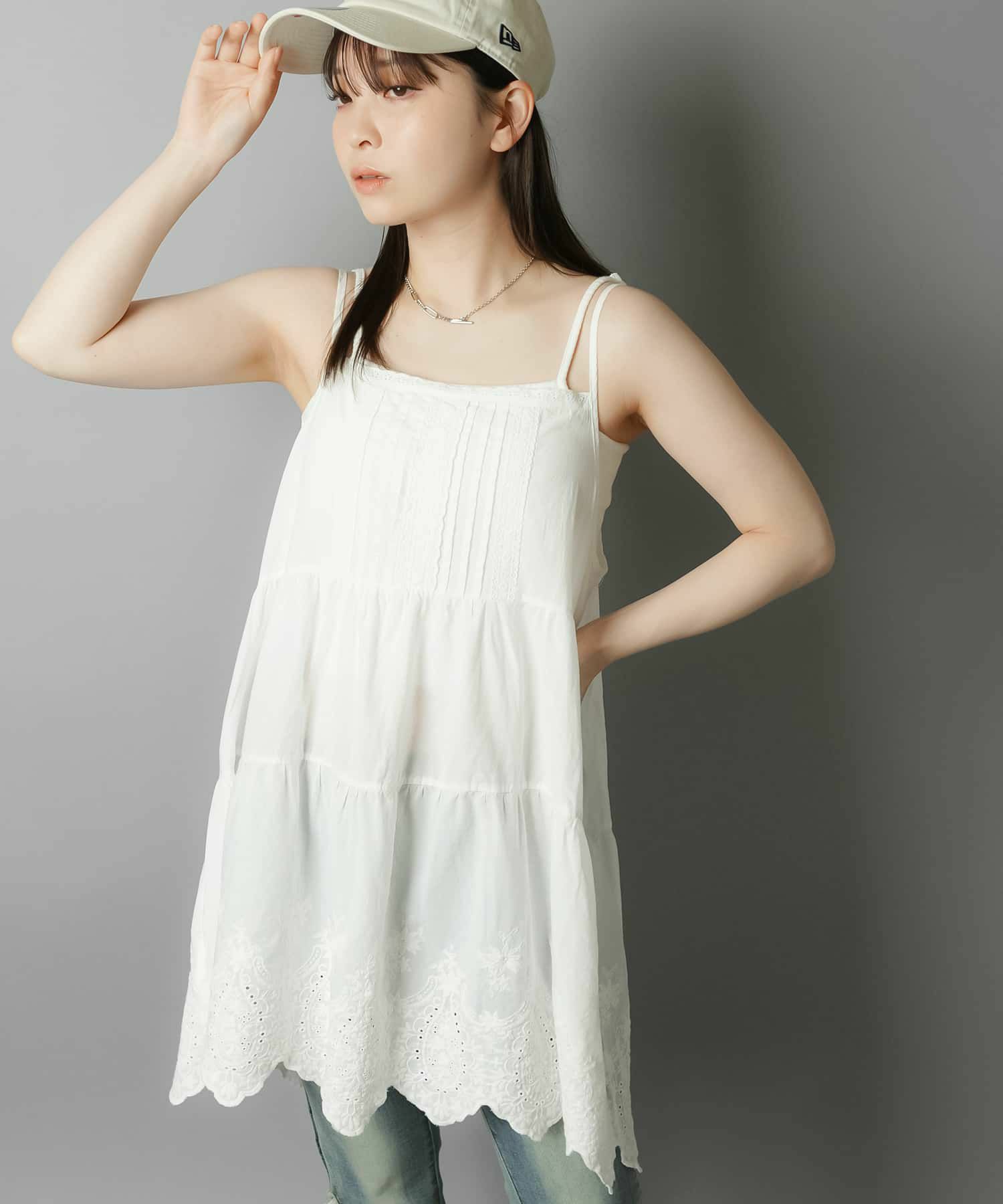 コットンキャミワンピース/裾レース/#NEO森ガール