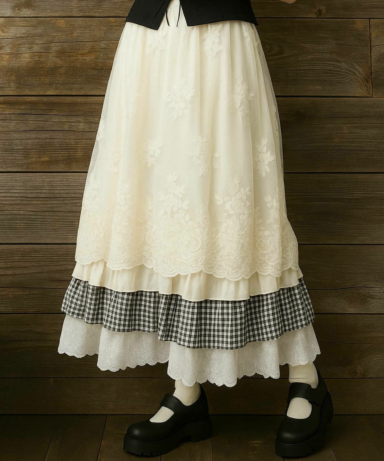 異素材レイヤードロングスカート/4段レイヤード/レース/#NEO森ガール
