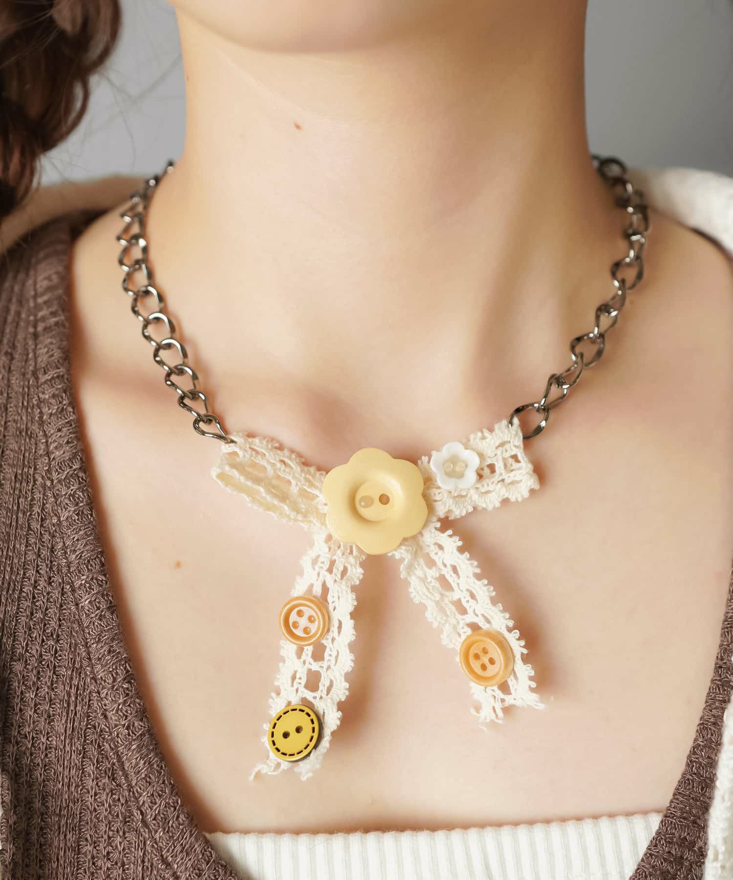 【69%OFF】ボタンネックレス/レースリボン/#NEO森ガール<メール便対応>