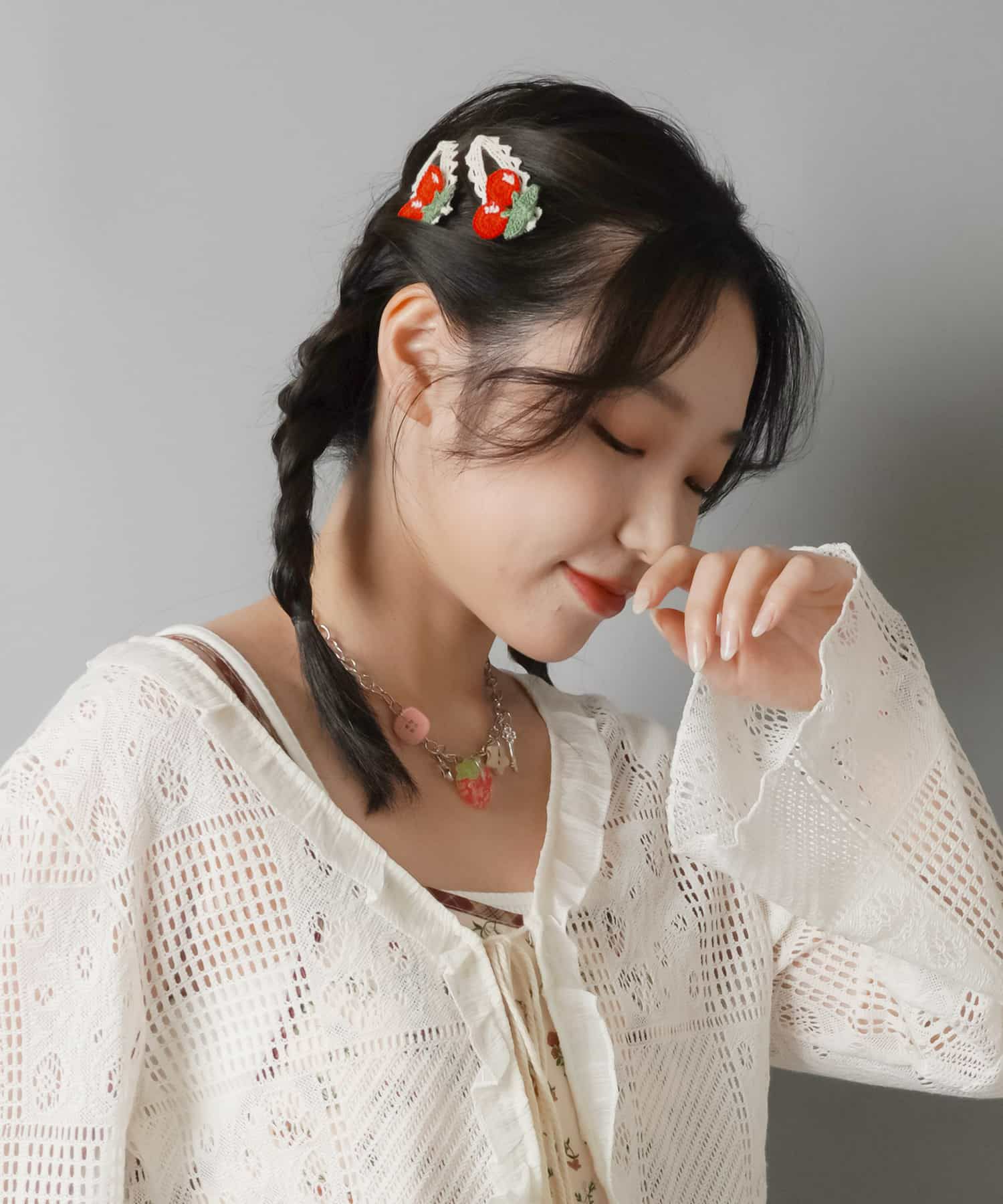 【63%OFF】ニットヘアクリップ/チェリー/ヘアピン/2個セット#NEO森ガール<メール便対応>
