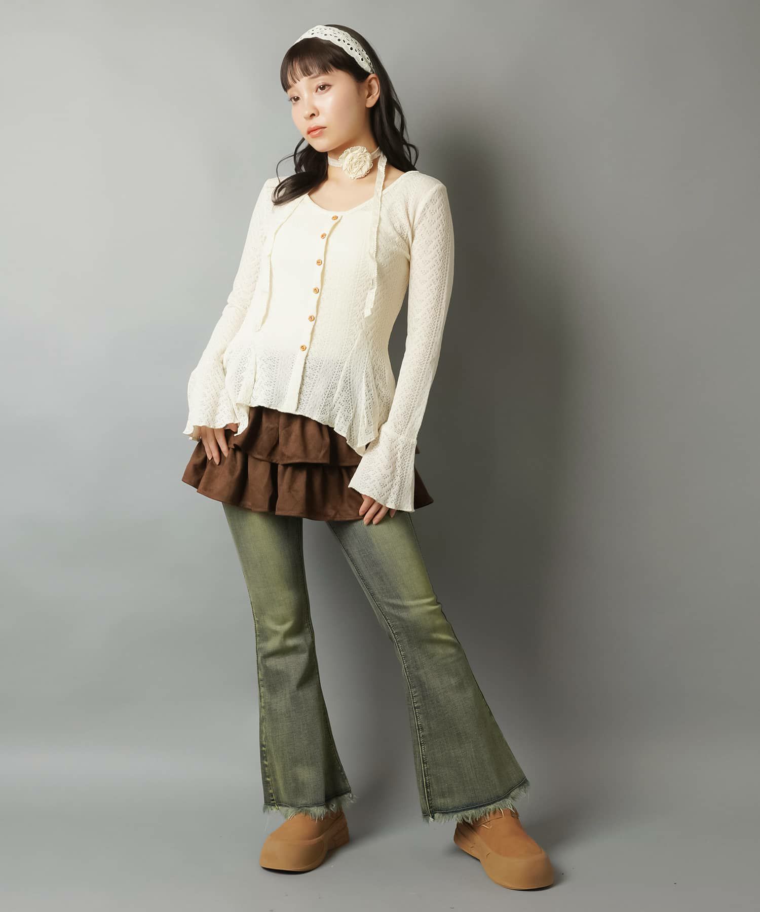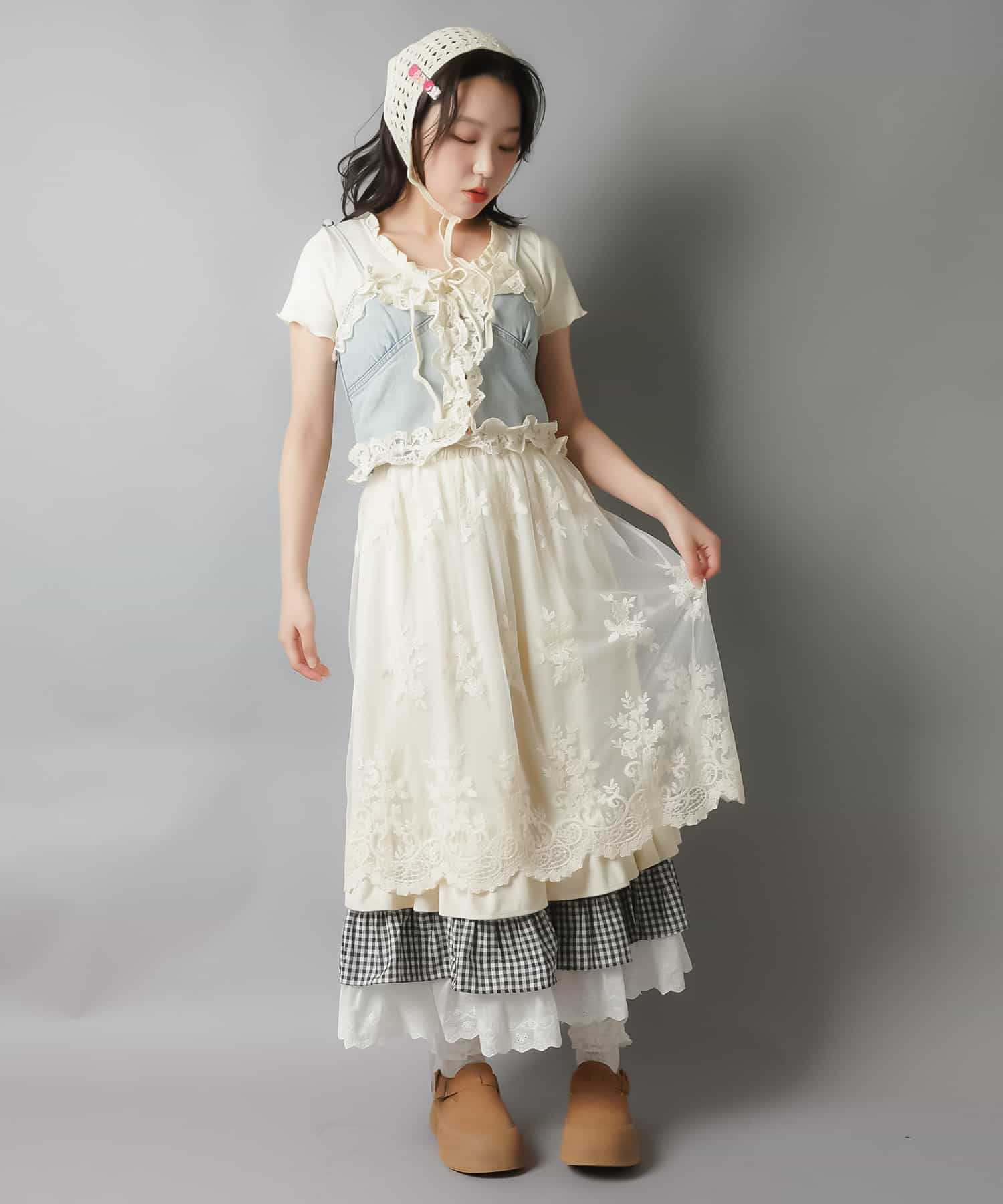 デニムレイヤードでNEO森ガールに🌳 イレヘムレースミニスカート/インナーパンツ付き