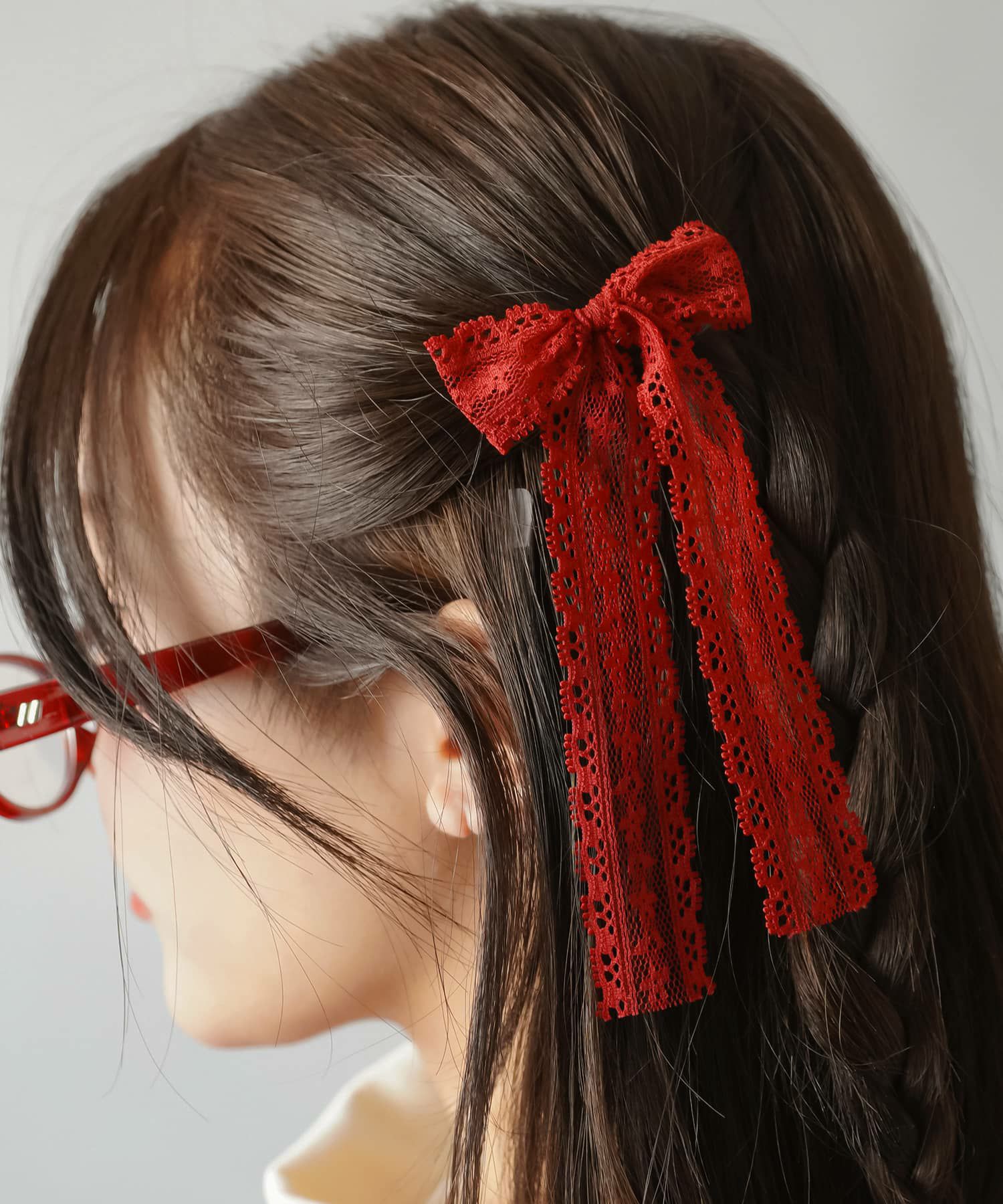レースヘアクリップ/ヘアピン/ロングリボン/2個セット/#NEO森ガール<メール便対応>