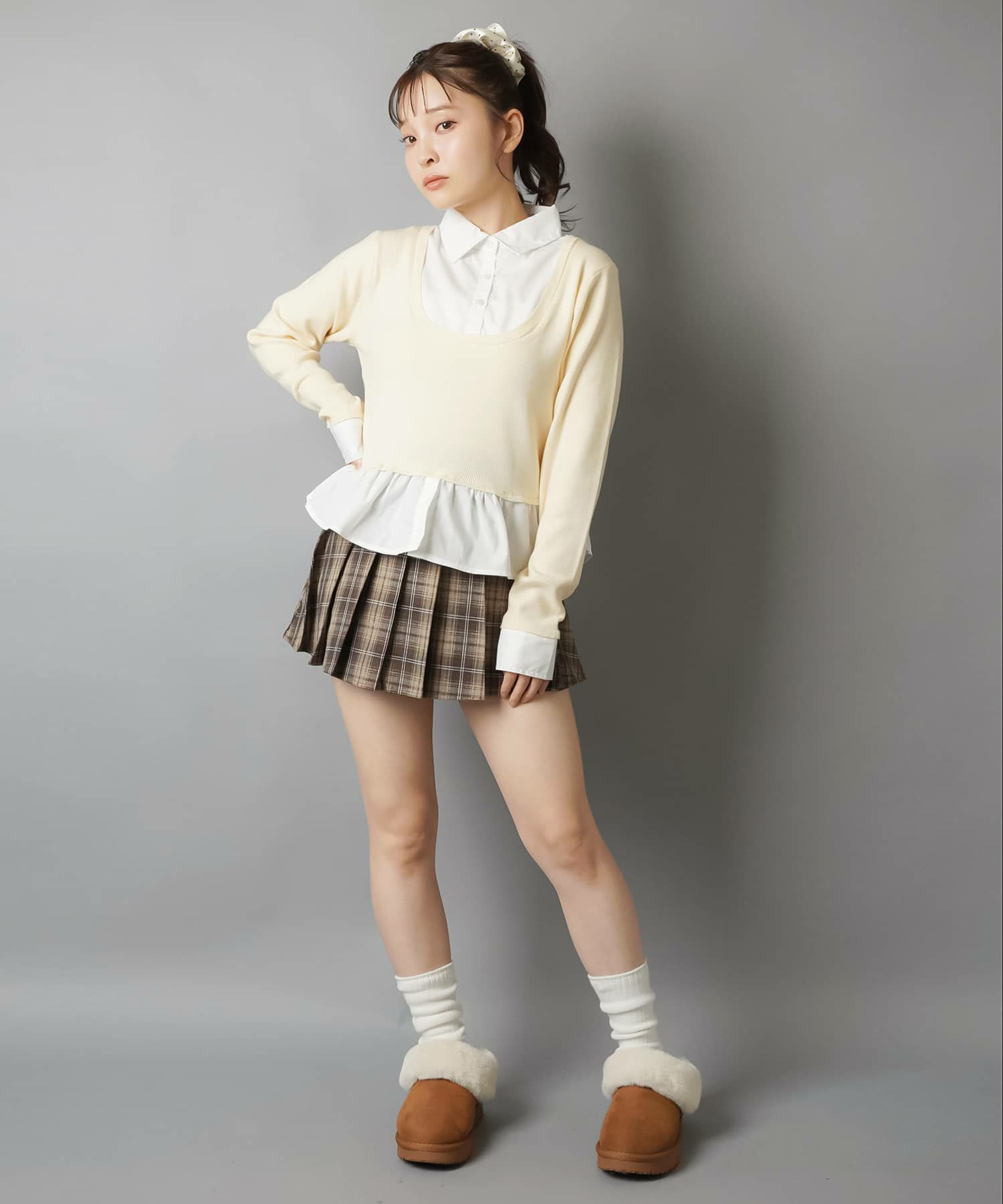 スカートにレギンスやタイツをレイヤードするのもポイント。