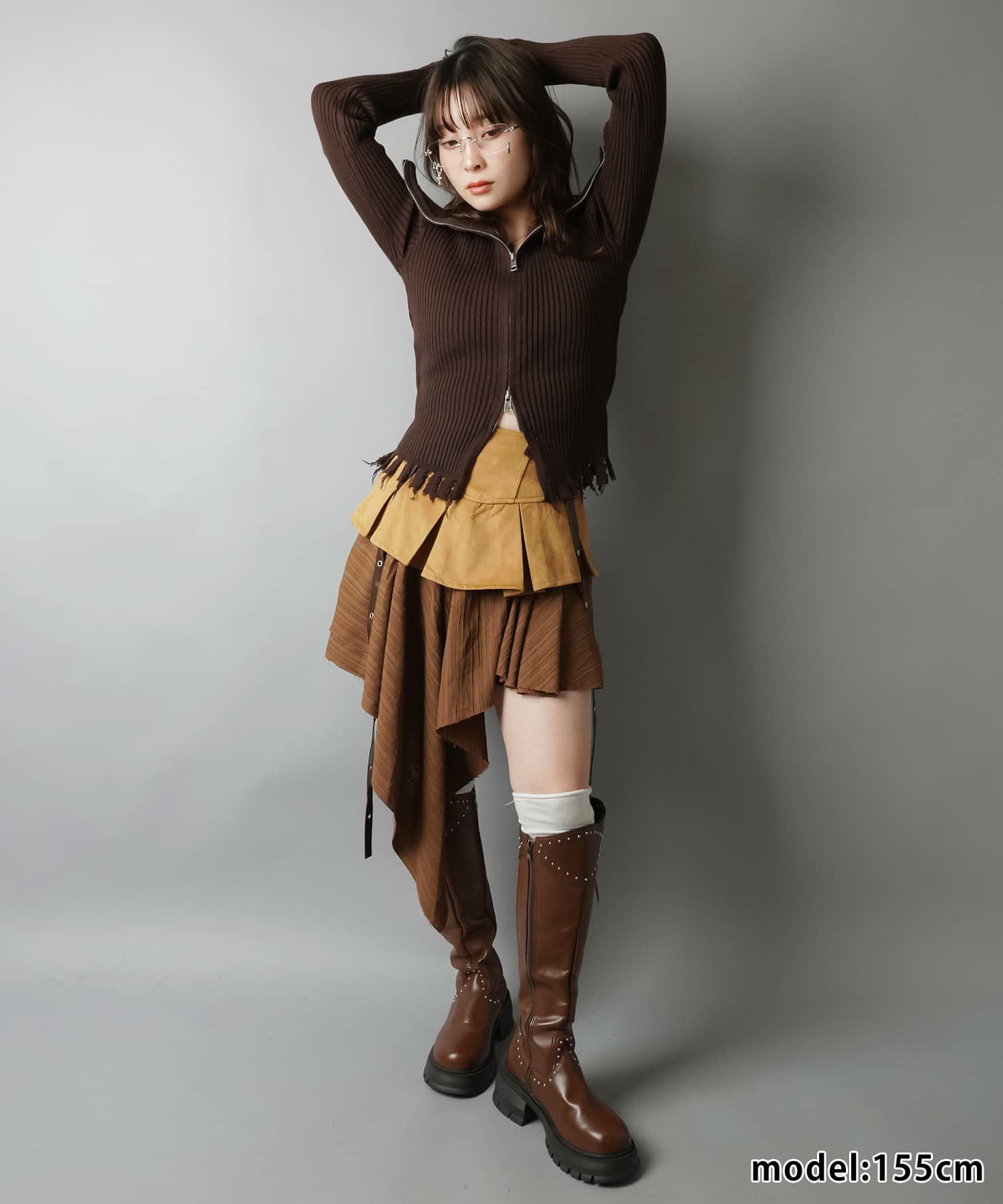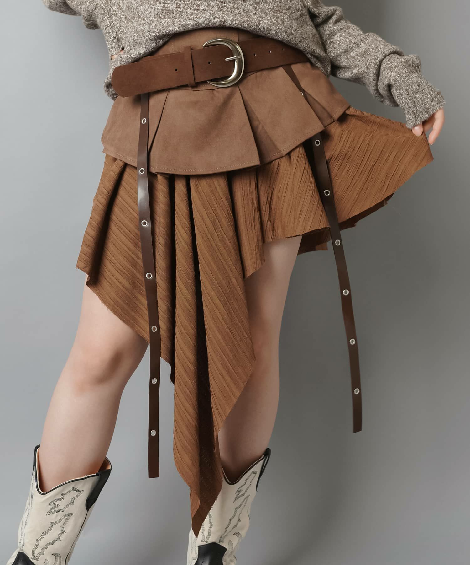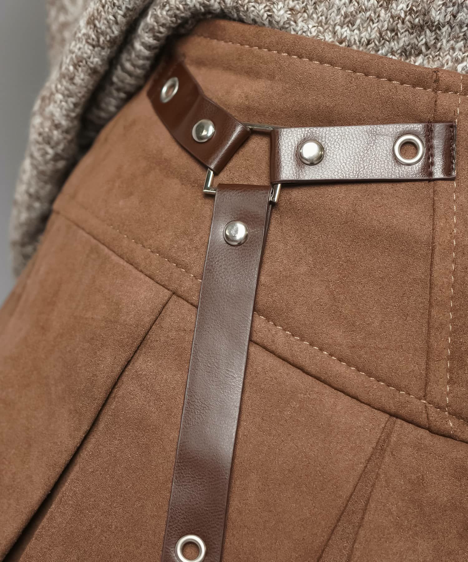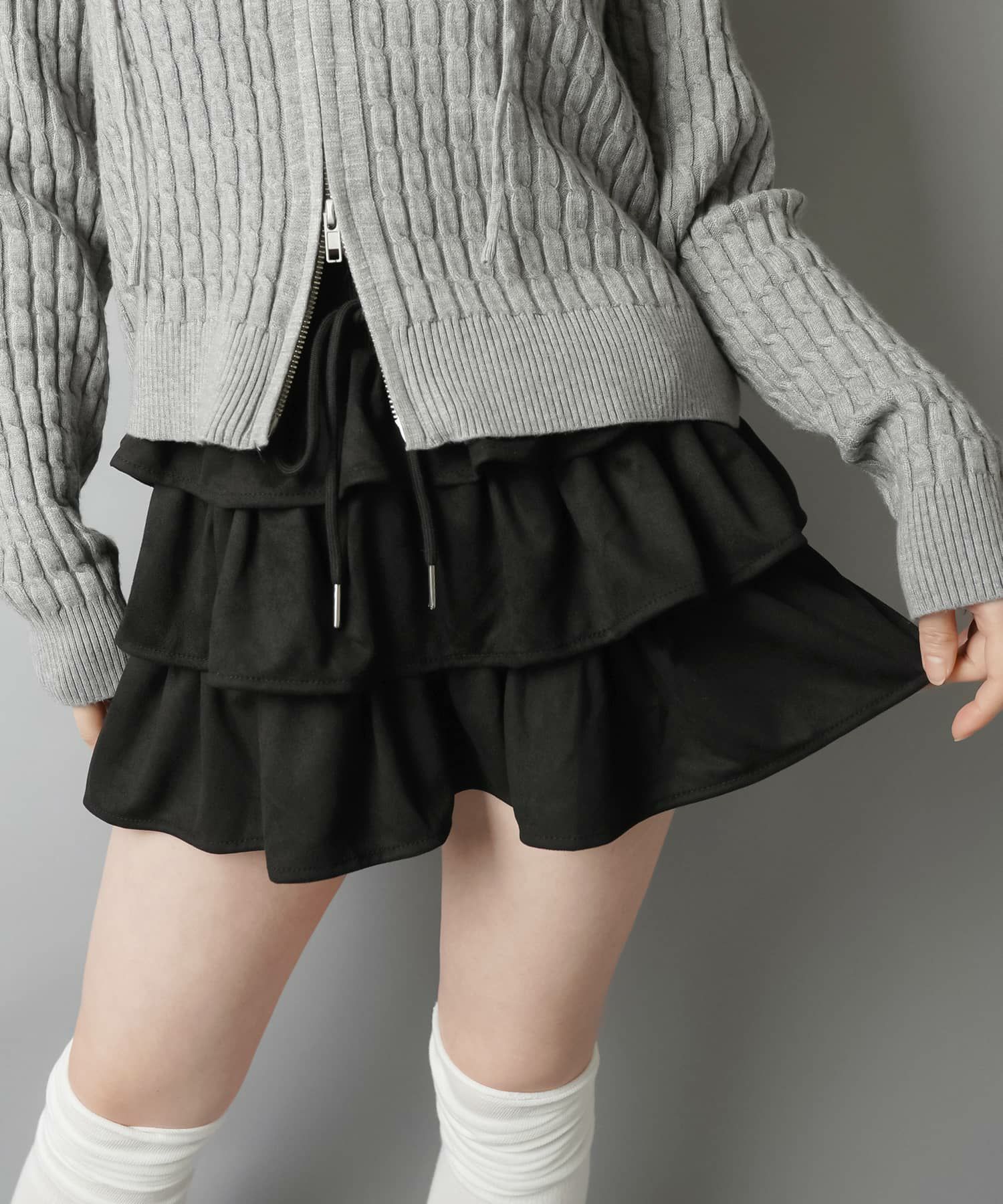 大人気デザイン第2弾!スエードで秋冬仕様に🍂❄️ レイヤード風スエードミドルスカート/フリル/イレヘム/インナーパンツ付き