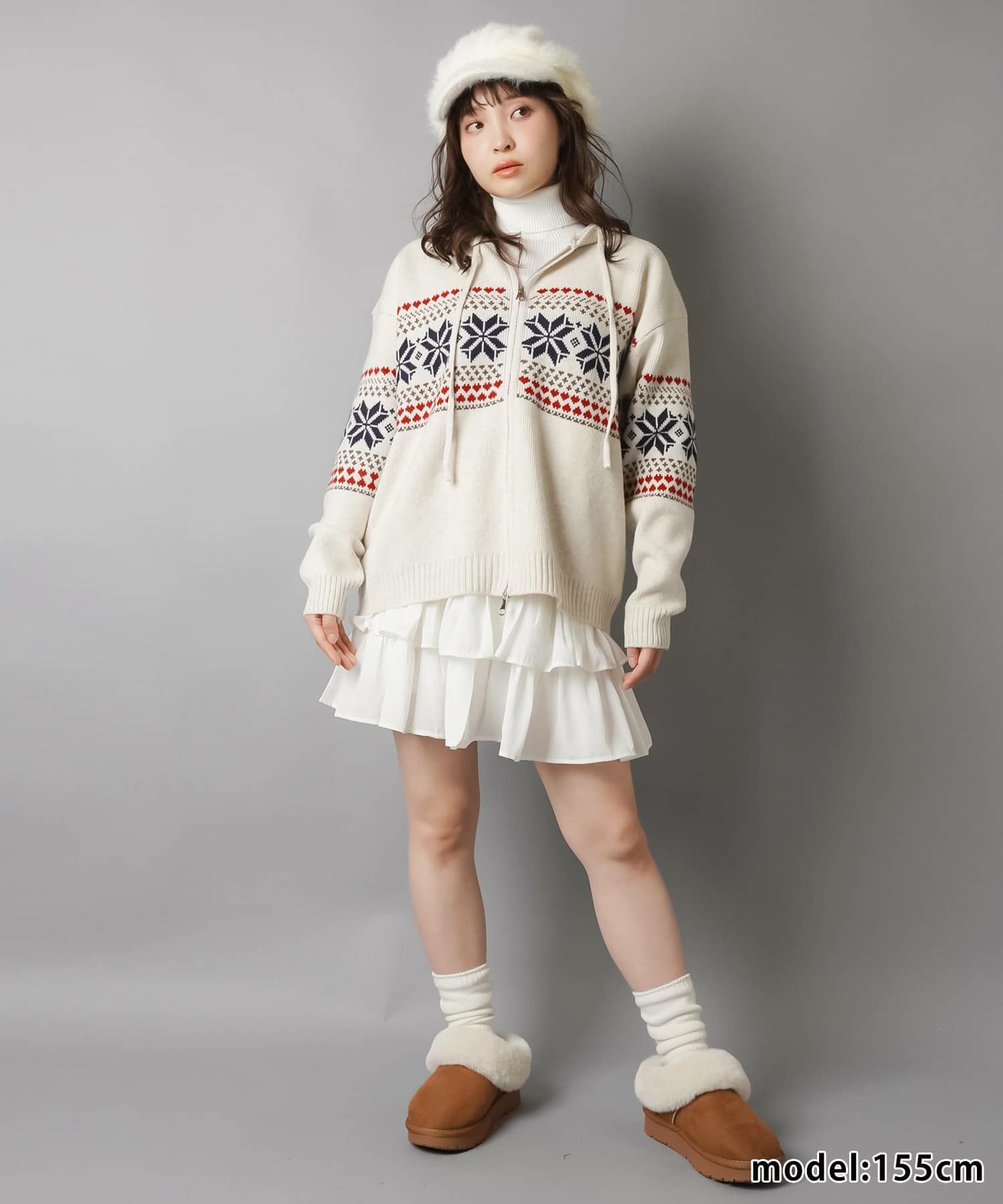 甘さ引き立つ⛄ フード付きジップニットカーディガン/ノルディック柄