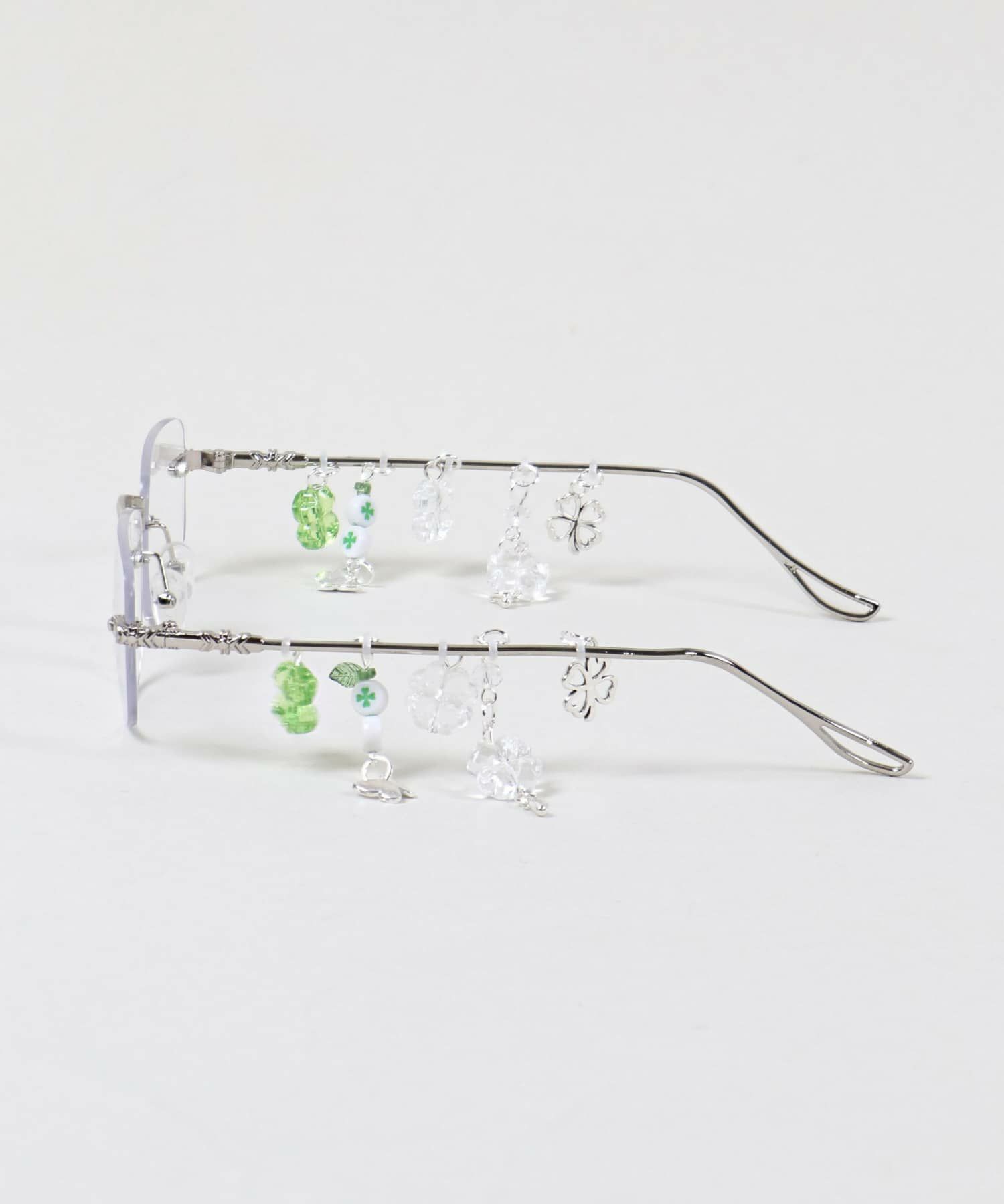 チャーム付きリムレスメガネ/フレームレスメガネ/サイドビーズ