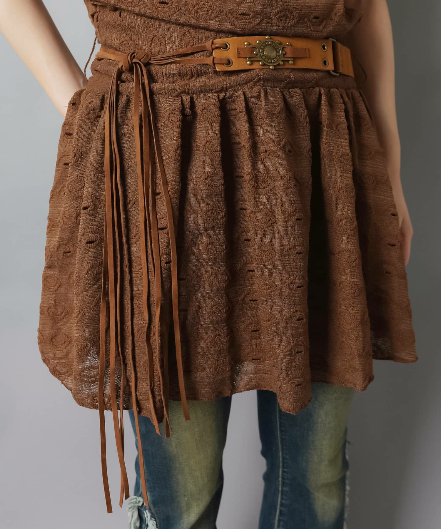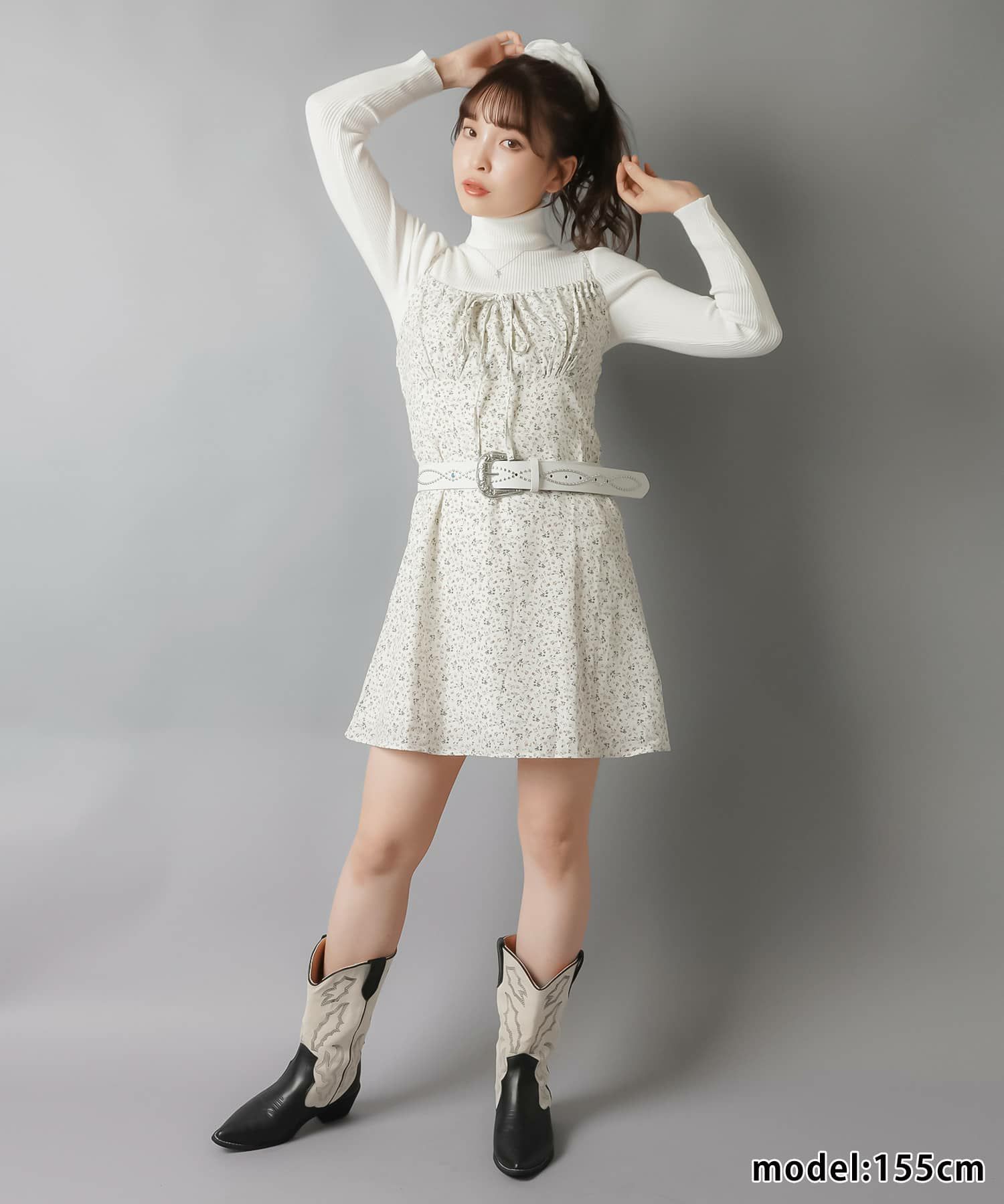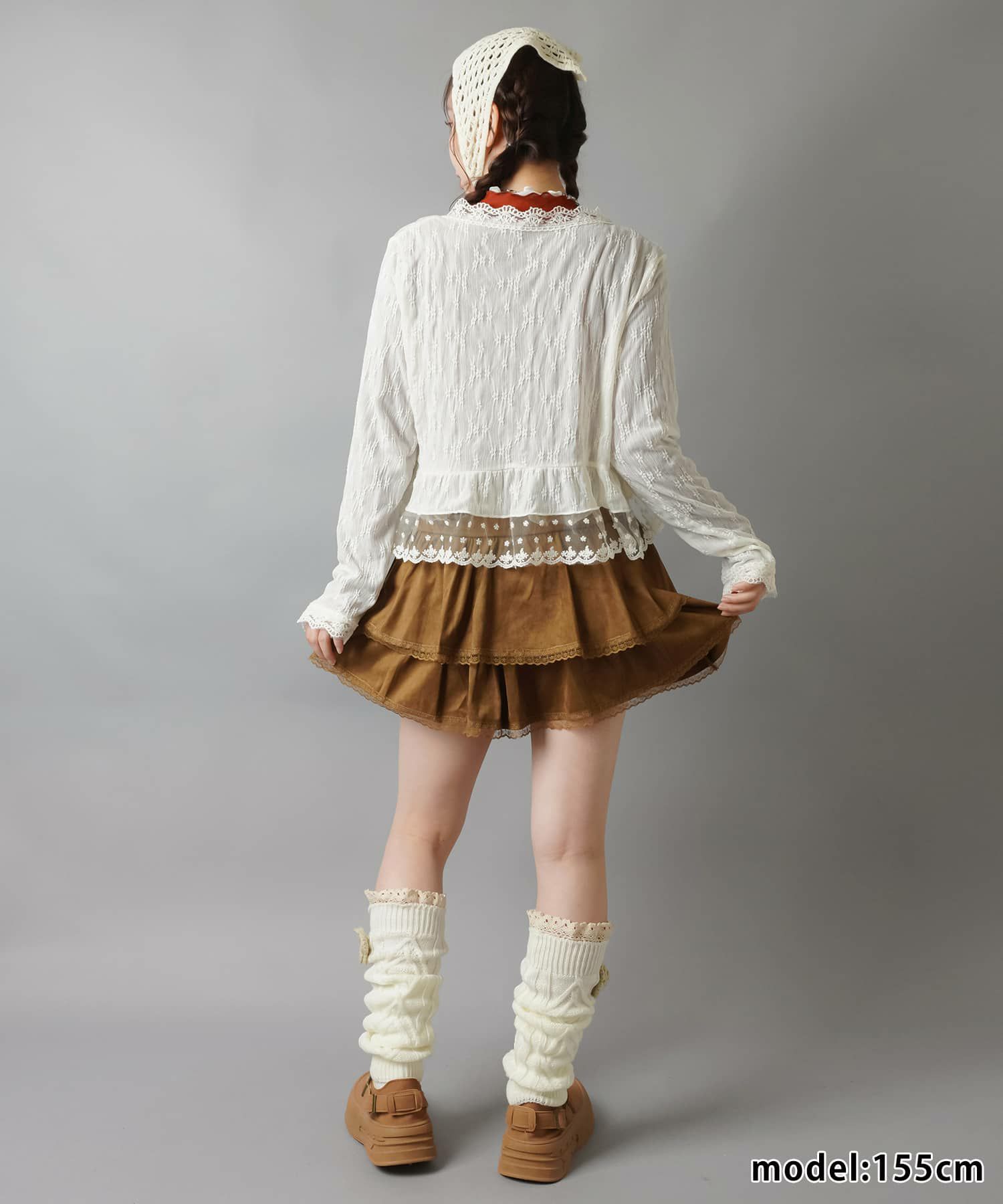 スカートにレギンスやタイツをレイヤードするのもポイント。
