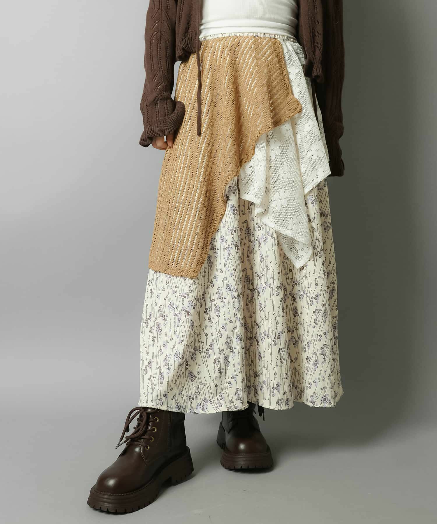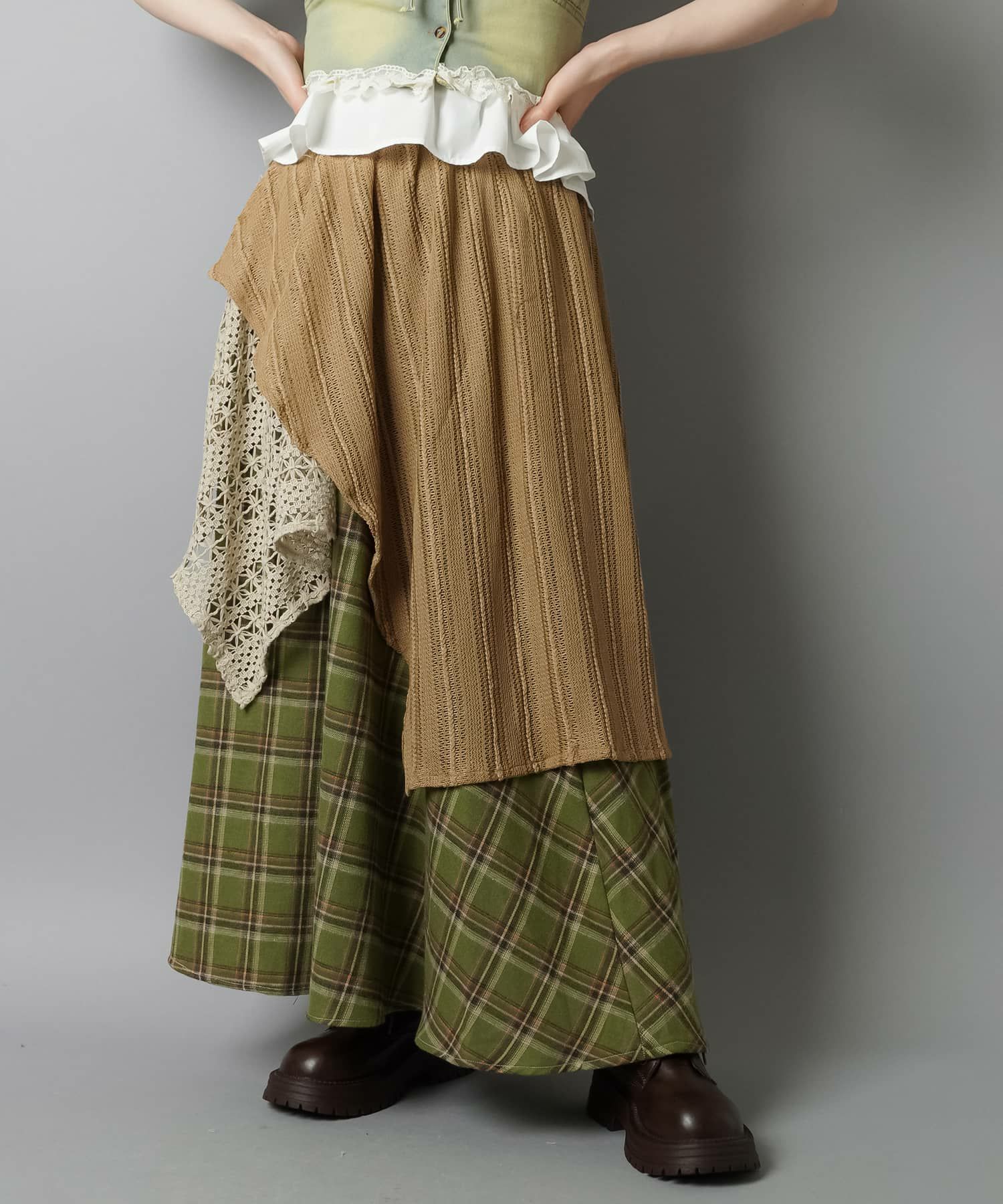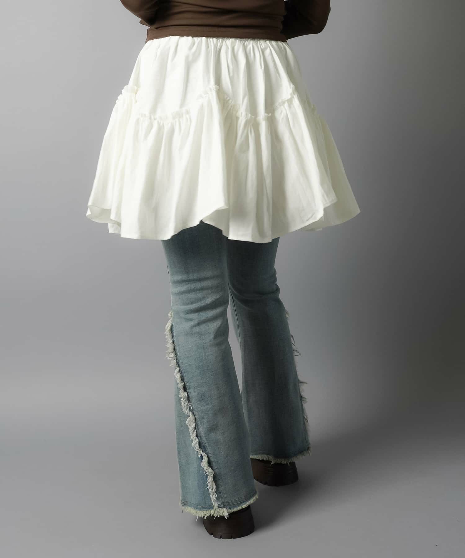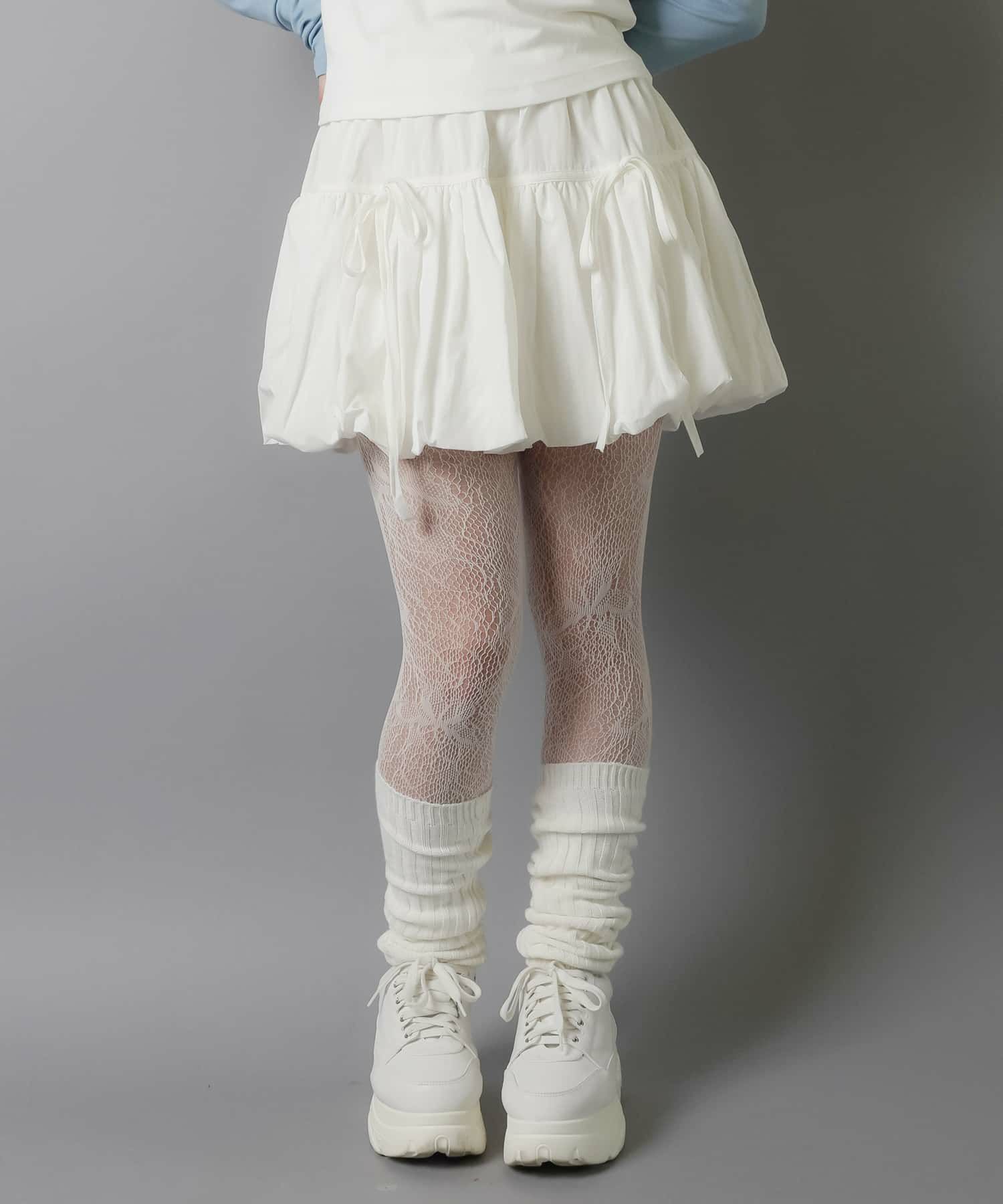 スカートにレギンスやタイツをレイヤードするのもポイント。