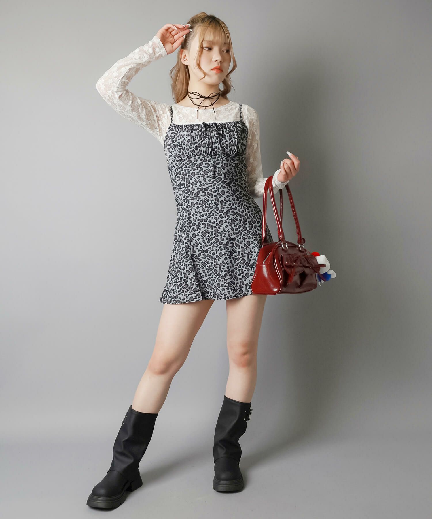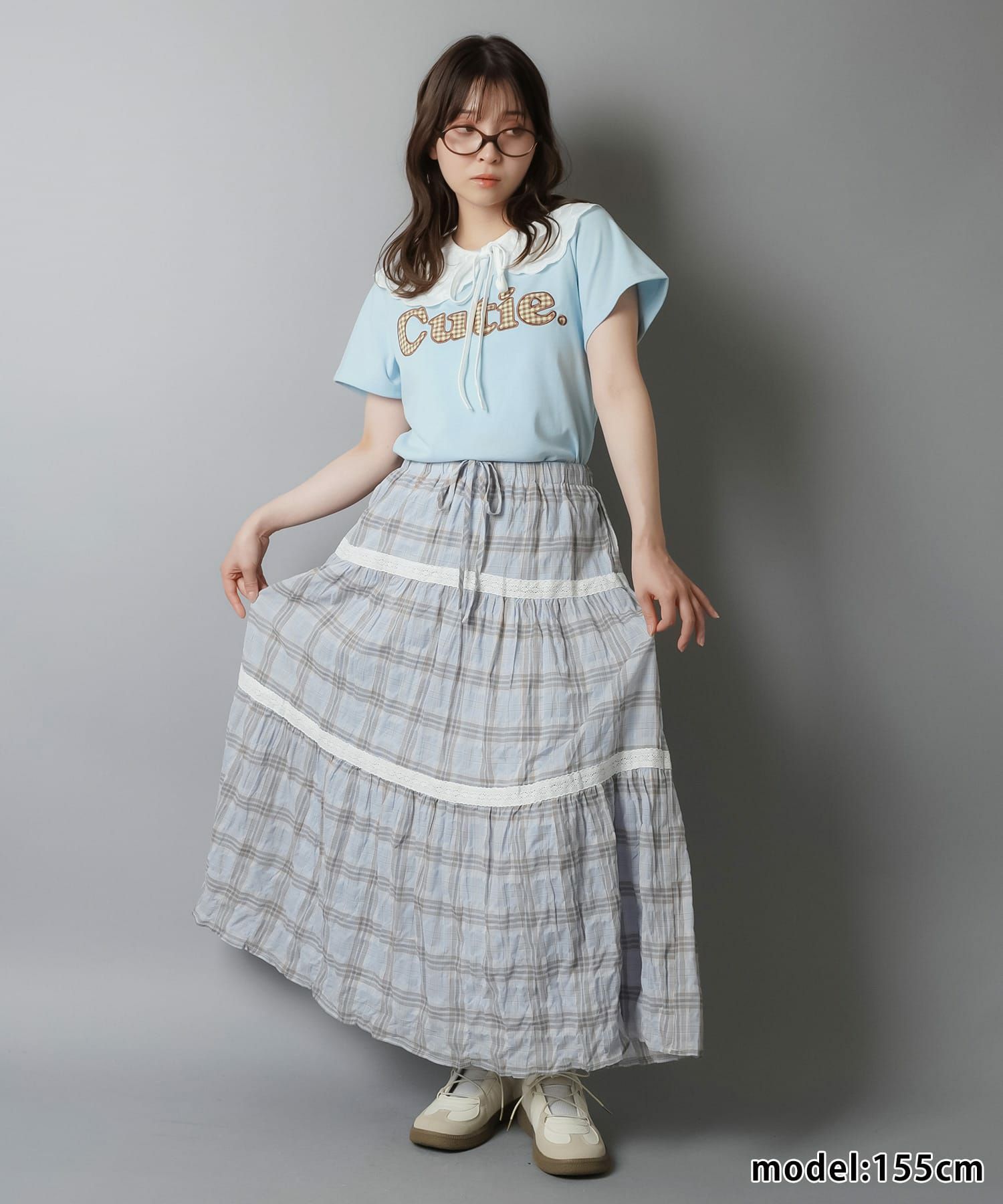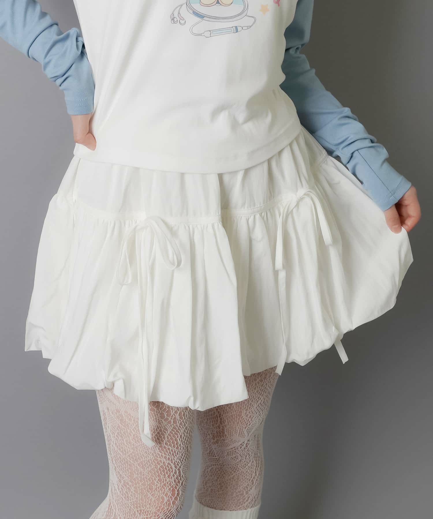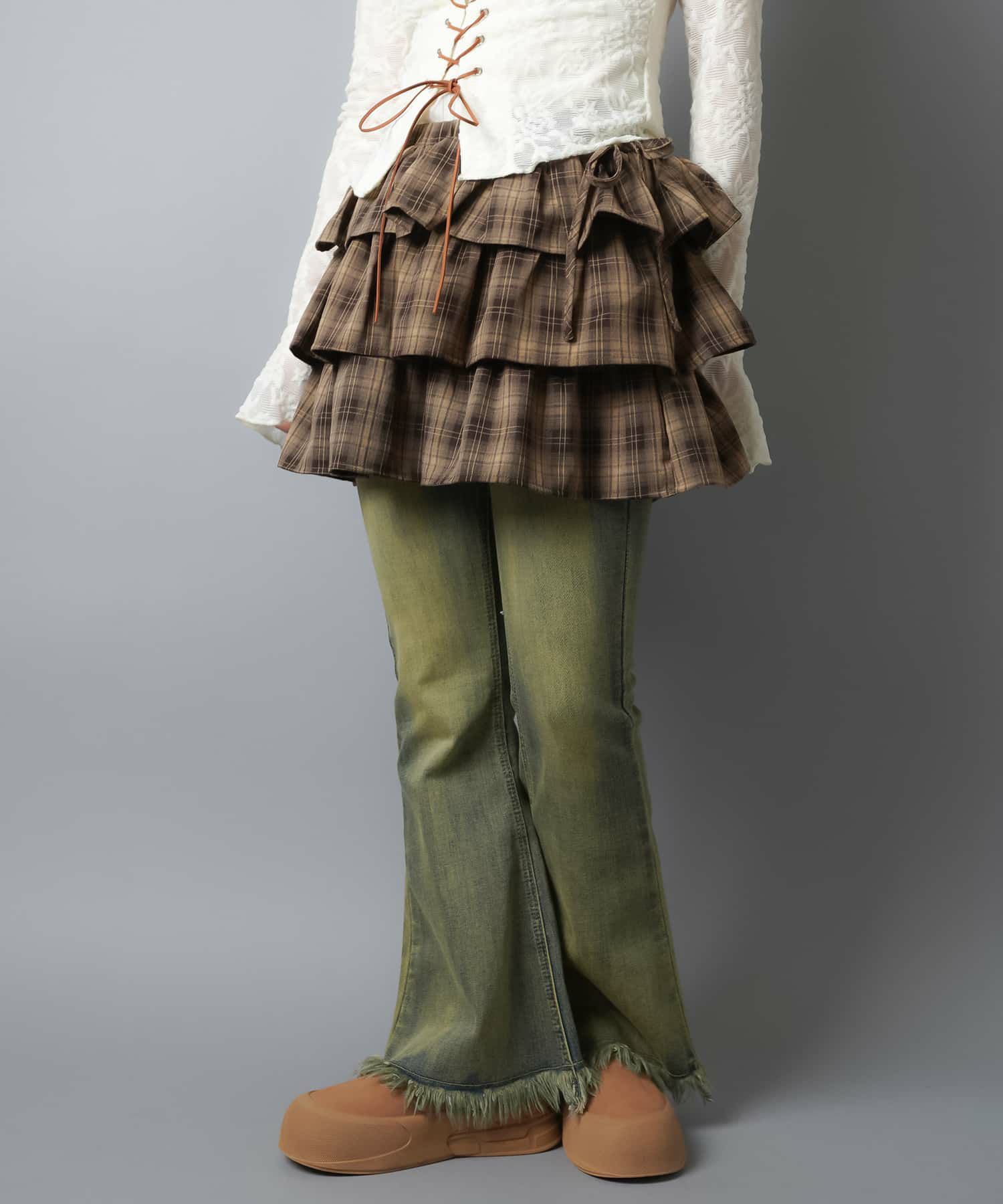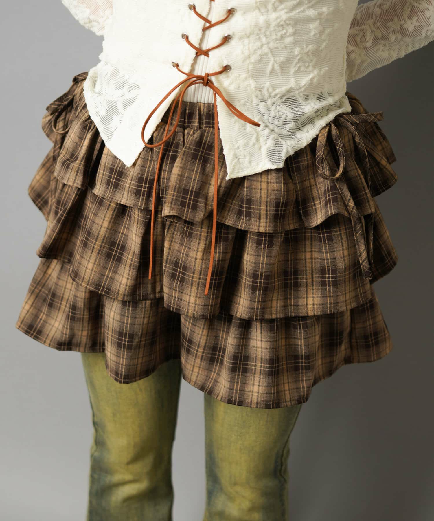 スカートにレギンスやタイツをレイヤードするのもポイント。
