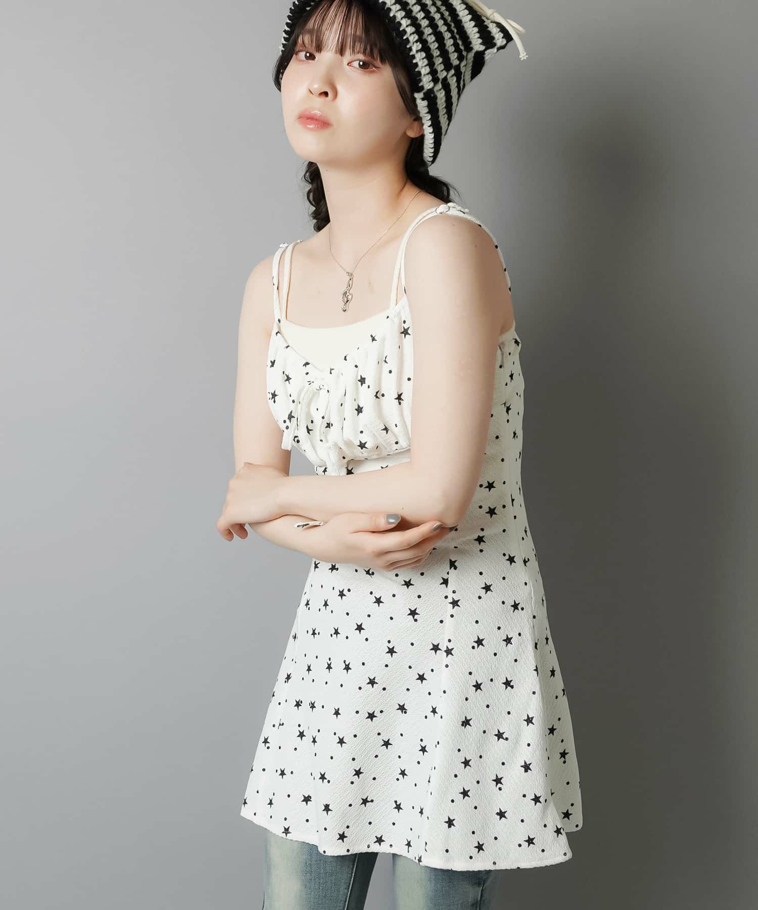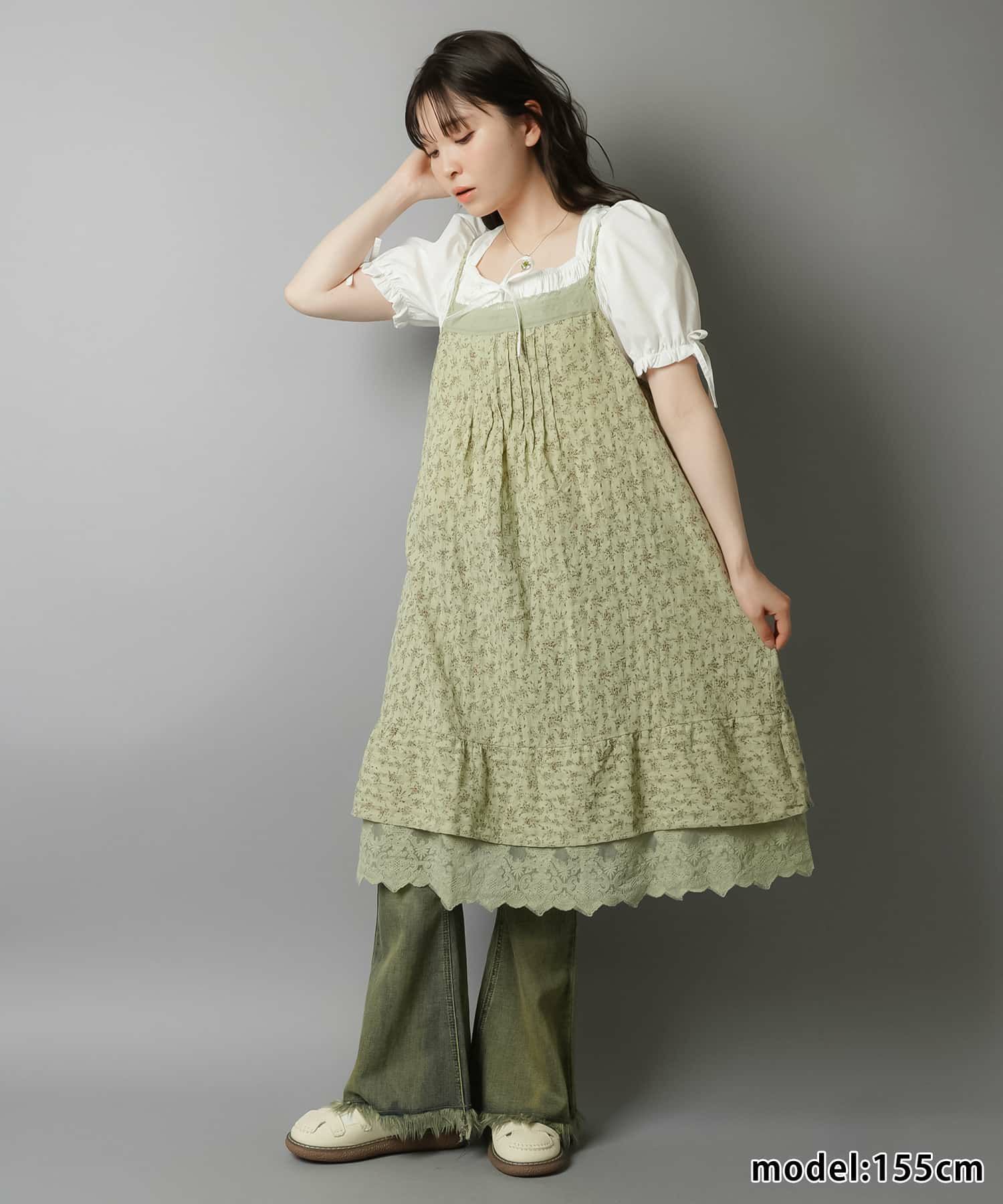 薄手のワンピースにニットベストを重ねたり、
