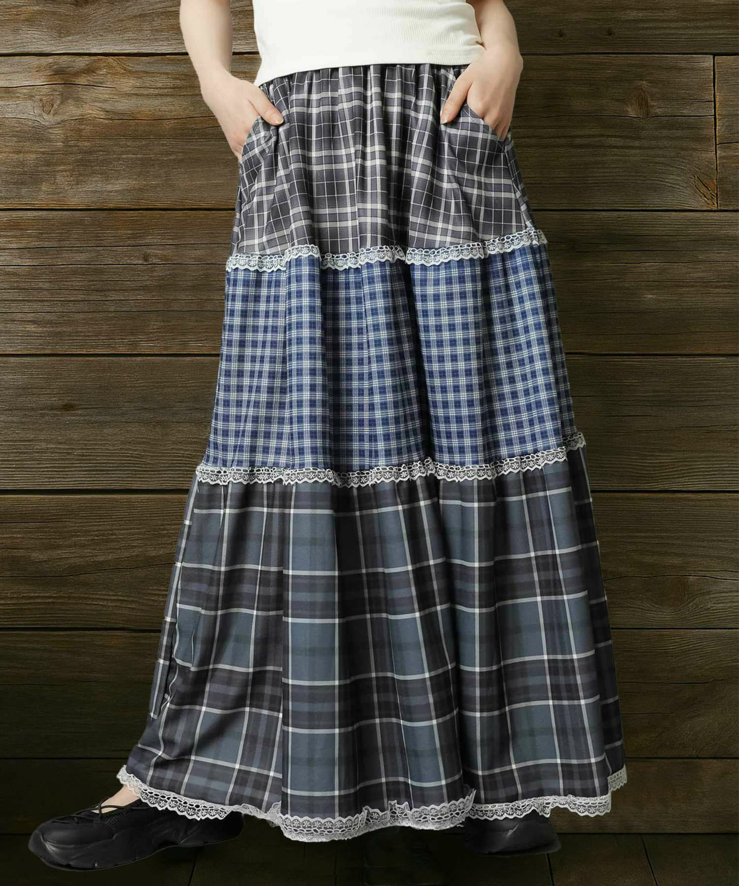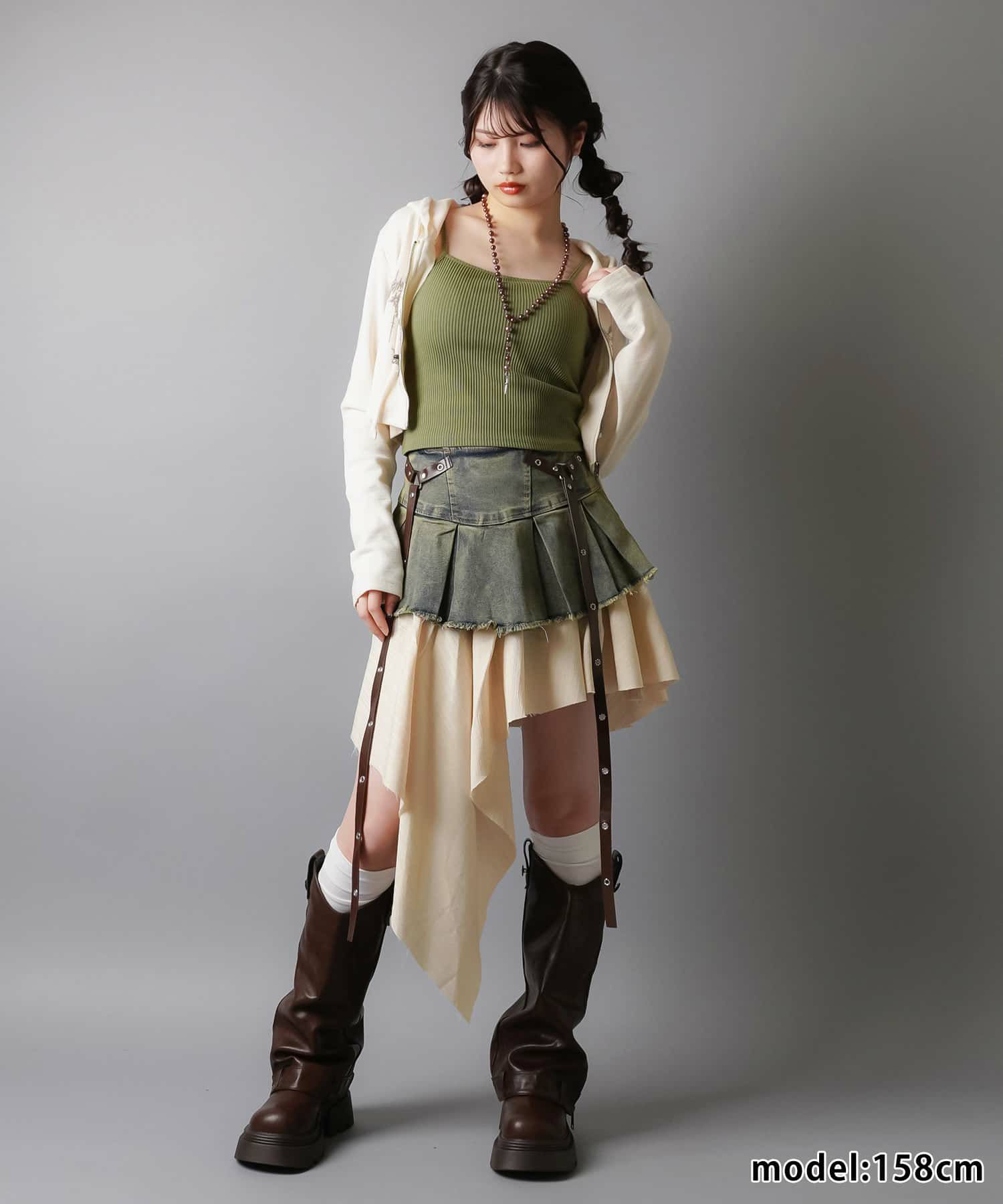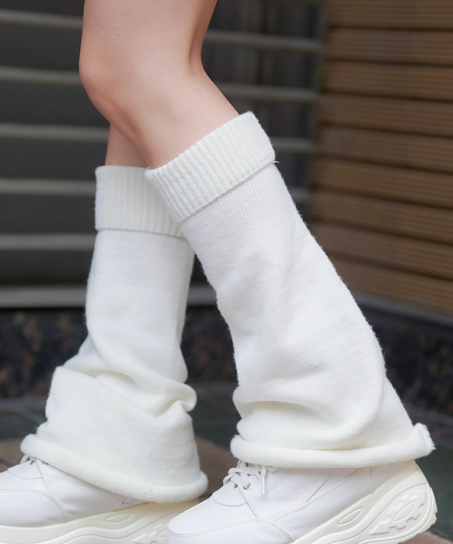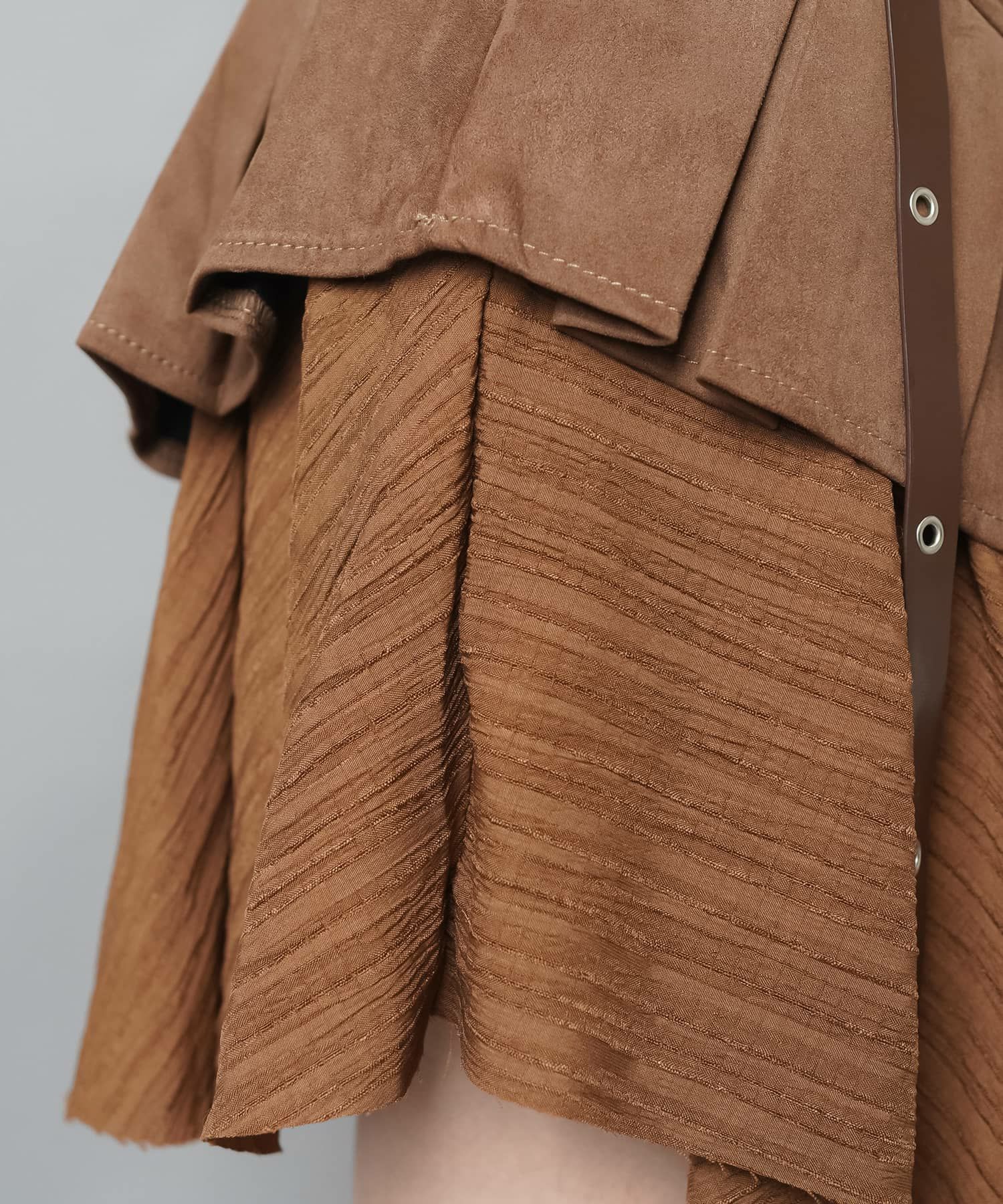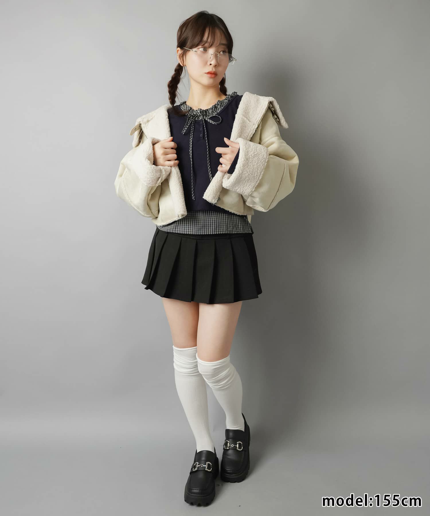スカートにレギンスやタイツをレイヤードするのもポイント。